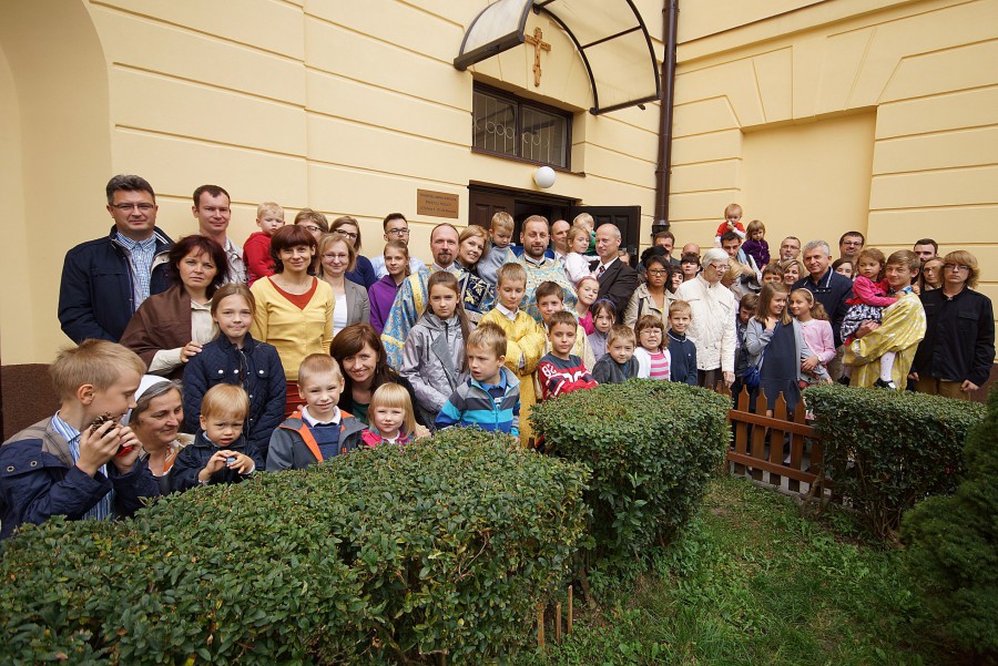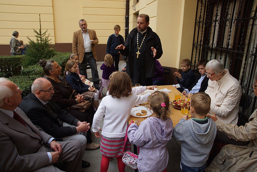 Po zakończeniu Świętej Liturgii wszyscy zebrali się do pamiątkowej fotografii, a następnie zostali ugoszczeni słodkim poczęstunkiem, podczas którego ojciec Andrzej przybliżył zebranym burzliwą historię Świątyni, która dzięki staraniom Jego Eminencji Metropolity Sawy, po prawie sześćdziesięciu latach ponownie ożyła.
