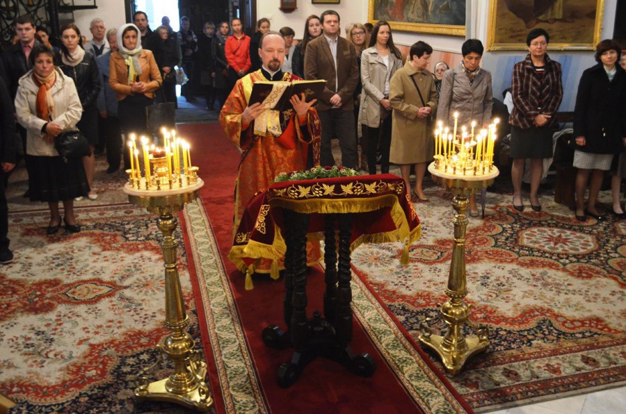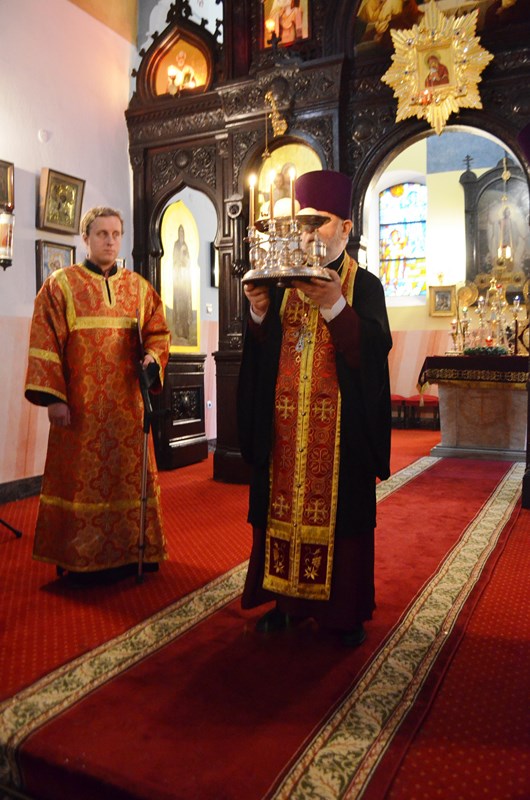 W naszej wolskiej parafii w wigilię święta Podwyższenia Krzyża Pańskiego zostało odprawione Wsienoszcznoje Bdienije, w trakcie którego miało miejsce uroczyste wyniesienie Świętego Krzyża z ołtarza na środek cerkwi.