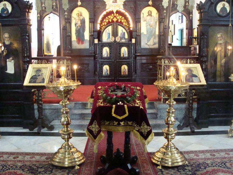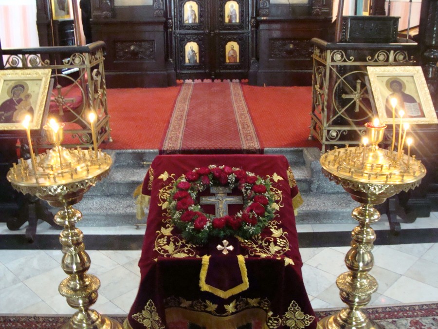 Po Świętej Liturgii przy śpiewie К ресту Твоему покланяемся Владыко, и святое воскресение Твое славим a następnie Спаси Господи люди Твоя, и благослови достояние Твое, победы православным христианом на сопротивныя даруя, и Твое сохраняя Крестом Твоим жительство duchowieństwo i wierni obecni w świątyni pokłonili się i ucałowali wyniesiony na środek świątyni pięknie ozdobiony kwiatami Święty Krzyż.