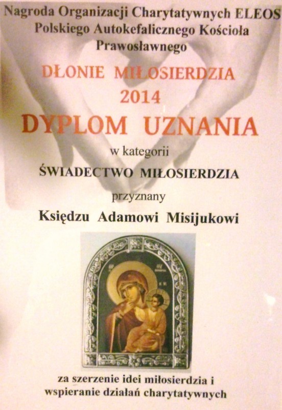 Nagrody Organizacji Charytatywnych ELEOS Polskiego Autokefalicznego Kościoła Prawosławnego „DŁONIE MIŁOSIERDZIA” 2014 za szerzenie idei miłosierdzia i wspieranie działań charytatywnych otrzymali w kategorii: