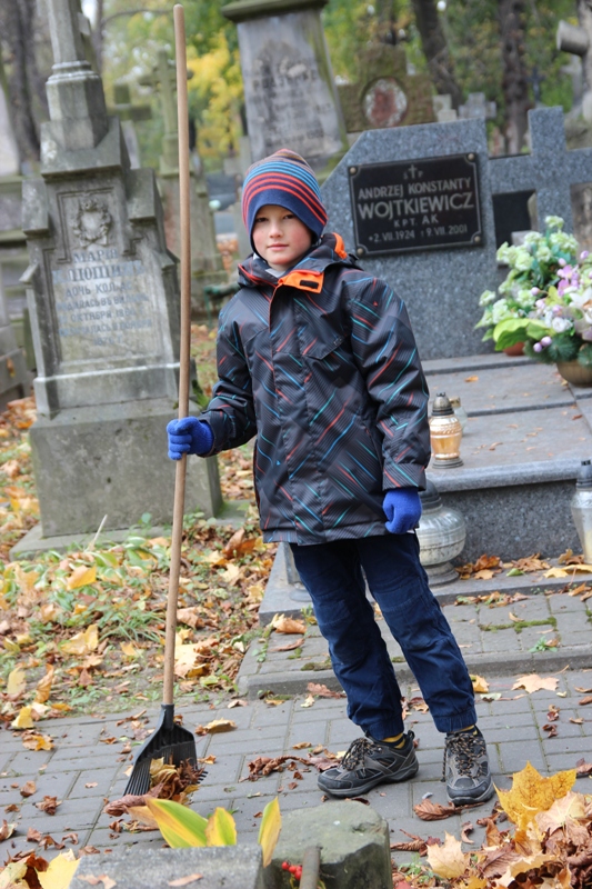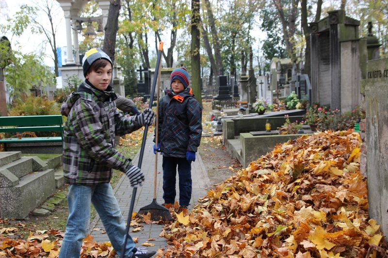 Zbliża się Rodzicielska Sobota. Kontynuując piękną tradycję lat ubiegłych, pod nadzorem katechetów, na czele z panem Bogdanem Kuźmiukiem i pomocą rodziców, dzieci z wielkim zaangażowaniem podjęły trud oczyszczenia z liści zabytkowej wolskiej nekropolii. Była to tylko namiastka możliwości, bowiem teren cmentarza parafialnego nie jest mały. Warto jednak, w aspekcie pedagogicznym, na grobach naszych przodków, do których nie ma już komu przyjść, postawić świecę i pomodlić się.