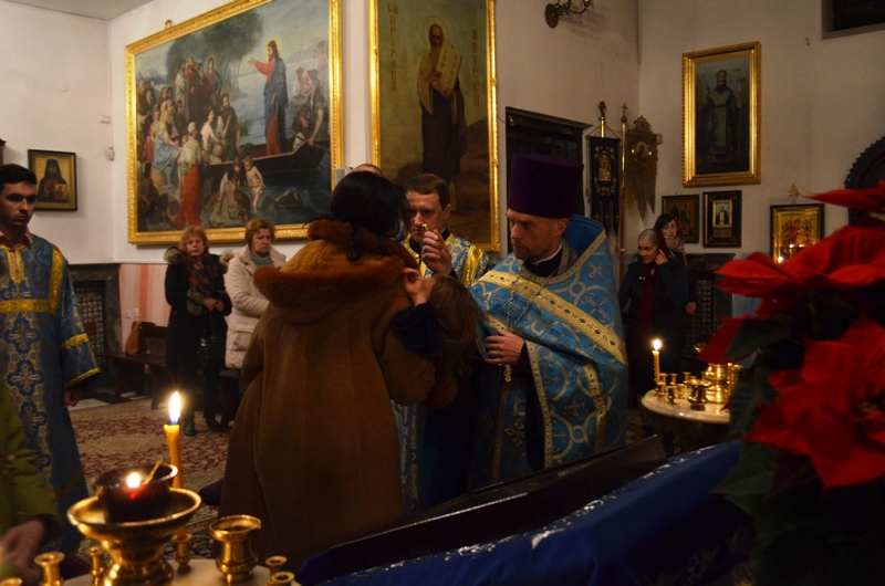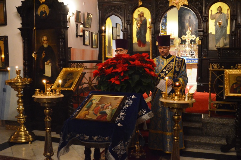 Przed wyjściem z świątyni przy śpiewie troparionu, kondakionu oraz wielicznija święta wszyscy pokłonili się ikonie Wprowadzenia Najświętszej Marii Panny do Świątyni. Podczas dzisiejszego świątecznego nabożeństwa śpiewał chór parafialny pod dyrekcja prof. Włodzimierza Wołosiuka.