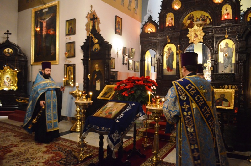 Świąteczną Świętą Liturgię celebrował ks. mitrat Michał Dudicz i księża: prot. Jarosław Kadylak, prot. Adam Misijuk, prot. Piotr Kosiński oraz protodiakoni: Jerzy Dmitruk, Paweł Korobeinikov. W ołtarzu modlił się proboszcz parafii – ks. mitrat Mikołaj Lenczewski.