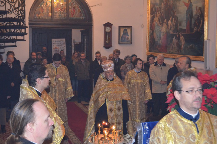 Św. Mikołaj Cudotwórca jest Niebiańskim Patronem Proboszcza naszej Parafii – ks. mitrata Mikołaja Lenczewskiego, który w tym radosnym dniu celebrował w naszej górnej cerkwi o godzinie 9.00 uroczystą Świętą Liturgię, a współsłużyli mu: ks. prot. Adam Misijuk, ks. prot. Piotr Rajecki, ks. protodiakon Jerzy Dmitruk, ks. protodiakon Marek Zyc-Zyckowski oraz ks. protodikon Paweł Korobeinikov. Podczas nabożeństwa obecni byli także: ks. mitrat Anatol Szydłowski – Proboszcz Parafii Św. Marii Magdaleny w Warszawie, ks. mitrat Jerzy Tofiluk – Rektor Prawosławnego Seminarium Duchownego w Warszawie, ks. Michał Dmitruk – Proboszcz Parafii Śww. App. Piotra i Pawła w Wołominie oraz ks. Tomasz Stempa. W czasie Świętej Liturgii List Apostolski Świętego Apostoła Pawła do Hebrajczyków (Hbr 13, 17-21) został przeczytany przez ks. protodiakona Pawła Korobeinikova, natomiast fragment Świętej Ewangelii według Świętego Apostoła i Ewangelisty Łukasza (Łk 6, 17-23) przeczytał ks. protodiakon Jerzy Dmitruk.
