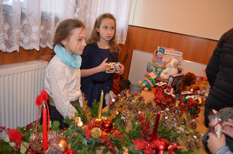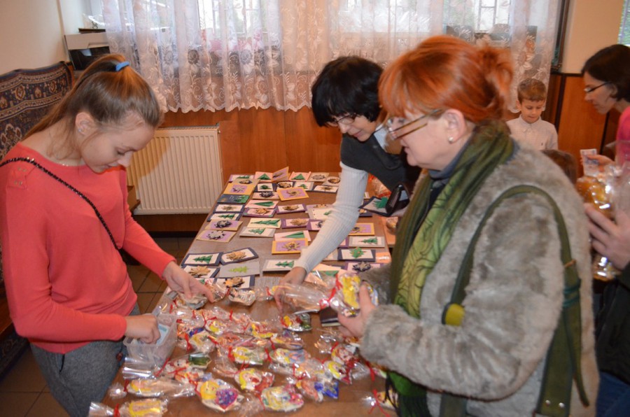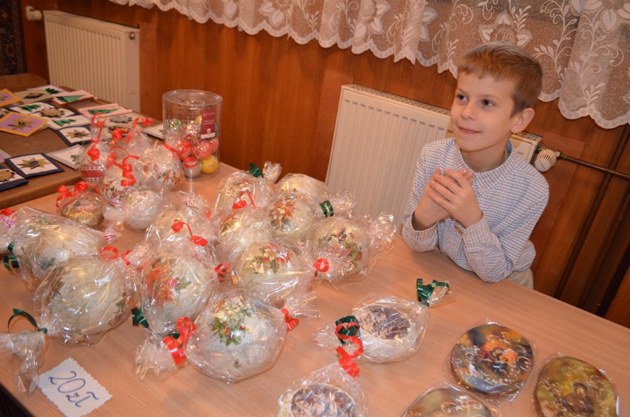 W dolnej świetlicy sprzedawano własnoręcznie wykonane bombki, kartki świąteczne, Aniołki z masy solnej, pierniki które zostały przygotowane wcześniej przez dzieci i młodzież oraz ich rodziców.