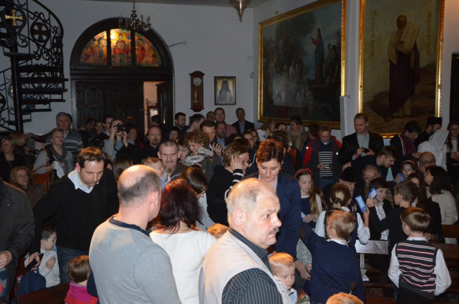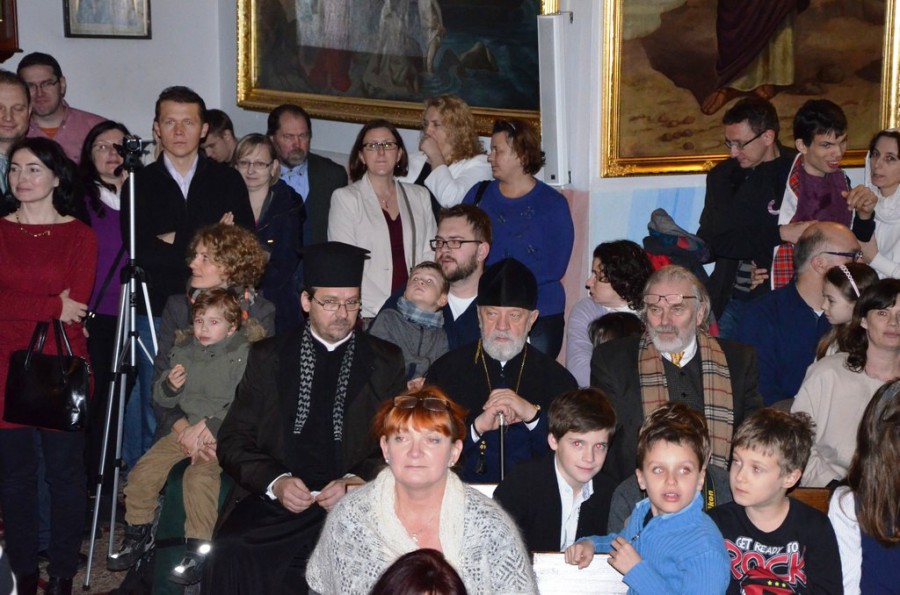 W piątkowy wieczór spotkaliśmy się w naszej parafialnej cerkwi pw. Św. Jana Klimaka. Prowadzący spotkanie, Kandżu Skopiec i Michał Kuźmiuk, poprosili wszystkich o powstanie aby uroczystość rozpocząć wspólną modlitwą.