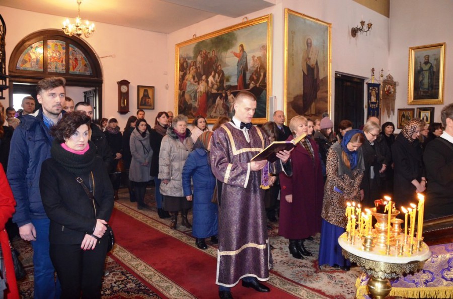 Ósmego marca zgromadziliśmy się w naszej wolskiej świątyni, jak to zwykle w niedzielę bywa, na dwóch Liturgiach: część na tej wcześniejszej w dolnej cerkwi sprawowanej przez ks. prot. Adama Misijuka, a reszta na tej w górnej cerkwi, celebrowanej przez ks. mitrata Mikołaja Lenczewskiego – proboszcza, ks. prot. Marian Bendzę, ks. prot. Jarosława Kadylaka, ks. prot. Piotra Kosińskiego, ks. prot. Piotra Rajeckiego, oraz księży protodiakonów Jerzego Dmitruka i Marka Zyc-Zyckowskiego.
