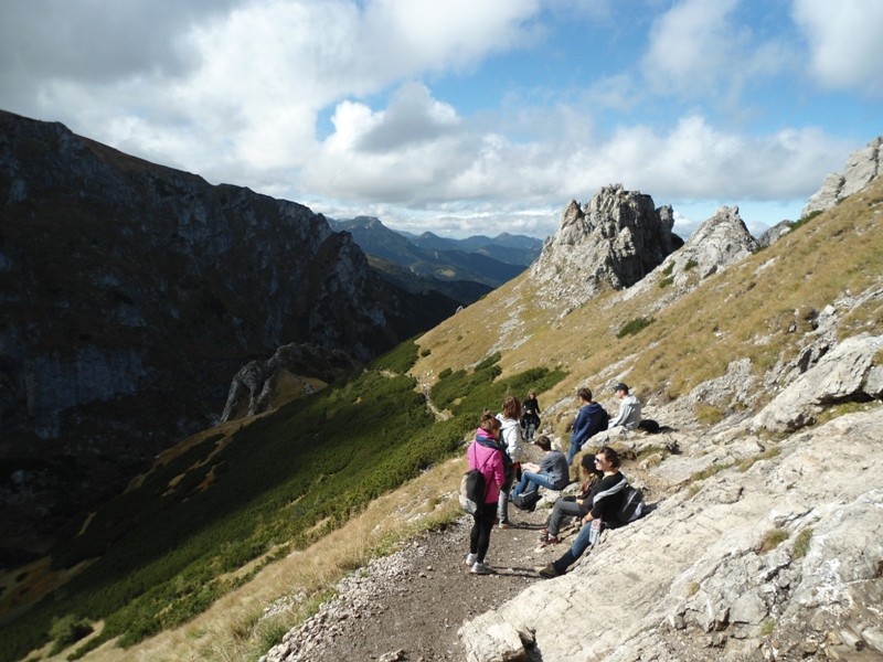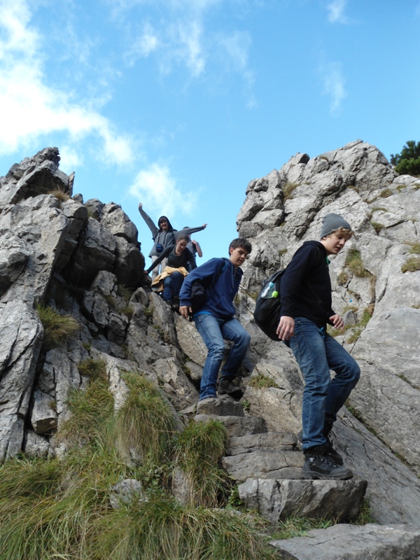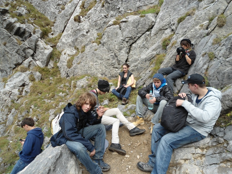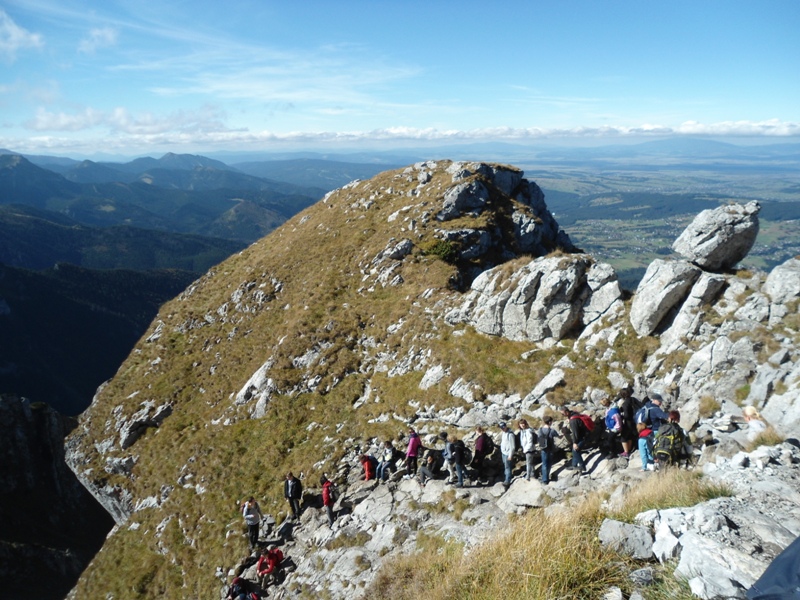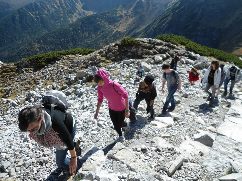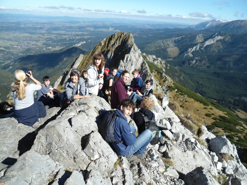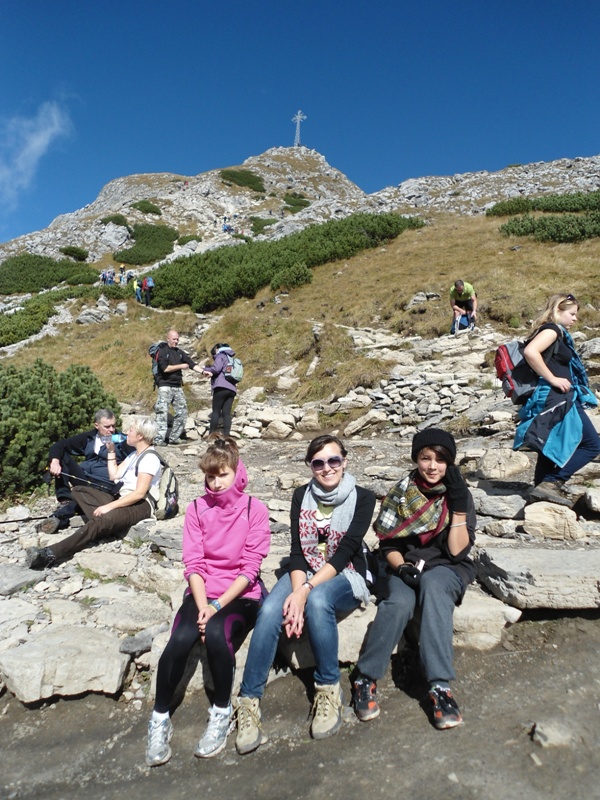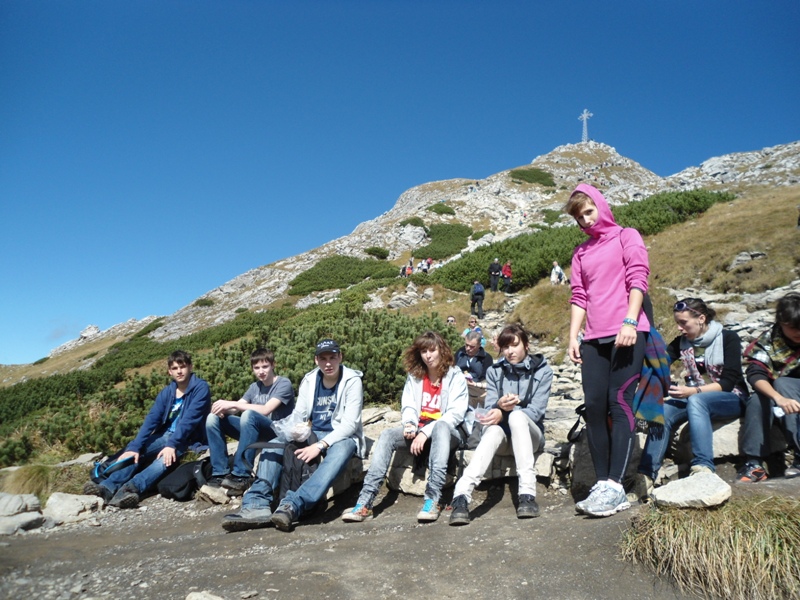 Już w piątek mieliśmy okazję do pokonania swoich słabości. Jako że pogoda wyraźnie nam sprzyjała, postanowiliśmy wdrapać się na Giewont. Szczyt ten, liczący 1894 m. n.p.m., stanowił dla niektórych nie lada wyzwanie. Jednak każdy zrobił to, co w jego mocy, by dotrzeć na sam szczyt, gdzie mogliśmy podziwiać przepiękną panoramę niemal całych Tatr i Podhala. Malownicze widoki zapierające dech w piersiach sprawiły, że zapomnieliśmy o trudzie, jaki włożyliśmy w pokonanie tej trasy. Schodząc do Zakopanego, gdzie nocowaliśmy, wstąpiliśmy jeszcze do schroniska na Hali Kondratowej.