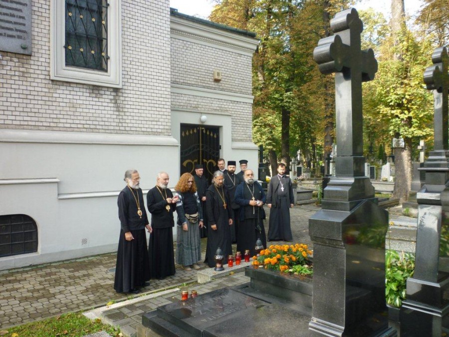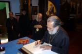 Wizyta rozpoczęła się od modlitwy i zwiedzenia naszej cerkwi. Goście mieli możliwość zapoznać się z historią świątyni i cmentarza. Arcybiskup Chrisóstomo wraz z członkami delegacji pomodlili się przy grobie śp. Metropolity Bazylego (Doroszkiewicza).