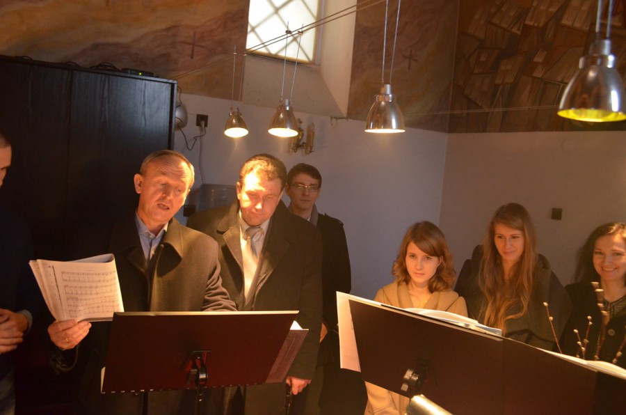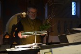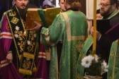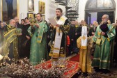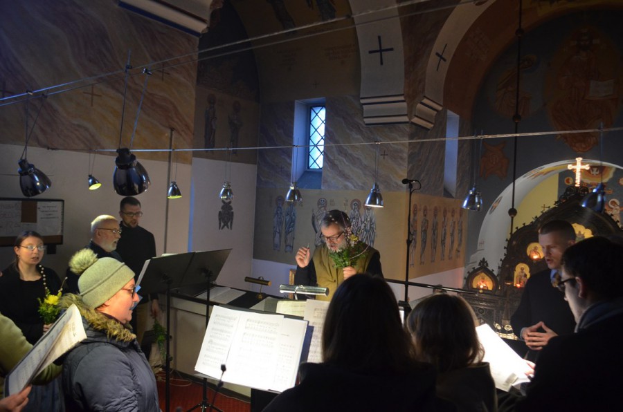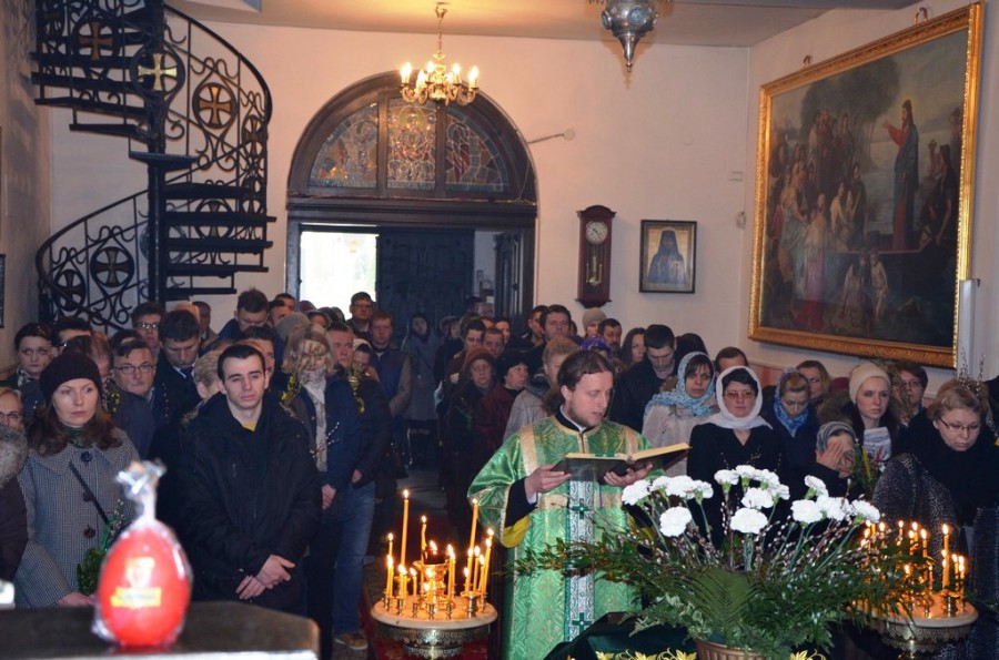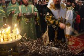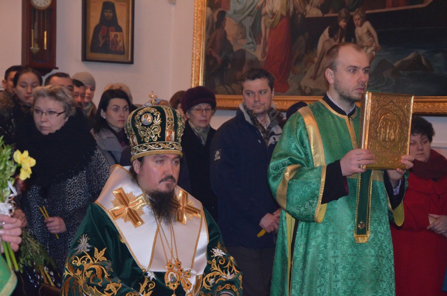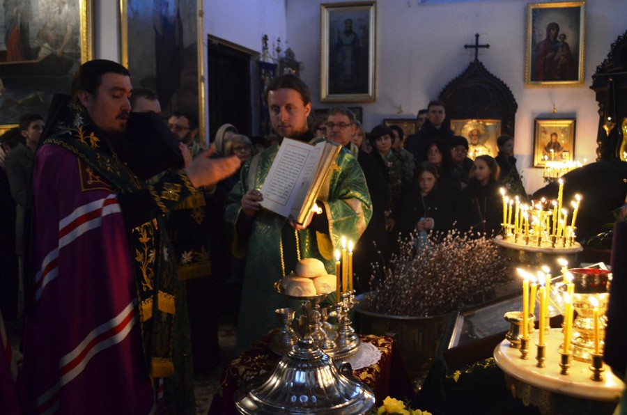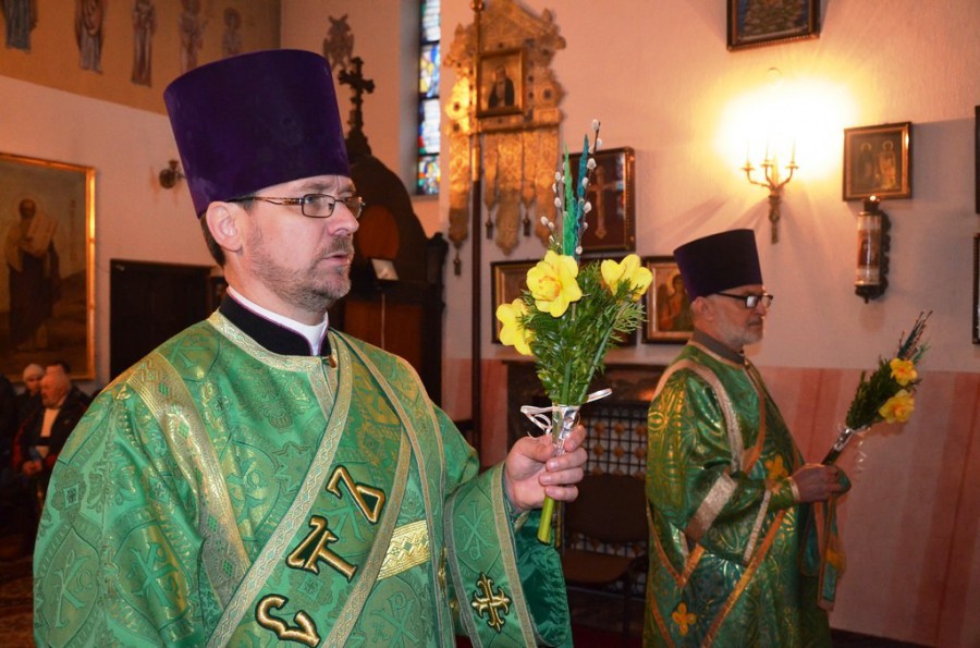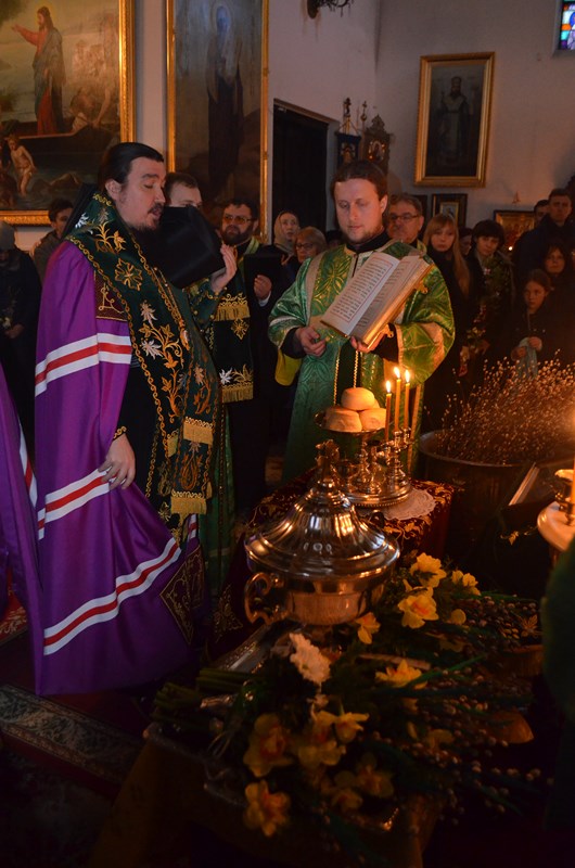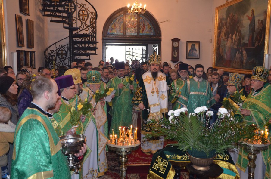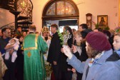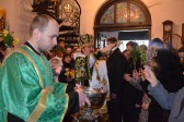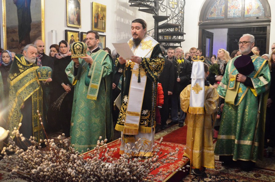Po końcowym rozesłaniu chór odśpiewał troparion, kondakion oraz megalitarion święta, po czym Władyka Jerzy przeczytał modlitwę na poświęcenie gałązek palmowych. Następnie obszedł całą cerkiew kropiąc święconą wodą palemki, które wierni przynieśli dzisiaj ze sobą do świątyni.
