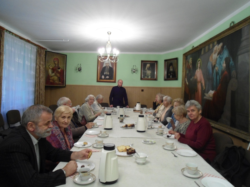 Spotkania Seniorów są długoletnią tradycją naszej parafii. Pomysłodawcą i inicjatorem spotkań był ks. mitrat Mikołaj Lenczewski, obecny proboszcz naszej Parafii. Ks. Mikołaj opiekował się seniorami od 1995 roku do 2007 roku, kiedy to został mianowany na stanowisko proboszcza. Od tego czasu duchowym opiekunem Seniorów w naszej parafii jest ks. Piotr Rajecki. Spotkania odbywają się w pierwszą środę miesiąca. Podczas nich poruszane są różne tematy. Podczas dzisiejszego spotkania dyskutowano o Misji Śww. Braci Cyryla i Metodego wśród Słowian.