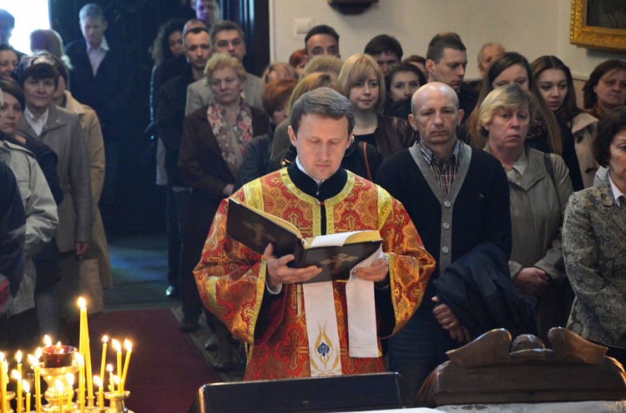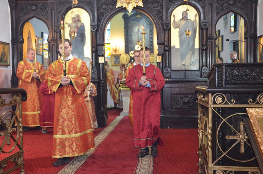 Dzisiejszej Boskiej Liturgii przewodniczył ks. mitrat Mikołaj Lenczewski – proboszcz wolskiej parafii. Współcelebrantami byli księża: mitrat Rościsław Kozłowski, prot. Marian Bendza, prot. Jarosław Kadylak, prot. Adam Misijuk, prot. Piotr Rajecki oraz księża protodiakoni: Marek Zyc-Zyckowski i Paweł Korobejnikov. Śpiewał chór dyrygowany przez pana prof. Włodzimierza Wołosiuka.