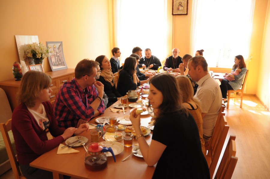 Następnie zarówno studenci jak i miejscowi parafianie udali się na wspólny poczęstunek na plebanii oraz ponowne Spotkanie z Władyką. Jest to człowiek o wspaniałym sercu, który potrafi zaciekawić swoimi opowiadaniami. Wszyscy słuchali go z ogromnym zaciekawieniem.