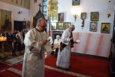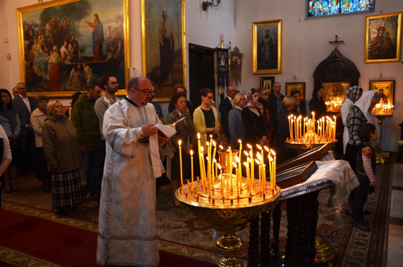 Uroczystemu nabożeństwu przewodniczył Proboszcz naszej Parafii – ks. mitrat Mikołaj Lenczewski, w asyście: ks. prot. Jarosława Kadylaka, ks. prot. Piotra Kosińskiego, ks. prot. Piotra Rajeckiego, ks. protodiakona Jerzego Dmitruka, ks. protodiakona Marka Zyc-Zyckowskiego oraz naszego zacnego gościa - ks. diakona Pawła Filinowicza, który na co dzień swą posługę diakońską niesie w Hajnówce. Podczas dzisiejszej Świętej Liturgii ks. diakon Paweł przeczytał Dzieje Świętych Apostołów (Dz 20, 16-18, 28-36). Po przeczytaniu przez ks. protodiakona Jerzego Dmitruka fragmentu Świętej Ewangelii według Świętego Apostoła i Ewangelisty Jana (J 17, 1-13) pouczające kazanie wygłosił ks. prot. Piotr Kosiński.