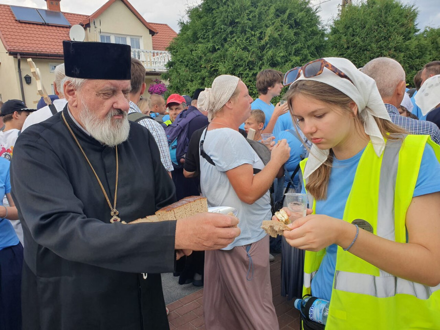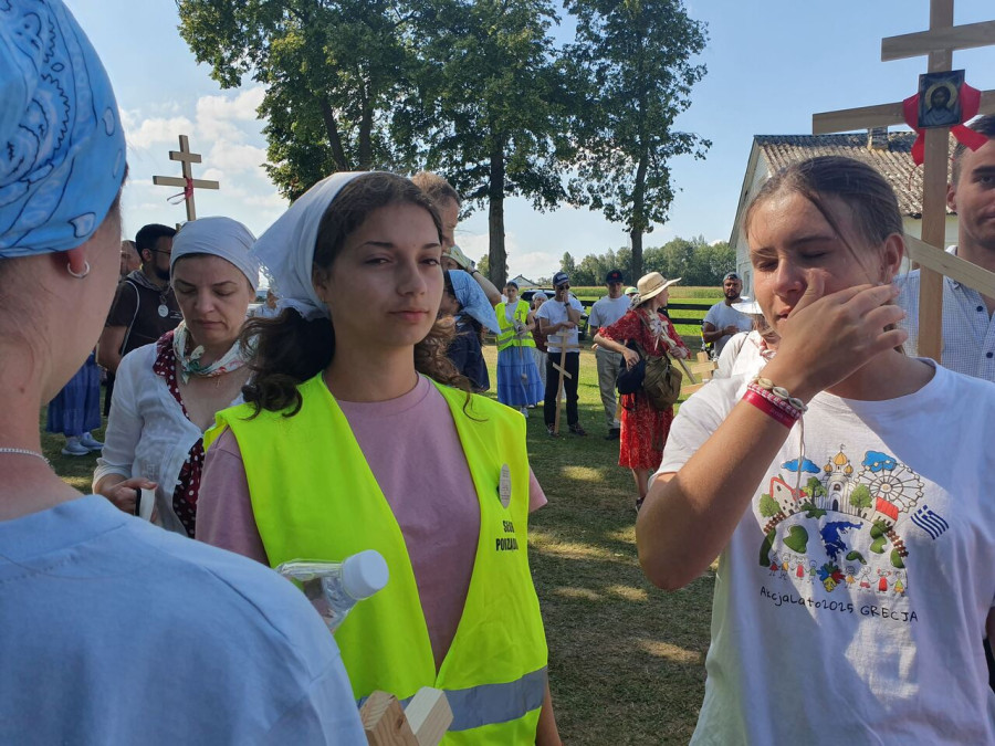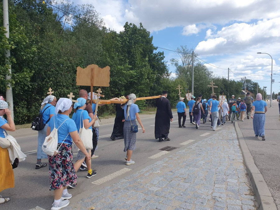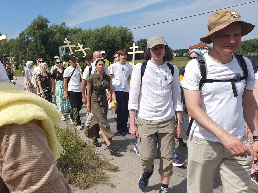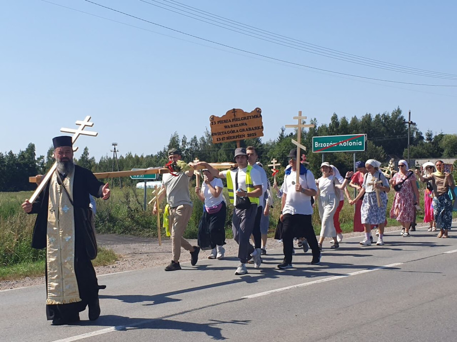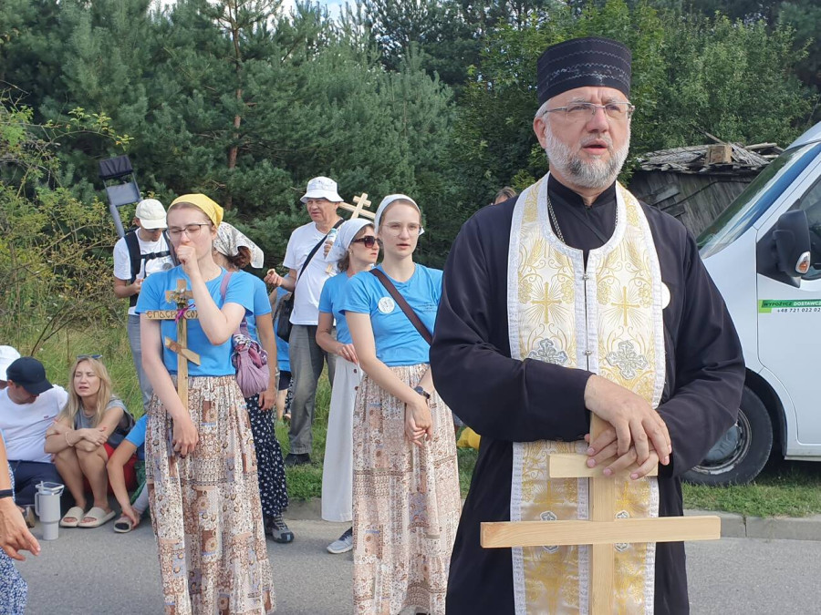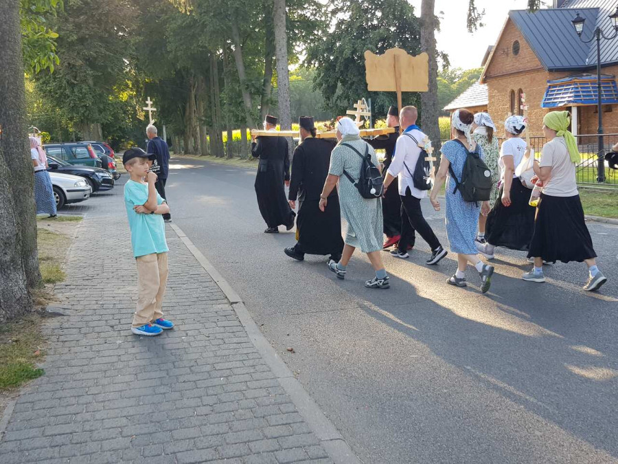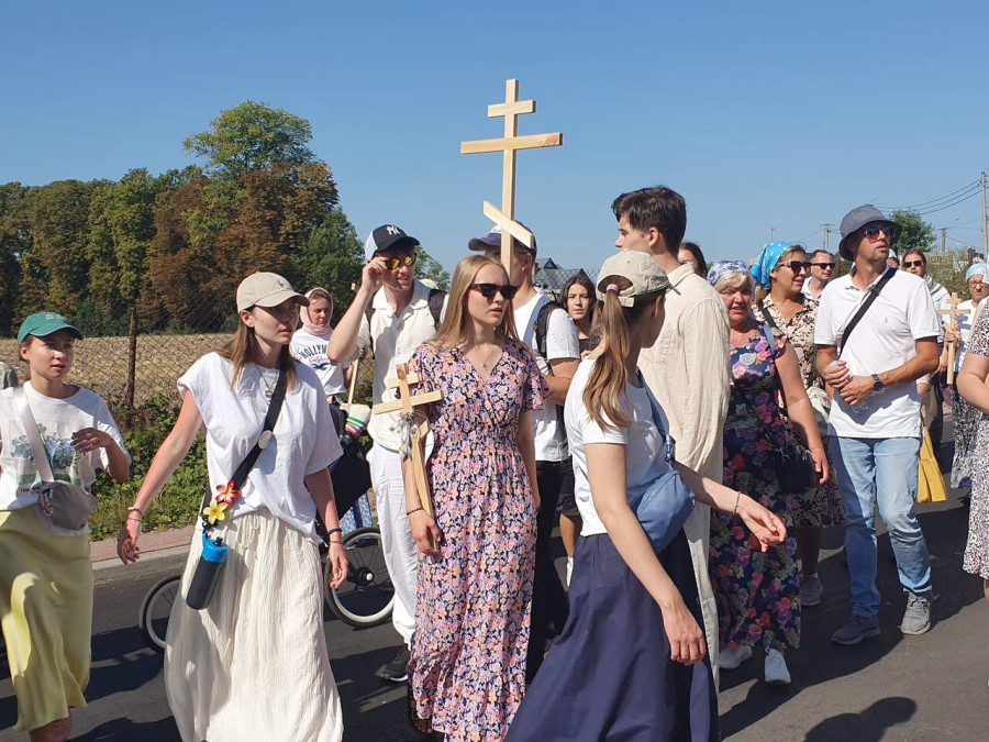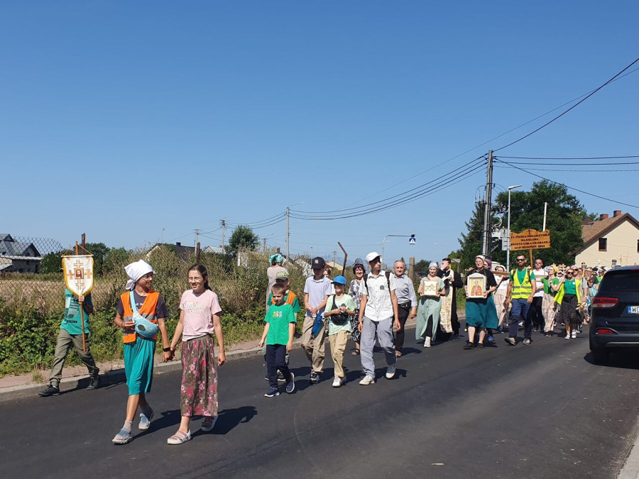 Na drewnianym krzyżu pierwsze słowa modlitwy, które towarzyszą nam przez całe życie, każdego dnia i są znakiem naszej wiary, jestestwa, tego – kim jesteśmy. Będziemy je wspólnie i osobiście rozważali w czasie tegorocznej Pielgrzymki, ofiarowanej pamięci Ojców Cerkwi, którzy w trakcie I Soboru Powszechnego opracowali pierwszą część naszego Wyznania Wiary. Czując na sobie błogosławiące gesty Chrystusa i świętych z ikon w cerkwi św. Apostołów Piotra i Pawła w Wołominie, skąd tradycyjnie wyrusza warszawska Pielgrzymka, i błogosławieństwo Jego Eminencji Wielce Błogosławionego Sawy, Metropolity Warszawskiego i całej Polski – ruszamy w drogę. Trasa – znajoma, te same miejsca, gdzie celebrowane są św. Liturgie, te same miejsca noclegów. Wielu znajomych i przyjaciół wokół, dobrze znane słowa modlitw i pątniczych pieśni. A jednak każda Pielgrzymka jest inna. Bo my sami zmieniamy się – niesiemy inny bagaż trosk i duchowych rozterek, nowe intencje czy – uwierające jak niewygodne buty – grzechy. W relacjach z Pielgrzymek widzimy najczęściej radosną gromadę pątników z krzyżami w dłoniach i na ramionach oraz malownicze mazowiecko – podlaskie pejzaże. Zobaczmy teraz szczegóły pątniczego wędrowania ku Chrystusowi – asfaltowe kilometry dróg, liczne, choć drobne „tradycyjne” momenty – na które się czeka, ludzi, którzy goszczą pielgrzymów całym sercem i tych, którzy pokrzepiają ich po drodze uśmiechami i pozdrowieniem Szczęść Boże! Szczegóły ważne dla pątników i składające się na pięć dnia w roku, na które czeka się – cały rok!