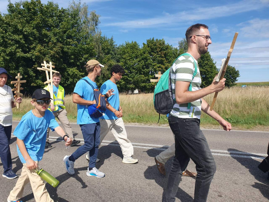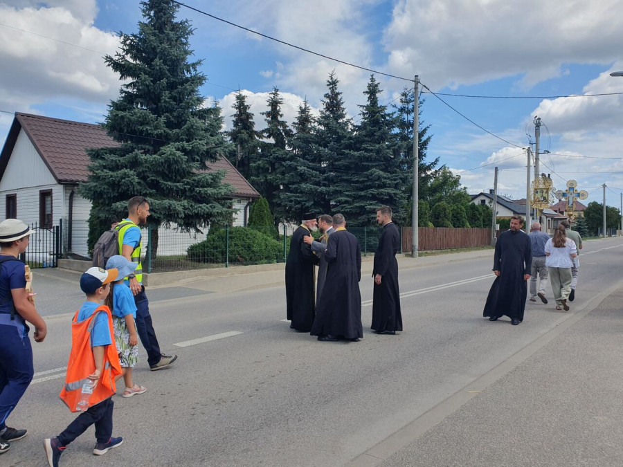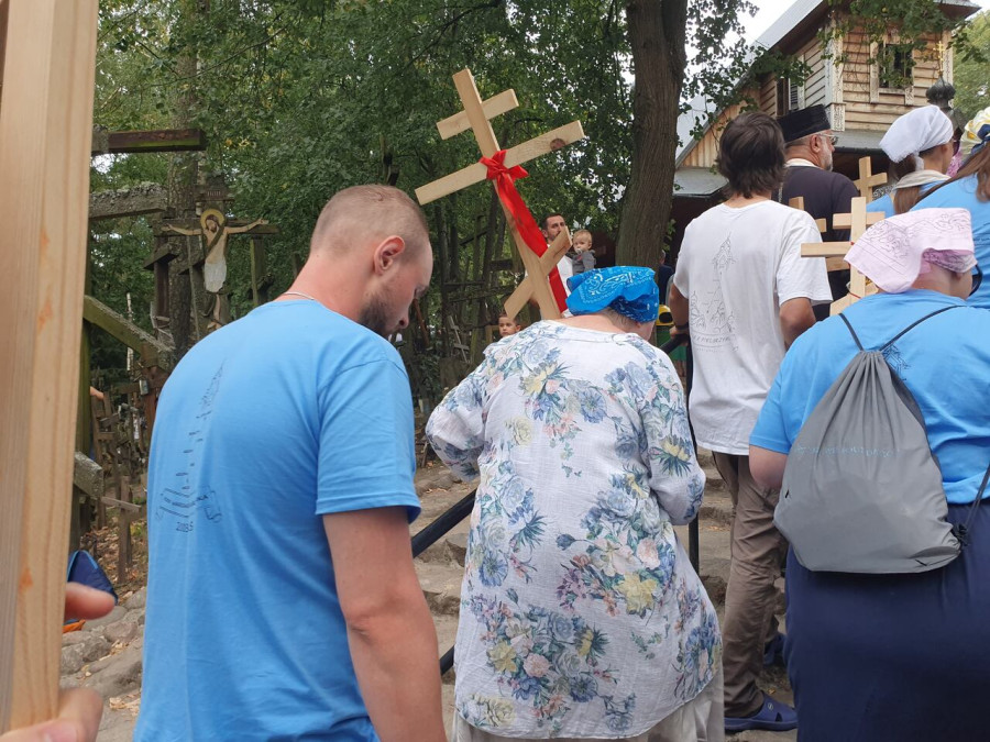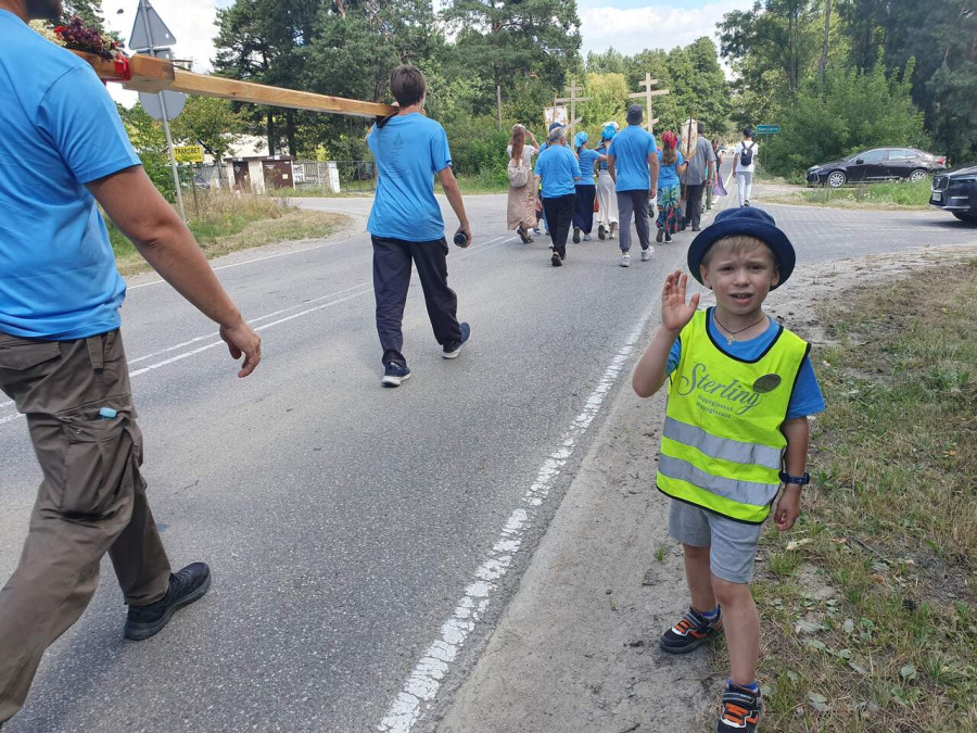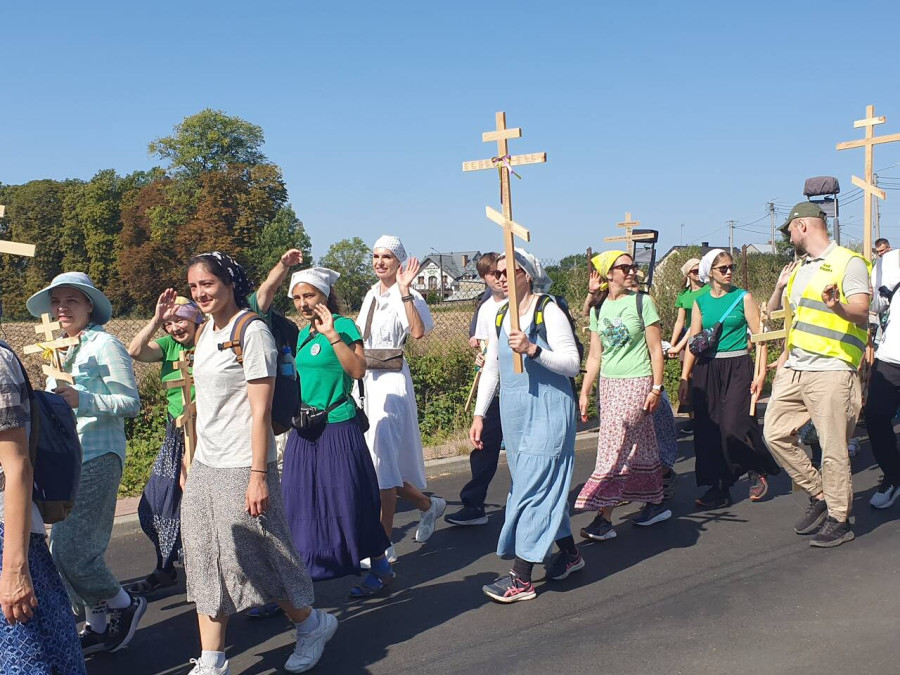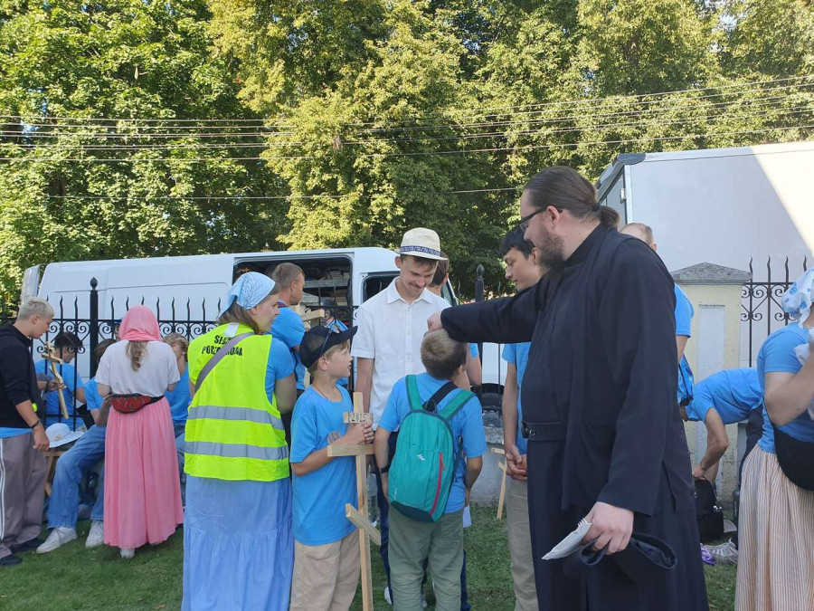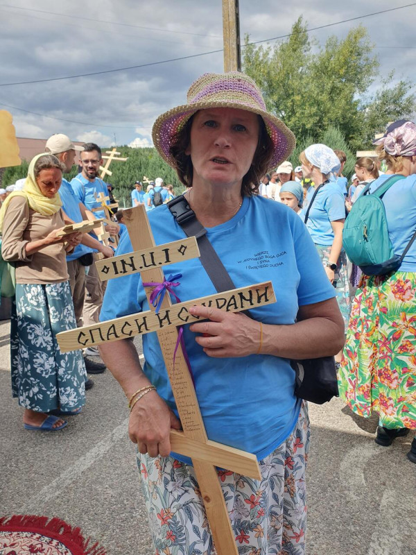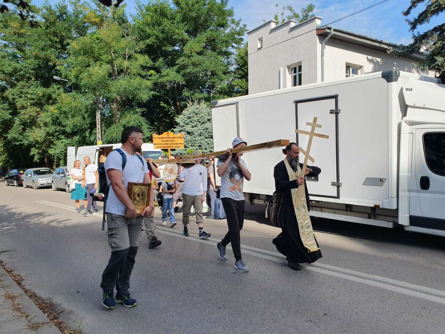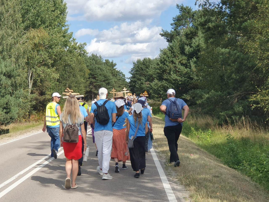 Na drewnianym krzyżu pierwsze słowa modlitwy, które towarzyszą nam przez całe życie, każdego dnia i są znakiem naszej wiary, jestestwa, tego – kim jesteśmy. Będziemy je wspólnie i osobiście rozważali w czasie tegorocznej Pielgrzymki, ofiarowanej pamięci Ojców Cerkwi, którzy w trakcie I Soboru Powszechnego opracowali pierwszą część naszego Wyznania Wiary. Czując na sobie błogosławiące gesty Chrystusa i świętych z ikon w cerkwi św. Apostołów Piotra i Pawła w Wołominie, skąd tradycyjnie wyrusza warszawska Pielgrzymka, i błogosławieństwo Jego Eminencji Wielce Błogosławionego Sawy, Metropolity Warszawskiego i całej Polski – ruszamy w drogę. Trasa – znajoma, te same miejsca, gdzie celebrowane są św. Liturgie, te same miejsca noclegów. Wielu znajomych i przyjaciół wokół, dobrze znane słowa modlitw i pątniczych pieśni. A jednak każda Pielgrzymka jest inna. Bo my sami zmieniamy się – niesiemy inny bagaż trosk i duchowych rozterek, nowe intencje czy – uwierające jak niewygodne buty – grzechy. W relacjach z Pielgrzymek widzimy najczęściej radosną gromadę pątników z krzyżami w dłoniach i na ramionach oraz malownicze mazowiecko – podlaskie pejzaże. Zobaczmy teraz szczegóły pątniczego wędrowania ku Chrystusowi – asfaltowe kilometry dróg, liczne, choć drobne „tradycyjne” momenty – na które się czeka, ludzi, którzy goszczą pielgrzymów całym sercem i tych, którzy pokrzepiają ich po drodze uśmiechami i pozdrowieniem Szczęść Boże! Szczegóły ważne dla pątników i składające się na pięć dnia w roku, na które czeka się – cały rok!