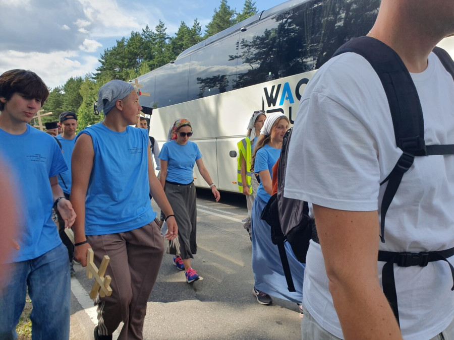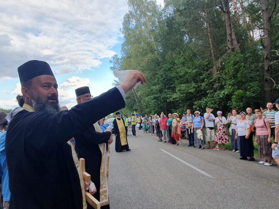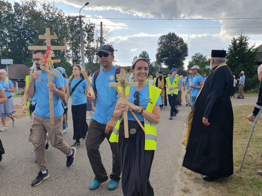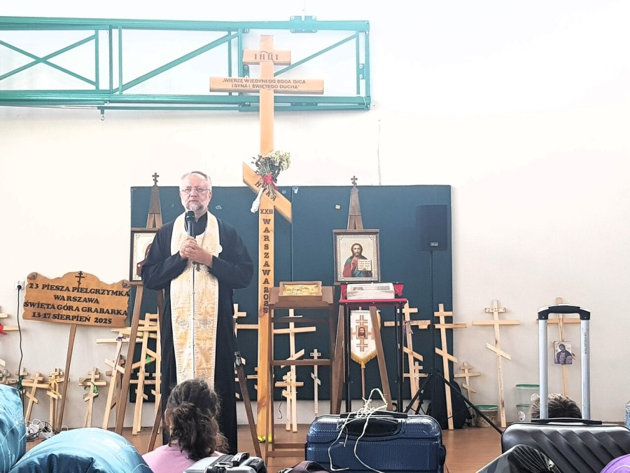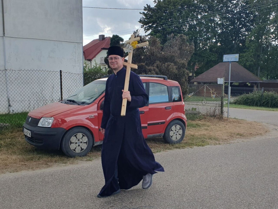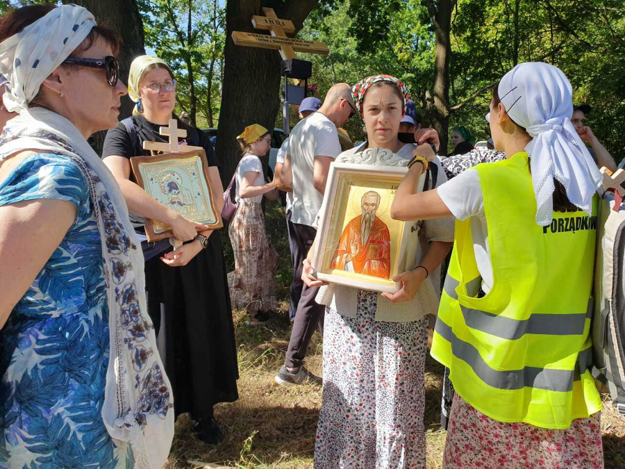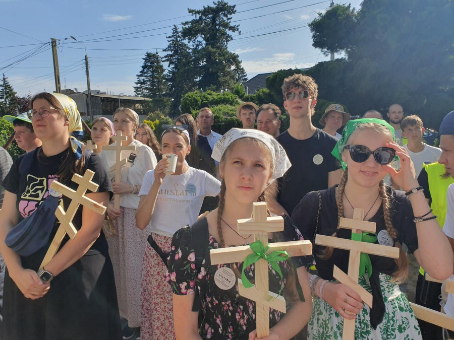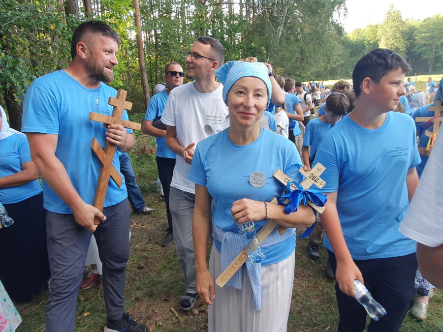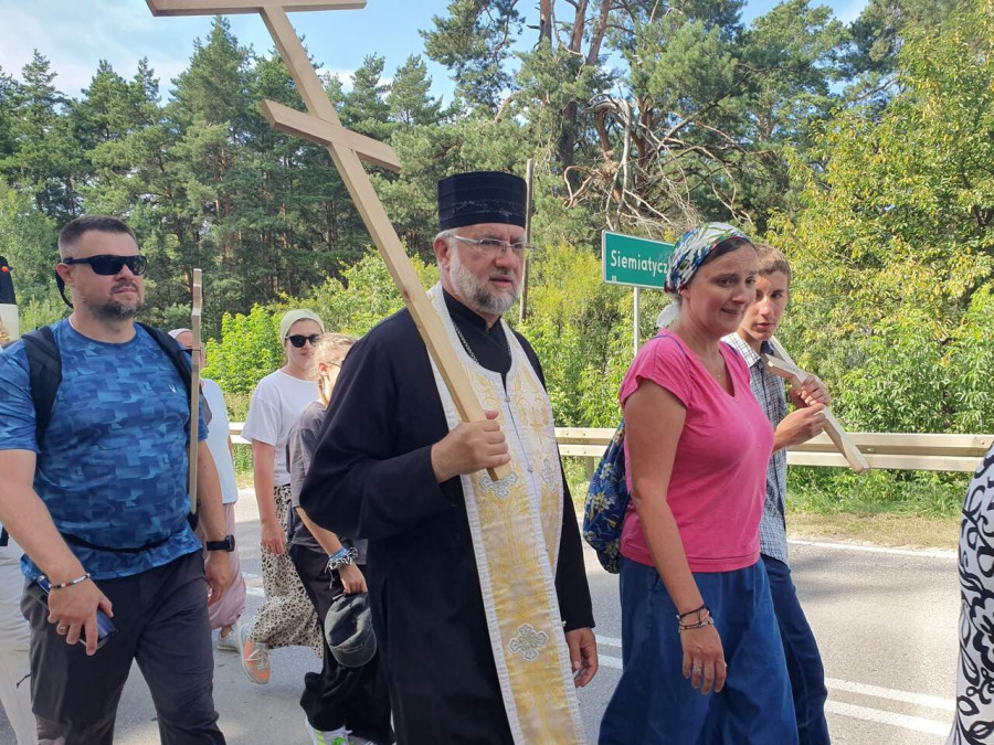 Na drewnianym krzyżu pierwsze słowa modlitwy, które towarzyszą nam przez całe życie, każdego dnia i są znakiem naszej wiary, jestestwa, tego – kim jesteśmy. Będziemy je wspólnie i osobiście rozważali w czasie tegorocznej Pielgrzymki, ofiarowanej pamięci Ojców Cerkwi, którzy w trakcie I Soboru Powszechnego opracowali pierwszą część naszego Wyznania Wiary. Czując na sobie błogosławiące gesty Chrystusa i świętych z ikon w cerkwi św. Apostołów Piotra i Pawła w Wołominie, skąd tradycyjnie wyrusza warszawska Pielgrzymka, i błogosławieństwo Jego Eminencji Wielce Błogosławionego Sawy, Metropolity Warszawskiego i całej Polski – ruszamy w drogę. Trasa – znajoma, te same miejsca, gdzie celebrowane są św. Liturgie, te same miejsca noclegów. Wielu znajomych i przyjaciół wokół, dobrze znane słowa modlitw i pątniczych pieśni. A jednak każda Pielgrzymka jest inna. Bo my sami zmieniamy się – niesiemy inny bagaż trosk i duchowych rozterek, nowe intencje czy – uwierające jak niewygodne buty – grzechy. W relacjach z Pielgrzymek widzimy najczęściej radosną gromadę pątników z krzyżami w dłoniach i na ramionach oraz malownicze mazowiecko – podlaskie pejzaże. Zobaczmy teraz szczegóły pątniczego wędrowania ku Chrystusowi – asfaltowe kilometry dróg, liczne, choć drobne „tradycyjne” momenty – na które się czeka, ludzi, którzy goszczą pielgrzymów całym sercem i tych, którzy pokrzepiają ich po drodze uśmiechami i pozdrowieniem Szczęść Boże! Szczegóły ważne dla pątników i składające się na pięć dnia w roku, na które czeka się – cały rok!