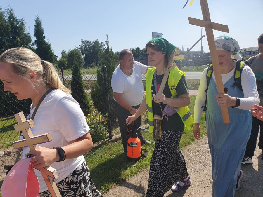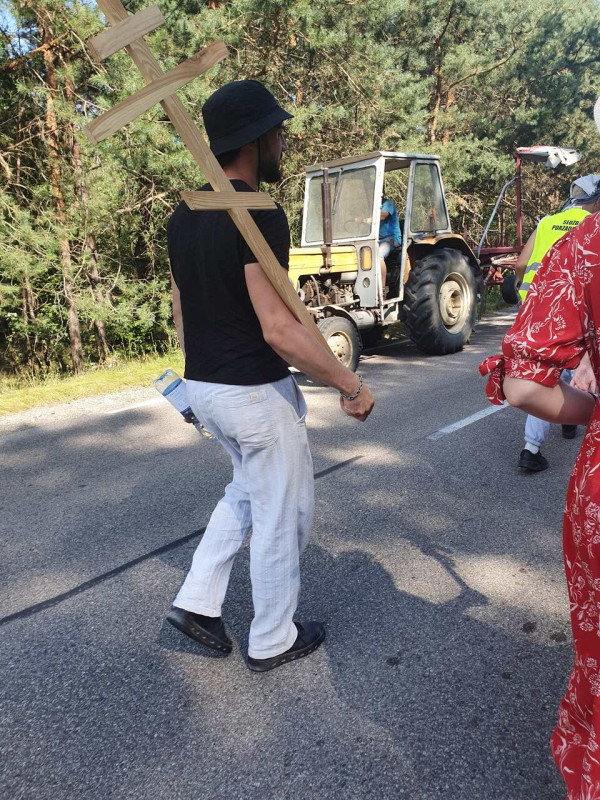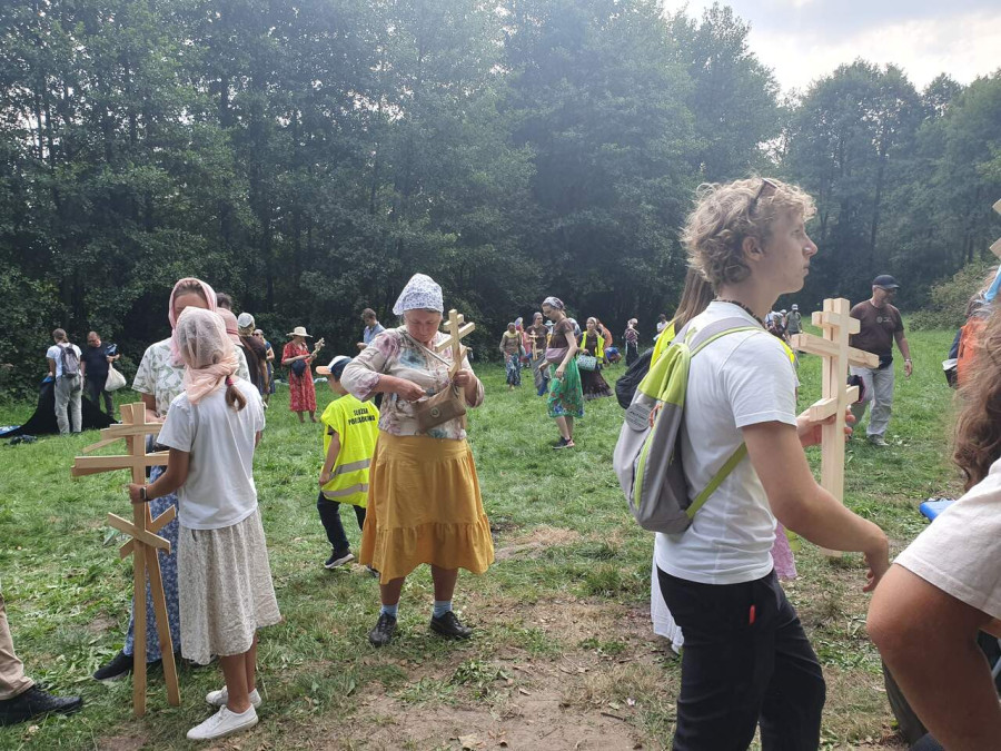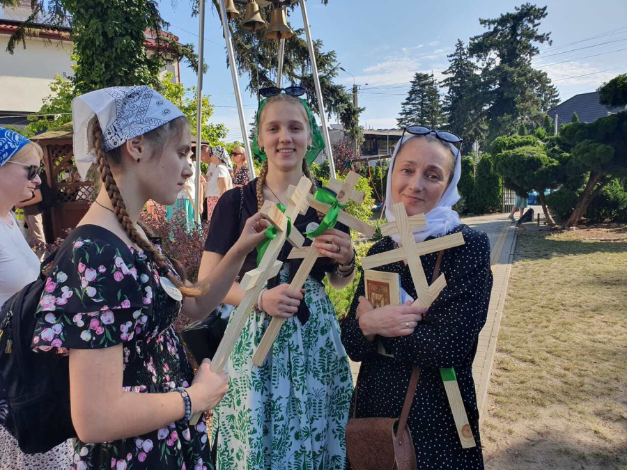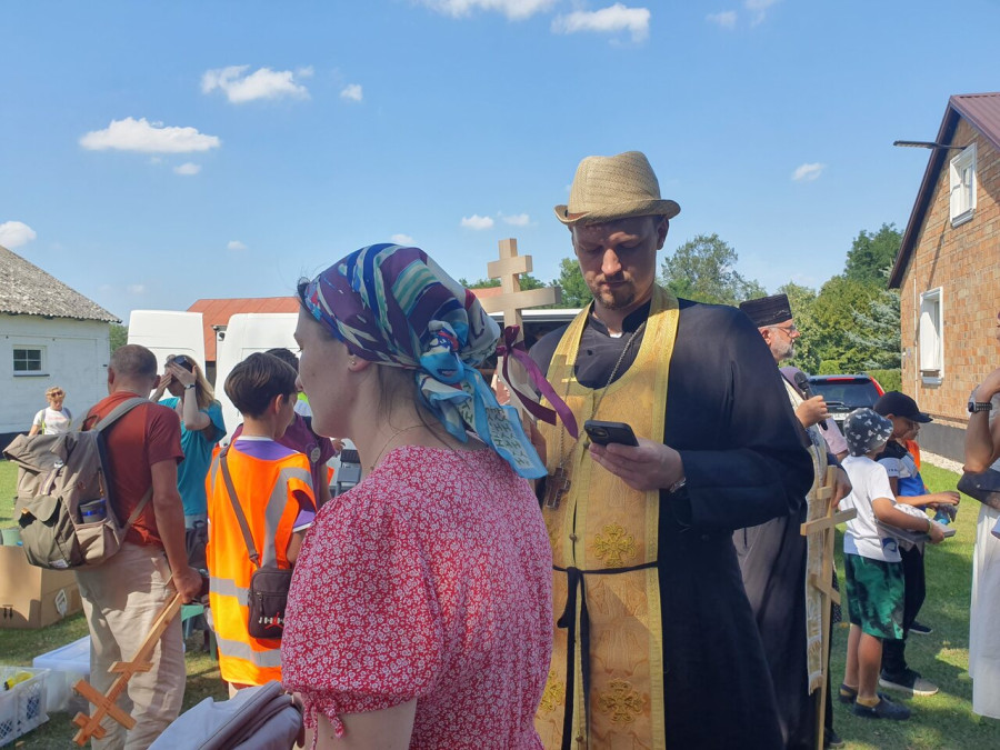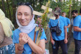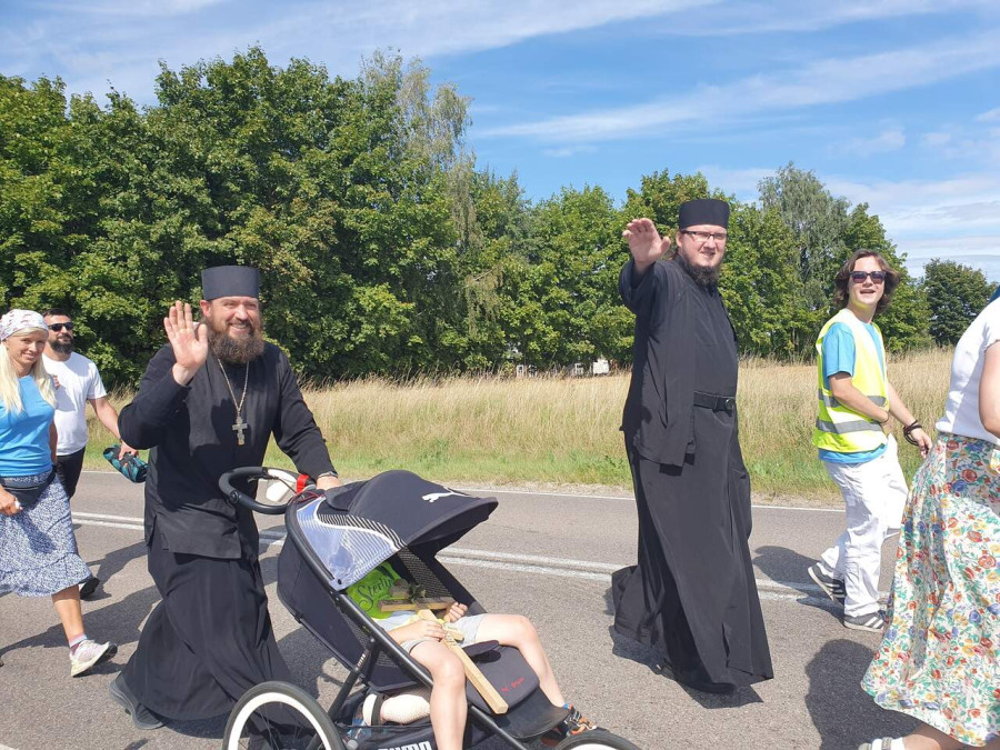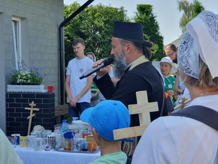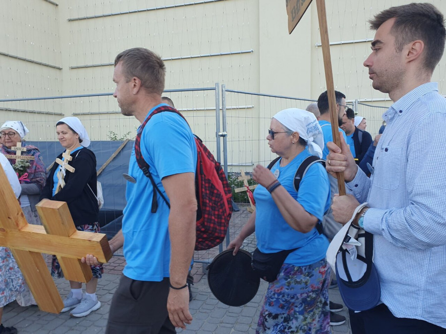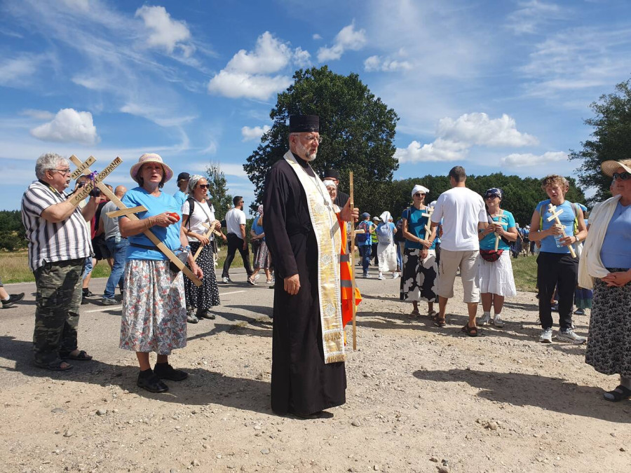 Na drewnianym krzyżu pierwsze słowa modlitwy, które towarzyszą nam przez całe życie, każdego dnia i są znakiem naszej wiary, jestestwa, tego – kim jesteśmy. Będziemy je wspólnie i osobiście rozważali w czasie tegorocznej Pielgrzymki, ofiarowanej pamięci Ojców Cerkwi, którzy w trakcie I Soboru Powszechnego opracowali pierwszą część naszego Wyznania Wiary. Czując na sobie błogosławiące gesty Chrystusa i świętych z ikon w cerkwi św. Apostołów Piotra i Pawła w Wołominie, skąd tradycyjnie wyrusza warszawska Pielgrzymka, i błogosławieństwo Jego Eminencji Wielce Błogosławionego Sawy, Metropolity Warszawskiego i całej Polski – ruszamy w drogę. Trasa – znajoma, te same miejsca, gdzie celebrowane są św. Liturgie, te same miejsca noclegów. Wielu znajomych i przyjaciół wokół, dobrze znane słowa modlitw i pątniczych pieśni. A jednak każda Pielgrzymka jest inna. Bo my sami zmieniamy się – niesiemy inny bagaż trosk i duchowych rozterek, nowe intencje czy – uwierające jak niewygodne buty – grzechy. W relacjach z Pielgrzymek widzimy najczęściej radosną gromadę pątników z krzyżami w dłoniach i na ramionach oraz malownicze mazowiecko – podlaskie pejzaże. Zobaczmy teraz szczegóły pątniczego wędrowania ku Chrystusowi – asfaltowe kilometry dróg, liczne, choć drobne „tradycyjne” momenty – na które się czeka, ludzi, którzy goszczą pielgrzymów całym sercem i tych, którzy pokrzepiają ich po drodze uśmiechami i pozdrowieniem Szczęść Boże! Szczegóły ważne dla pątników i składające się na pięć dnia w roku, na które czeka się – cały rok!