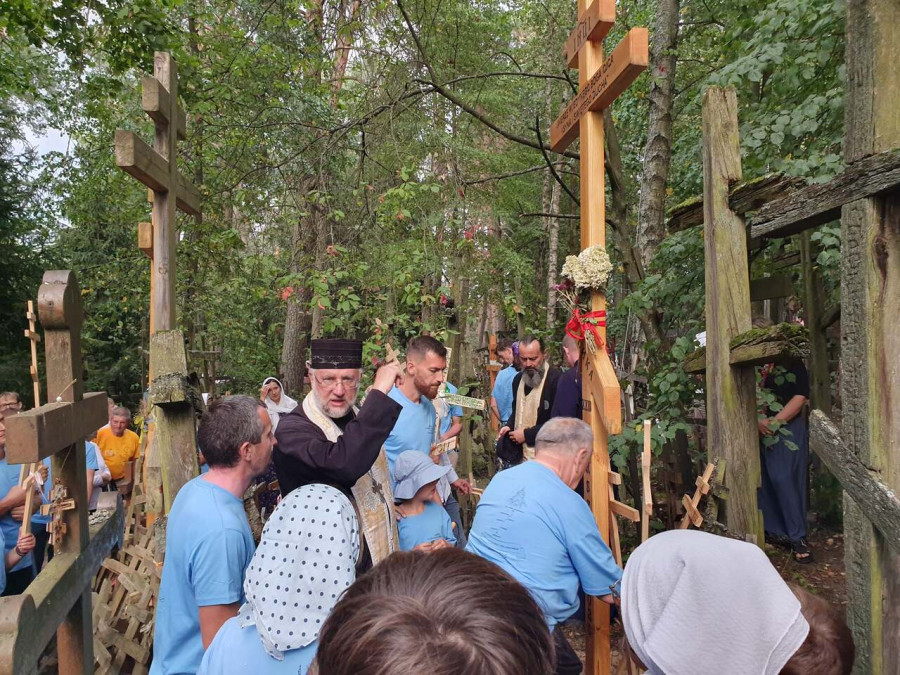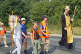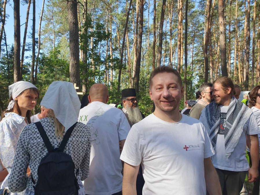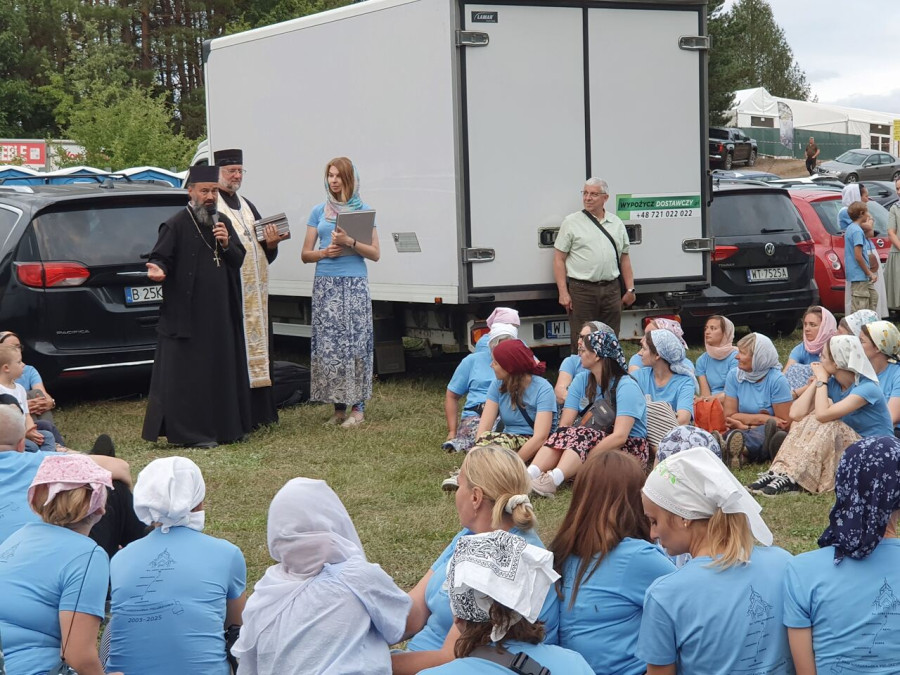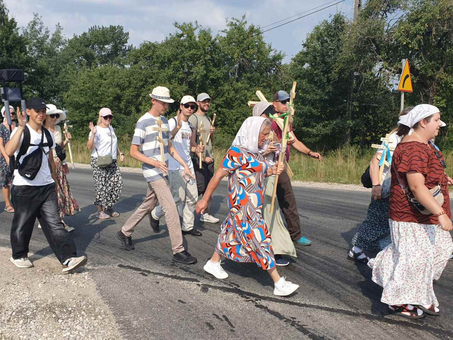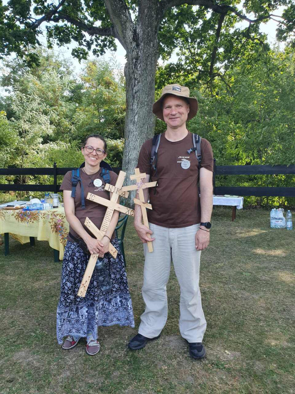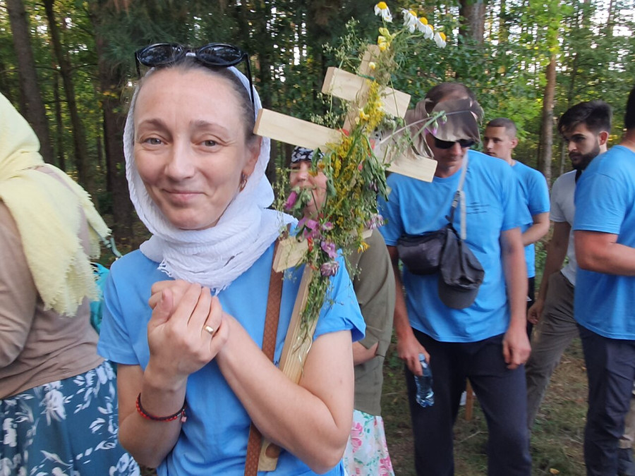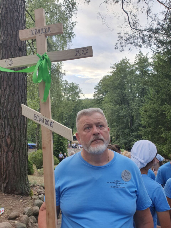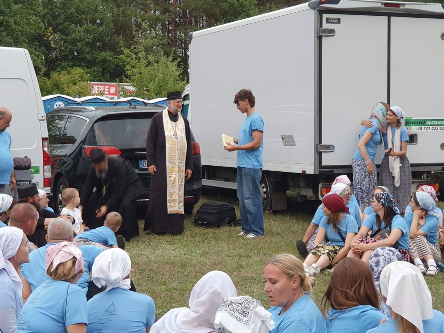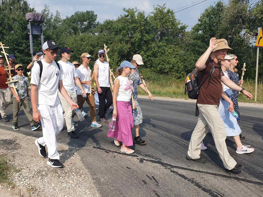 Na drewnianym krzyżu pierwsze słowa modlitwy, które towarzyszą nam przez całe życie, każdego dnia i są znakiem naszej wiary, jestestwa, tego – kim jesteśmy. Będziemy je wspólnie i osobiście rozważali w czasie tegorocznej Pielgrzymki, ofiarowanej pamięci Ojców Cerkwi, którzy w trakcie I Soboru Powszechnego opracowali pierwszą część naszego Wyznania Wiary. Czując na sobie błogosławiące gesty Chrystusa i świętych z ikon w cerkwi św. Apostołów Piotra i Pawła w Wołominie, skąd tradycyjnie wyrusza warszawska Pielgrzymka, i błogosławieństwo Jego Eminencji Wielce Błogosławionego Sawy, Metropolity Warszawskiego i całej Polski – ruszamy w drogę. Trasa – znajoma, te same miejsca, gdzie celebrowane są św. Liturgie, te same miejsca noclegów. Wielu znajomych i przyjaciół wokół, dobrze znane słowa modlitw i pątniczych pieśni. A jednak każda Pielgrzymka jest inna. Bo my sami zmieniamy się – niesiemy inny bagaż trosk i duchowych rozterek, nowe intencje czy – uwierające jak niewygodne buty – grzechy. W relacjach z Pielgrzymek widzimy najczęściej radosną gromadę pątników z krzyżami w dłoniach i na ramionach oraz malownicze mazowiecko – podlaskie pejzaże. Zobaczmy teraz szczegóły pątniczego wędrowania ku Chrystusowi – asfaltowe kilometry dróg, liczne, choć drobne „tradycyjne” momenty – na które się czeka, ludzi, którzy goszczą pielgrzymów całym sercem i tych, którzy pokrzepiają ich po drodze uśmiechami i pozdrowieniem Szczęść Boże! Szczegóły ważne dla pątników i składające się na pięć dnia w roku, na które czeka się – cały rok!