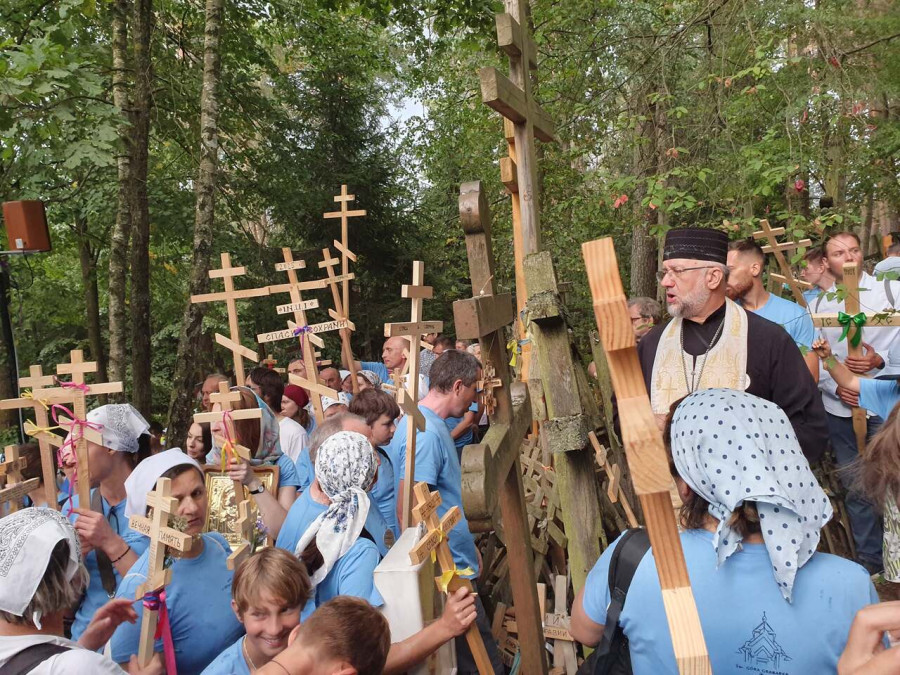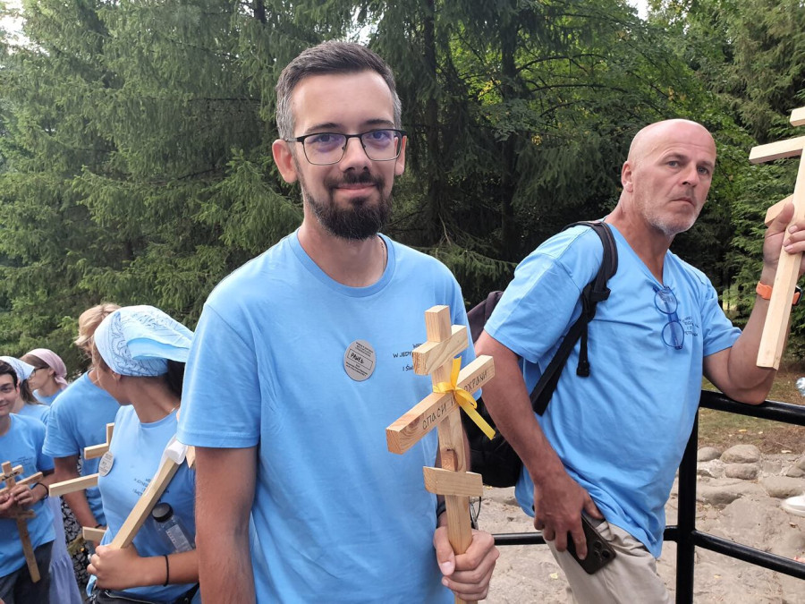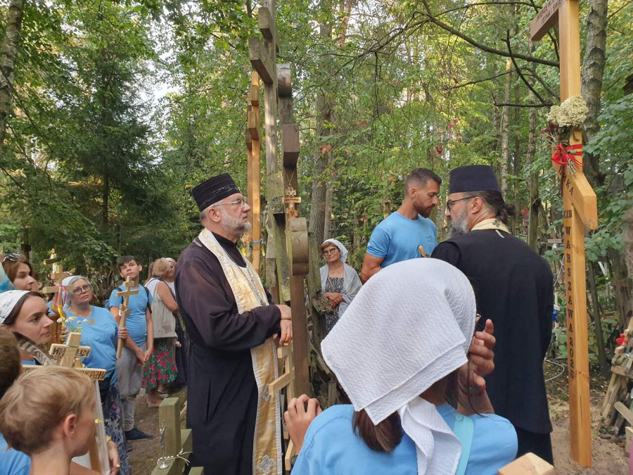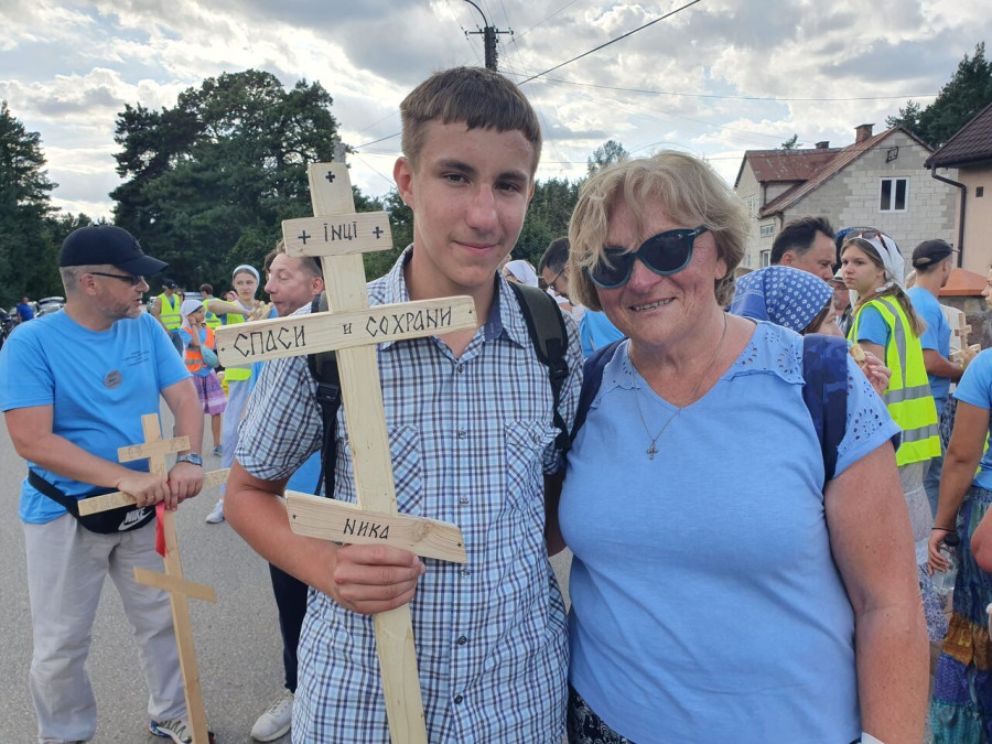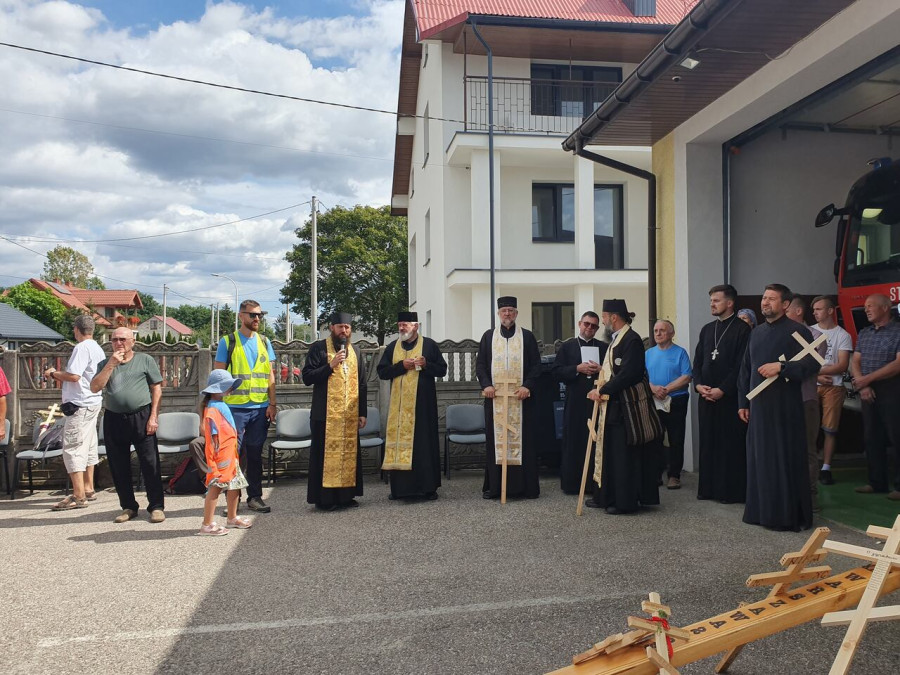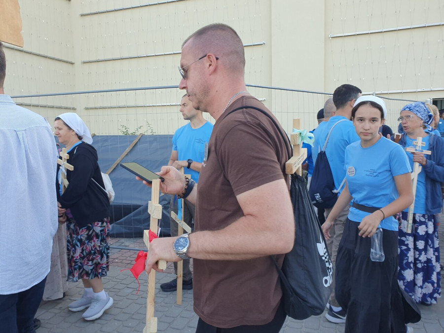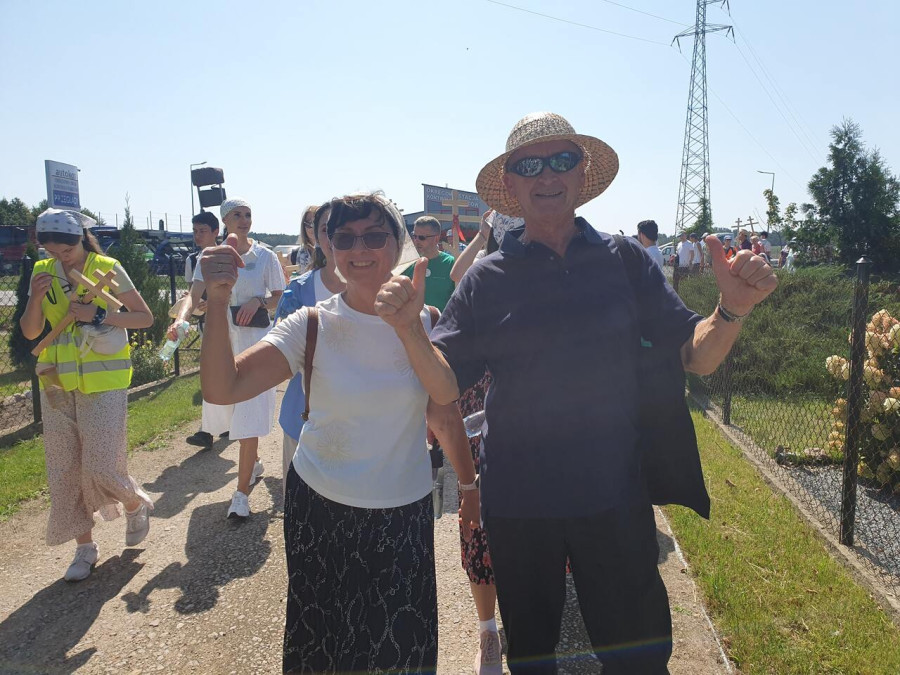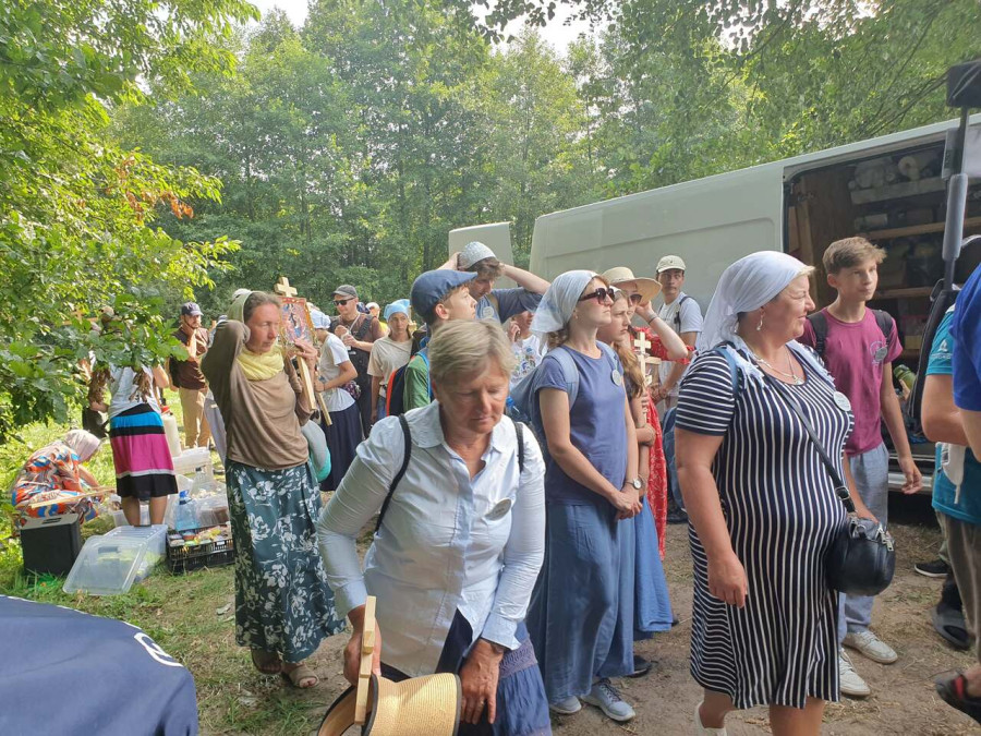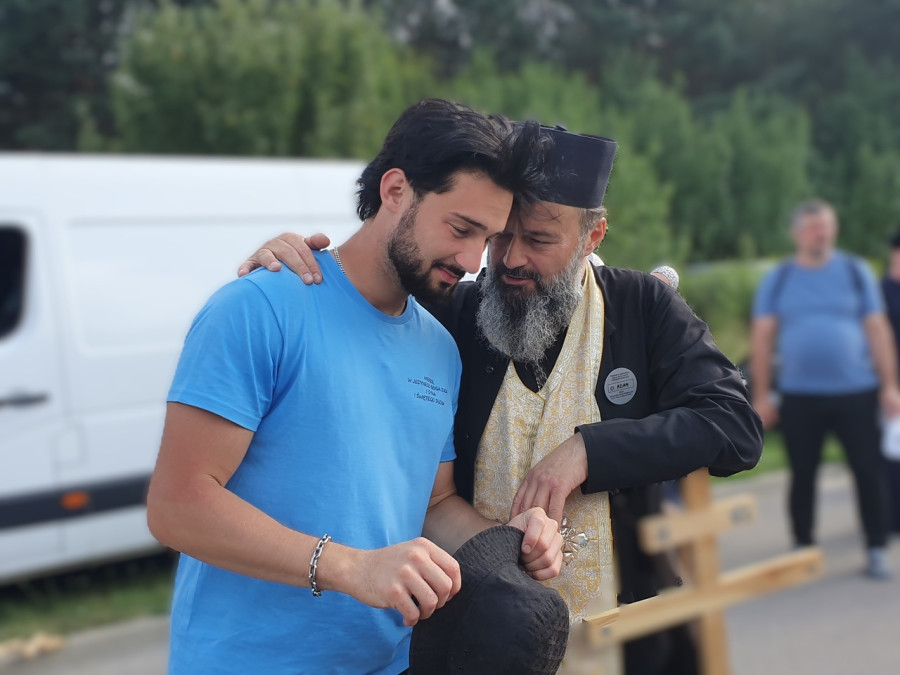 Na drewnianym krzyżu pierwsze słowa modlitwy, które towarzyszą nam przez całe życie, każdego dnia i są znakiem naszej wiary, jestestwa, tego – kim jesteśmy. Będziemy je wspólnie i osobiście rozważali w czasie tegorocznej Pielgrzymki, ofiarowanej pamięci Ojców Cerkwi, którzy w trakcie I Soboru Powszechnego opracowali pierwszą część naszego Wyznania Wiary. Czując na sobie błogosławiące gesty Chrystusa i świętych z ikon w cerkwi św. Apostołów Piotra i Pawła w Wołominie, skąd tradycyjnie wyrusza warszawska Pielgrzymka, i błogosławieństwo Jego Eminencji Wielce Błogosławionego Sawy, Metropolity Warszawskiego i całej Polski – ruszamy w drogę. Trasa – znajoma, te same miejsca, gdzie celebrowane są św. Liturgie, te same miejsca noclegów. Wielu znajomych i przyjaciół wokół, dobrze znane słowa modlitw i pątniczych pieśni. A jednak każda Pielgrzymka jest inna. Bo my sami zmieniamy się – niesiemy inny bagaż trosk i duchowych rozterek, nowe intencje czy – uwierające jak niewygodne buty – grzechy. W relacjach z Pielgrzymek widzimy najczęściej radosną gromadę pątników z krzyżami w dłoniach i na ramionach oraz malownicze mazowiecko – podlaskie pejzaże. Zobaczmy teraz szczegóły pątniczego wędrowania ku Chrystusowi – asfaltowe kilometry dróg, liczne, choć drobne „tradycyjne” momenty – na które się czeka, ludzi, którzy goszczą pielgrzymów całym sercem i tych, którzy pokrzepiają ich po drodze uśmiechami i pozdrowieniem Szczęść Boże! Szczegóły ważne dla pątników i składające się na pięć dnia w roku, na które czeka się – cały rok!