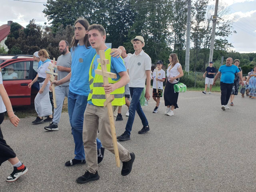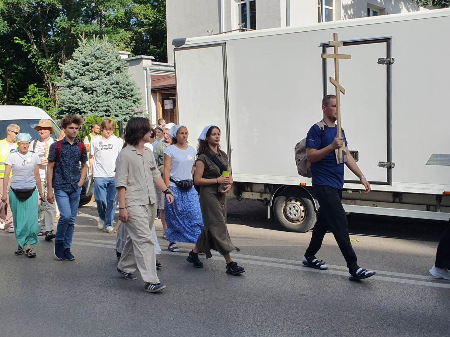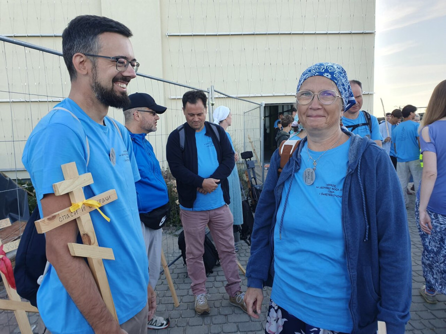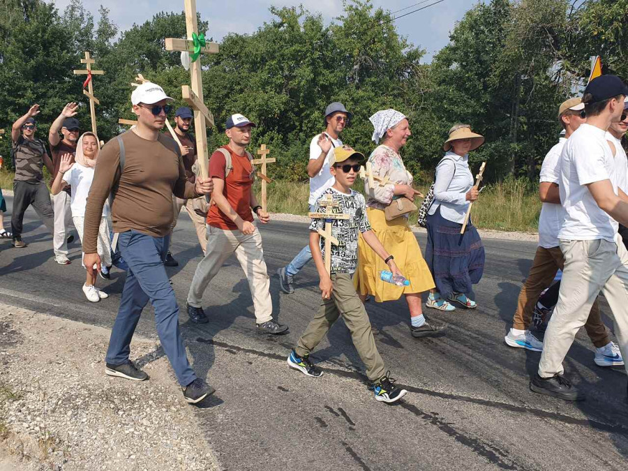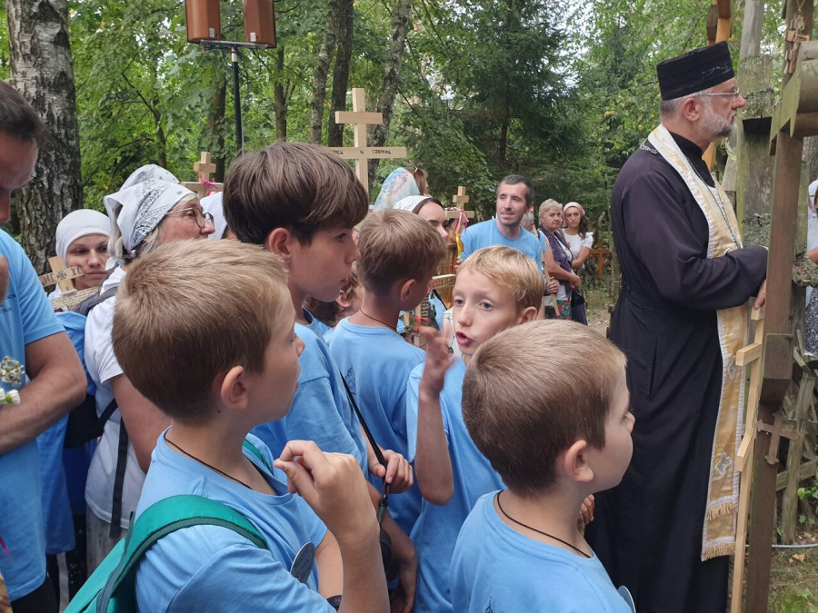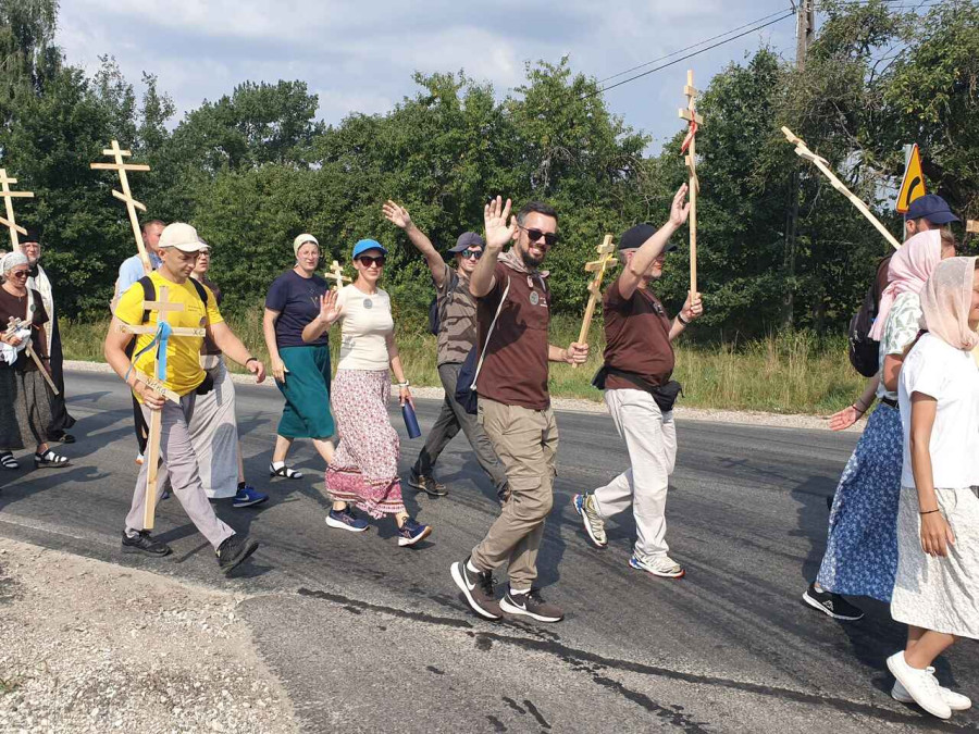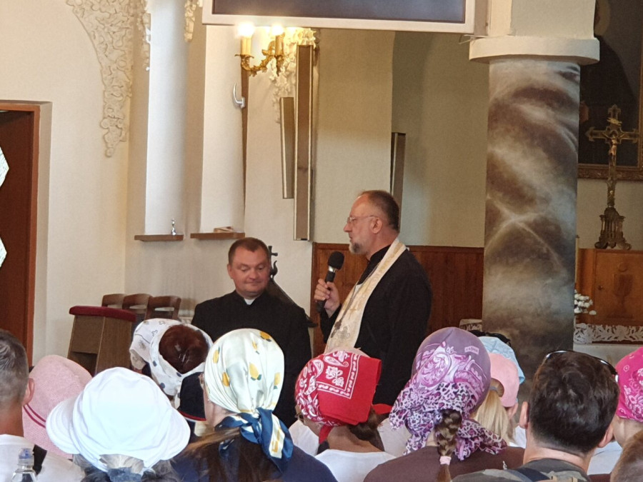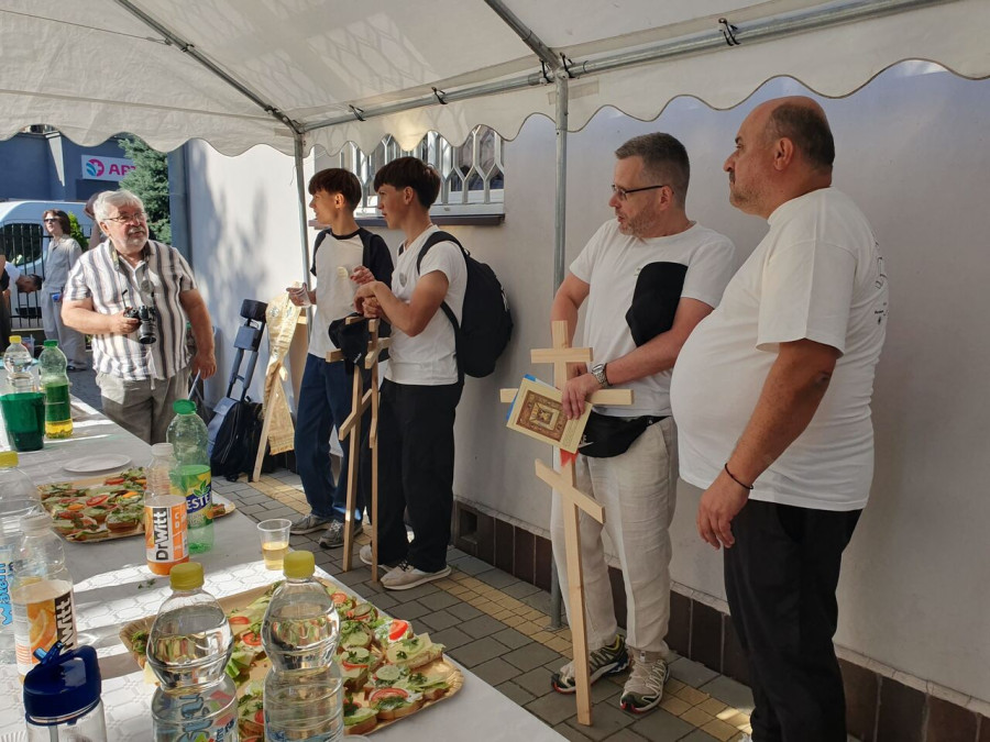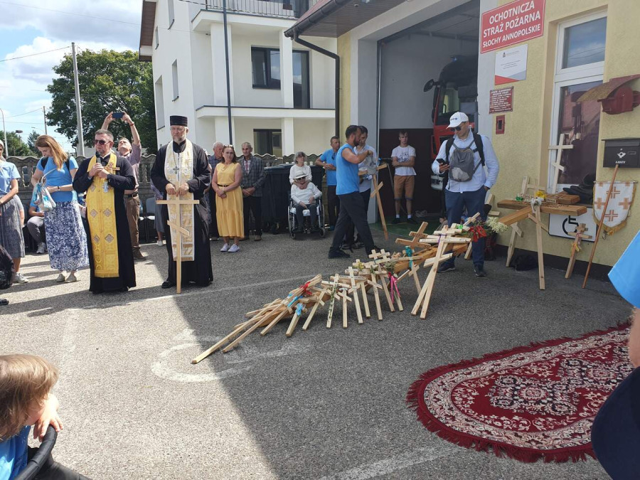 Na drewnianym krzyżu pierwsze słowa modlitwy, które towarzyszą nam przez całe życie, każdego dnia i są znakiem naszej wiary, jestestwa, tego – kim jesteśmy. Będziemy je wspólnie i osobiście rozważali w czasie tegorocznej Pielgrzymki, ofiarowanej pamięci Ojców Cerkwi, którzy w trakcie I Soboru Powszechnego opracowali pierwszą część naszego Wyznania Wiary. Czując na sobie błogosławiące gesty Chrystusa i świętych z ikon w cerkwi św. Apostołów Piotra i Pawła w Wołominie, skąd tradycyjnie wyrusza warszawska Pielgrzymka, i błogosławieństwo Jego Eminencji Wielce Błogosławionego Sawy, Metropolity Warszawskiego i całej Polski – ruszamy w drogę. Trasa – znajoma, te same miejsca, gdzie celebrowane są św. Liturgie, te same miejsca noclegów. Wielu znajomych i przyjaciół wokół, dobrze znane słowa modlitw i pątniczych pieśni. A jednak każda Pielgrzymka jest inna. Bo my sami zmieniamy się – niesiemy inny bagaż trosk i duchowych rozterek, nowe intencje czy – uwierające jak niewygodne buty – grzechy. W relacjach z Pielgrzymek widzimy najczęściej radosną gromadę pątników z krzyżami w dłoniach i na ramionach oraz malownicze mazowiecko – podlaskie pejzaże. Zobaczmy teraz szczegóły pątniczego wędrowania ku Chrystusowi – asfaltowe kilometry dróg, liczne, choć drobne „tradycyjne” momenty – na które się czeka, ludzi, którzy goszczą pielgrzymów całym sercem i tych, którzy pokrzepiają ich po drodze uśmiechami i pozdrowieniem Szczęść Boże! Szczegóły ważne dla pątników i składające się na pięć dnia w roku, na które czeka się – cały rok!