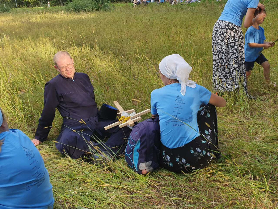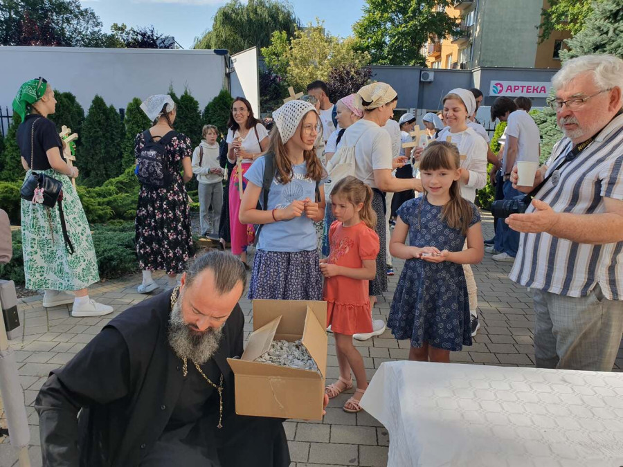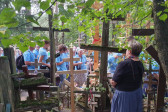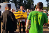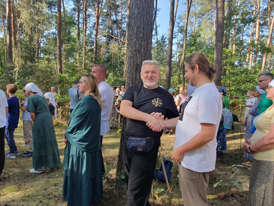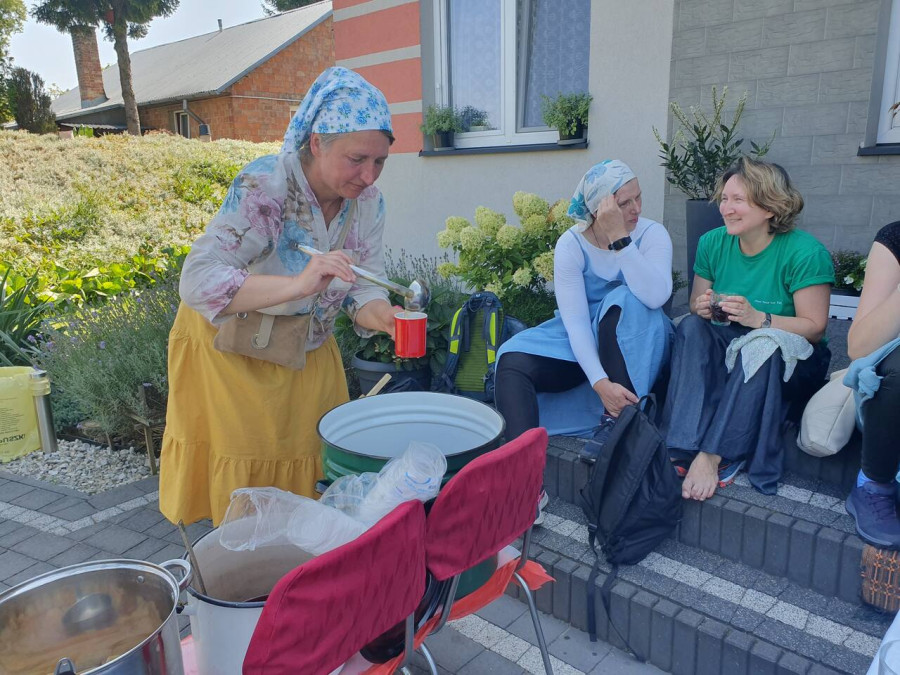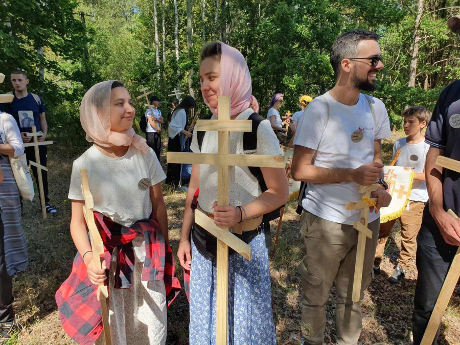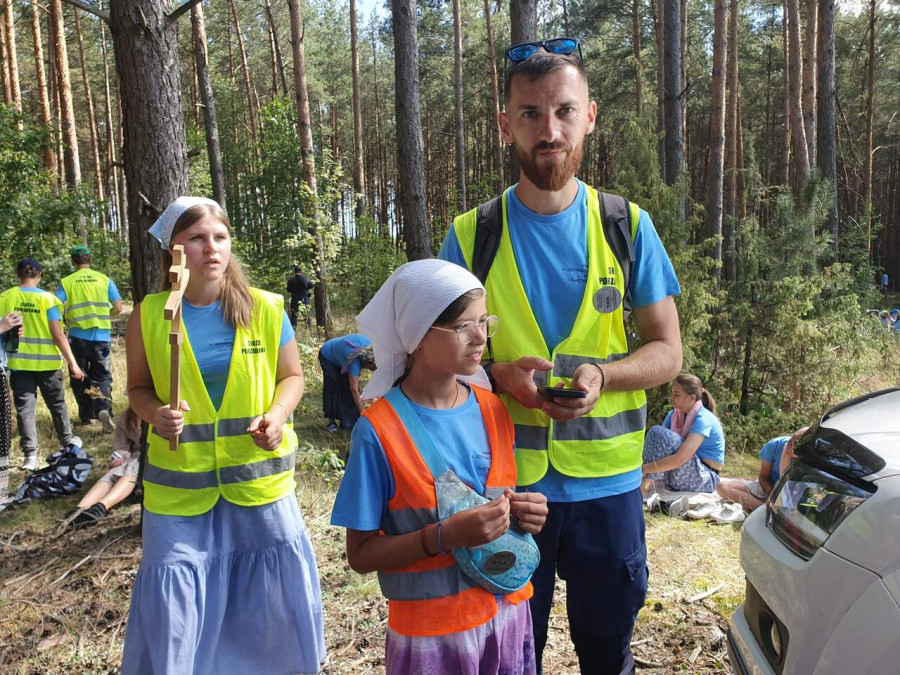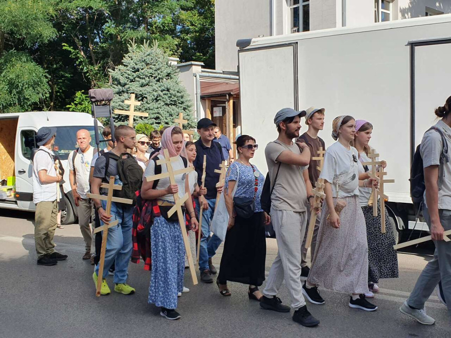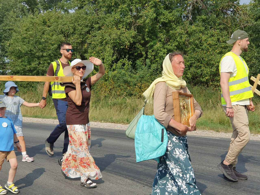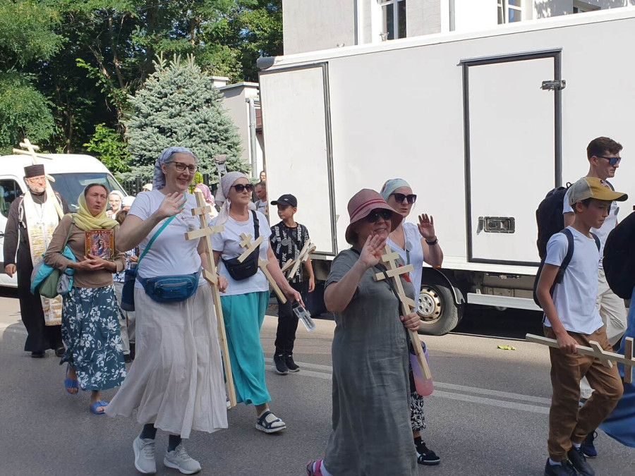 Na drewnianym krzyżu pierwsze słowa modlitwy, które towarzyszą nam przez całe życie, każdego dnia i są znakiem naszej wiary, jestestwa, tego – kim jesteśmy. Będziemy je wspólnie i osobiście rozważali w czasie tegorocznej Pielgrzymki, ofiarowanej pamięci Ojców Cerkwi, którzy w trakcie I Soboru Powszechnego opracowali pierwszą część naszego Wyznania Wiary. Czując na sobie błogosławiące gesty Chrystusa i świętych z ikon w cerkwi św. Apostołów Piotra i Pawła w Wołominie, skąd tradycyjnie wyrusza warszawska Pielgrzymka, i błogosławieństwo Jego Eminencji Wielce Błogosławionego Sawy, Metropolity Warszawskiego i całej Polski – ruszamy w drogę. Trasa – znajoma, te same miejsca, gdzie celebrowane są św. Liturgie, te same miejsca noclegów. Wielu znajomych i przyjaciół wokół, dobrze znane słowa modlitw i pątniczych pieśni. A jednak każda Pielgrzymka jest inna. Bo my sami zmieniamy się – niesiemy inny bagaż trosk i duchowych rozterek, nowe intencje czy – uwierające jak niewygodne buty – grzechy. W relacjach z Pielgrzymek widzimy najczęściej radosną gromadę pątników z krzyżami w dłoniach i na ramionach oraz malownicze mazowiecko – podlaskie pejzaże. Zobaczmy teraz szczegóły pątniczego wędrowania ku Chrystusowi – asfaltowe kilometry dróg, liczne, choć drobne „tradycyjne” momenty – na które się czeka, ludzi, którzy goszczą pielgrzymów całym sercem i tych, którzy pokrzepiają ich po drodze uśmiechami i pozdrowieniem Szczęść Boże! Szczegóły ważne dla pątników i składające się na pięć dnia w roku, na które czeka się – cały rok!