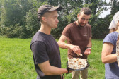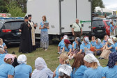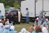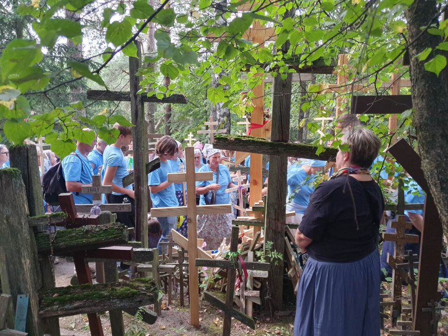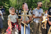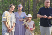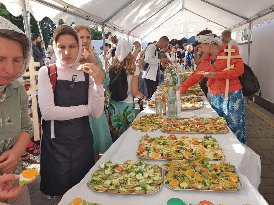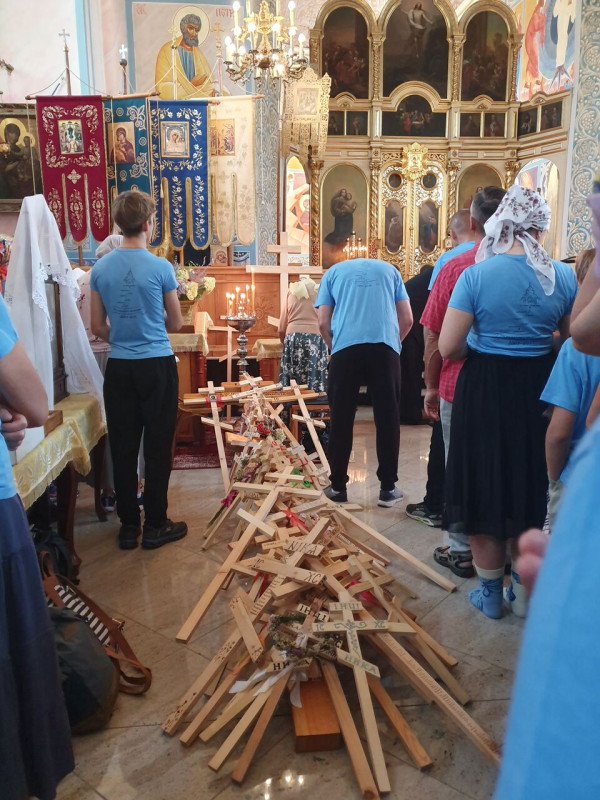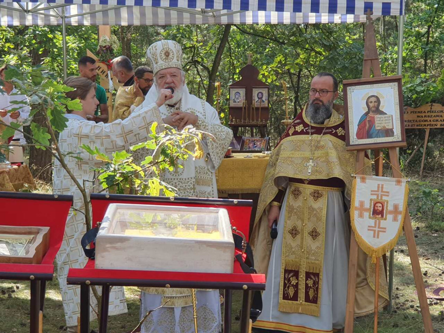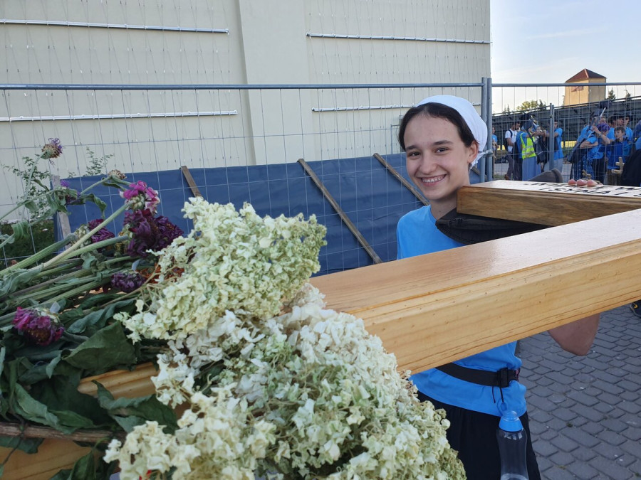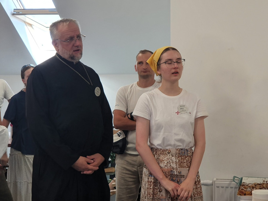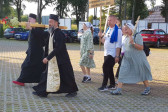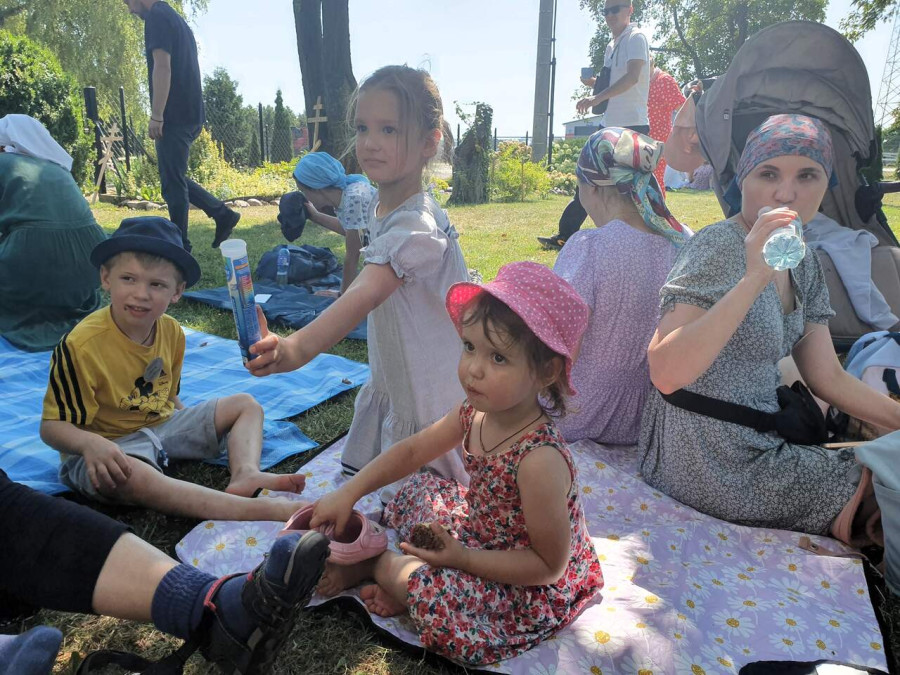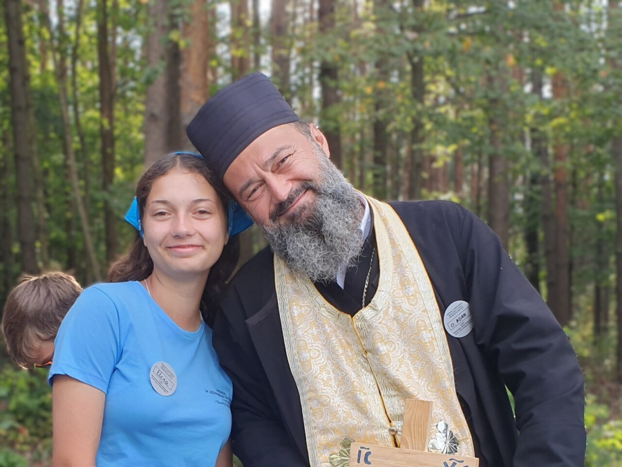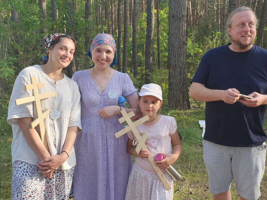 Na drewnianym krzyżu pierwsze słowa modlitwy, które towarzyszą nam przez całe życie, każdego dnia i są znakiem naszej wiary, jestestwa, tego – kim jesteśmy. Będziemy je wspólnie i osobiście rozważali w czasie tegorocznej Pielgrzymki, ofiarowanej pamięci Ojców Cerkwi, którzy w trakcie I Soboru Powszechnego opracowali pierwszą część naszego Wyznania Wiary. Czując na sobie błogosławiące gesty Chrystusa i świętych z ikon w cerkwi św. Apostołów Piotra i Pawła w Wołominie, skąd tradycyjnie wyrusza warszawska Pielgrzymka, i błogosławieństwo Jego Eminencji Wielce Błogosławionego Sawy, Metropolity Warszawskiego i całej Polski – ruszamy w drogę. Trasa – znajoma, te same miejsca, gdzie celebrowane są św. Liturgie, te same miejsca noclegów. Wielu znajomych i przyjaciół wokół, dobrze znane słowa modlitw i pątniczych pieśni. A jednak każda Pielgrzymka jest inna. Bo my sami zmieniamy się – niesiemy inny bagaż trosk i duchowych rozterek, nowe intencje czy – uwierające jak niewygodne buty – grzechy. W relacjach z Pielgrzymek widzimy najczęściej radosną gromadę pątników z krzyżami w dłoniach i na ramionach oraz malownicze mazowiecko – podlaskie pejzaże. Zobaczmy teraz szczegóły pątniczego wędrowania ku Chrystusowi – asfaltowe kilometry dróg, liczne, choć drobne „tradycyjne” momenty – na które się czeka, ludzi, którzy goszczą pielgrzymów całym sercem i tych, którzy pokrzepiają ich po drodze uśmiechami i pozdrowieniem Szczęść Boże! Szczegóły ważne dla pątników i składające się na pięć dnia w roku, na które czeka się – cały rok!