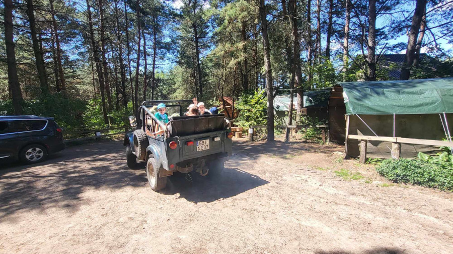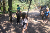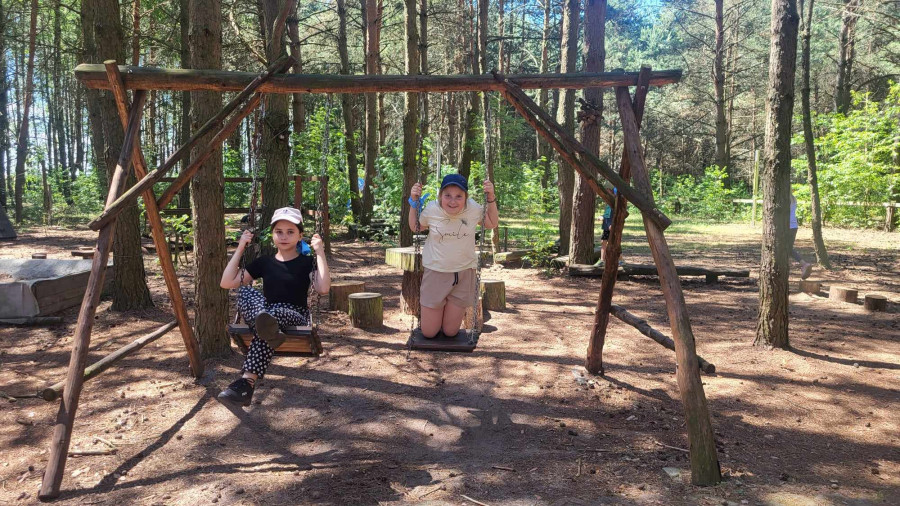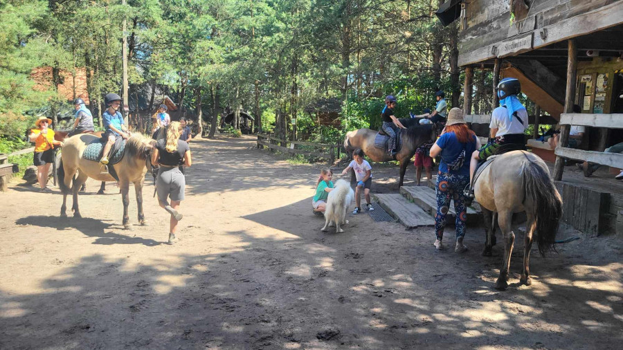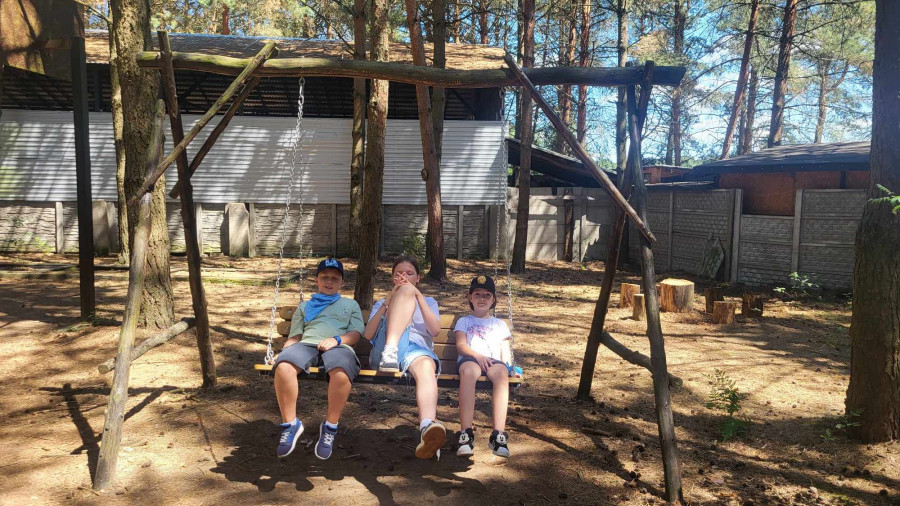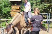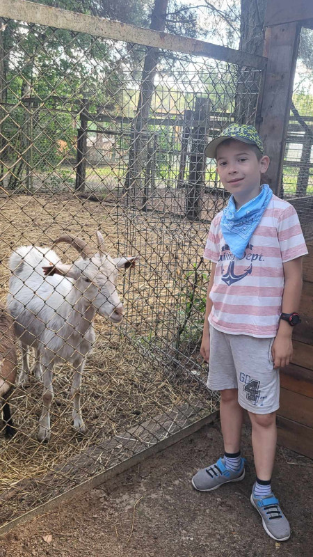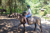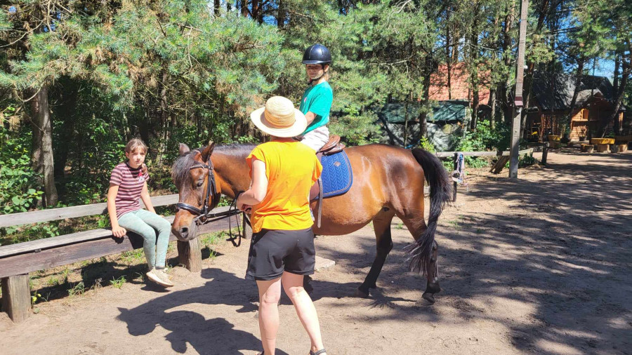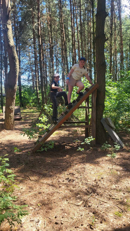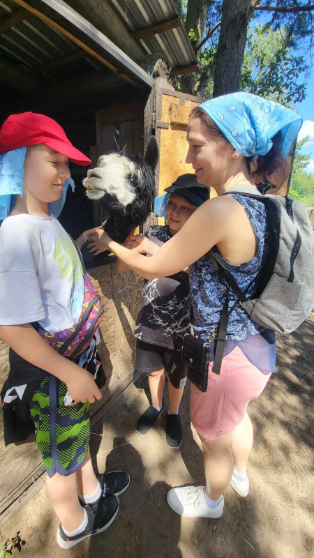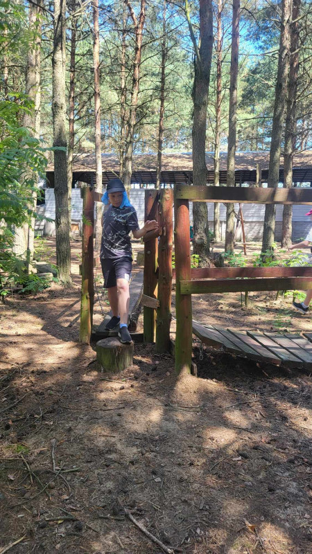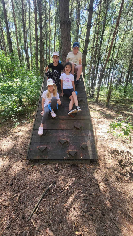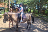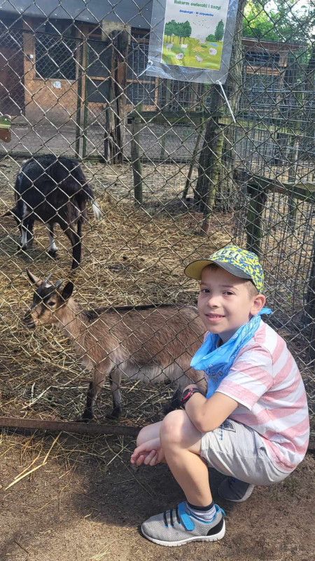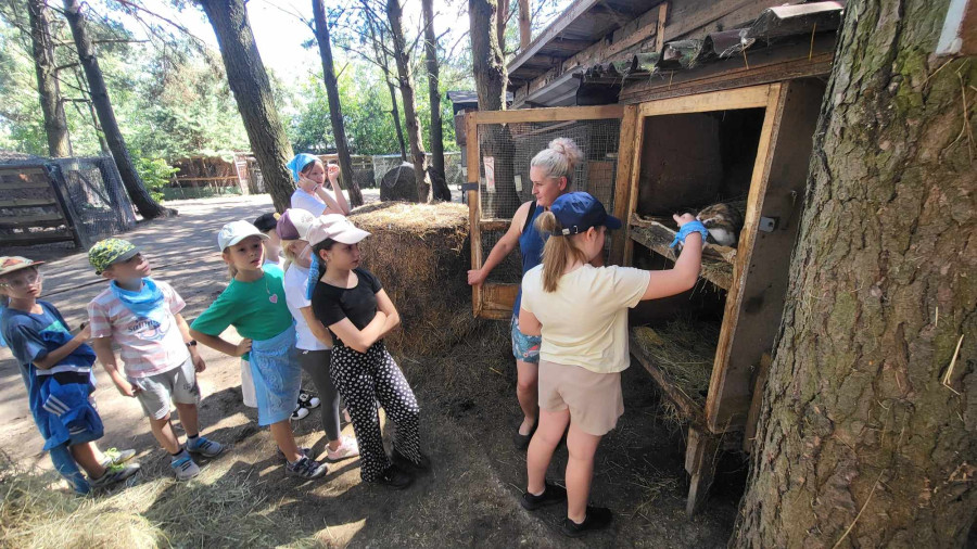 Tu zwiedziliśmy Mini ZOO, gdzie można było pogłaskać niektórych mieszkańców, kolejnym punktem była jazda na koniach, spokojne zwierzęta wiozły nas na spacer po okolicznym pięknym terenie.  Potem była szybsza jazda terenowymi pojazdami a nasz pobyt w Konnym Zakątku zakończyliśmy meczem siatkówki na placu zabaw
