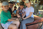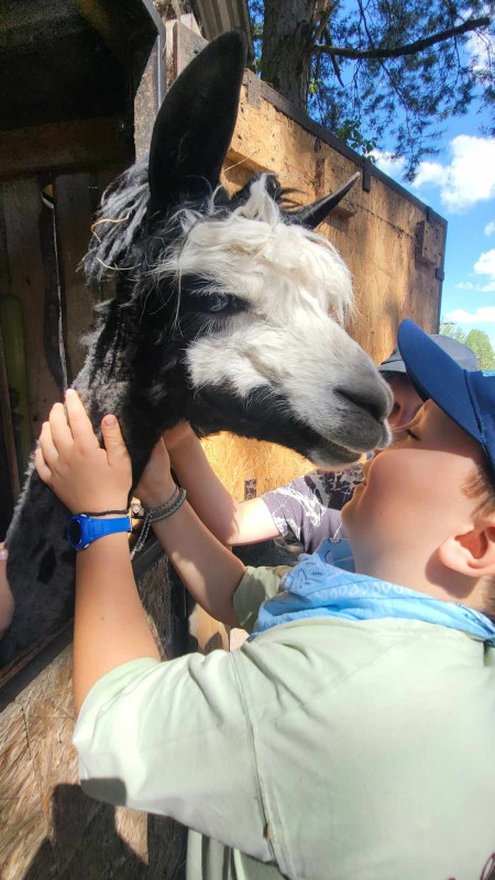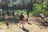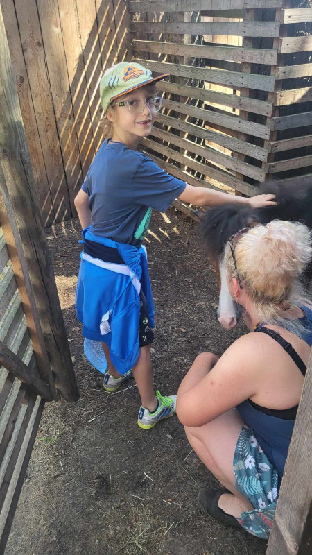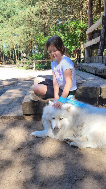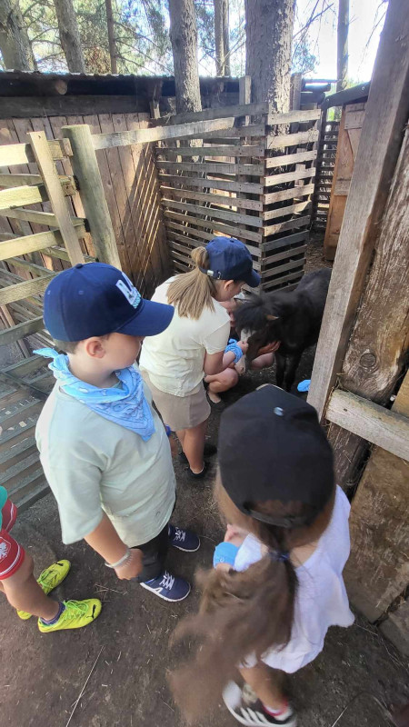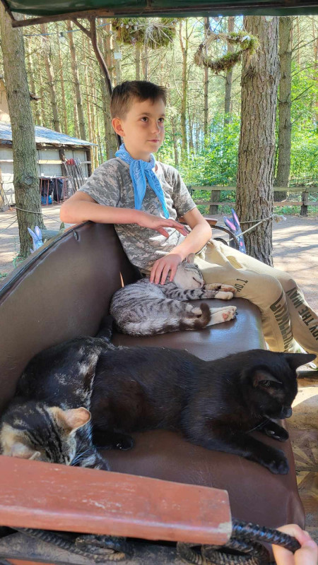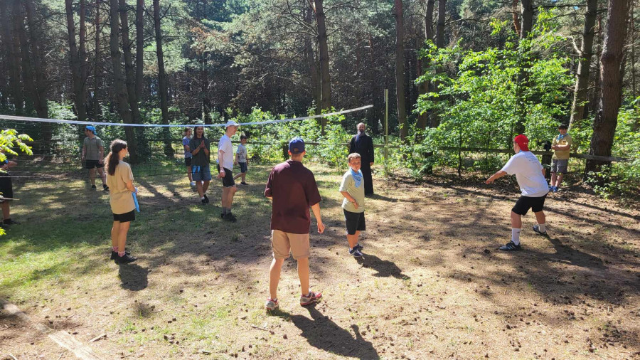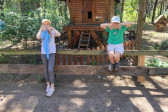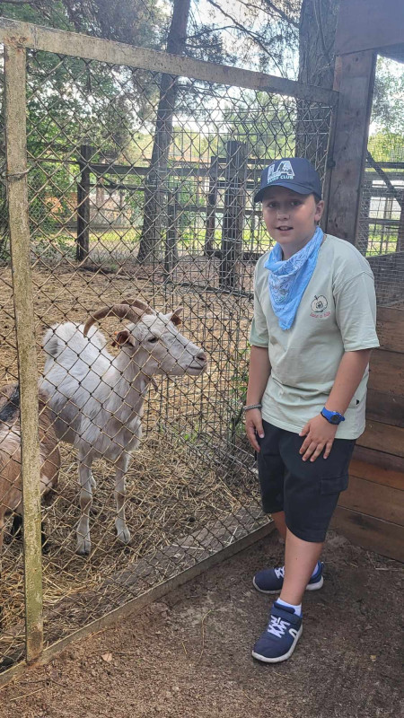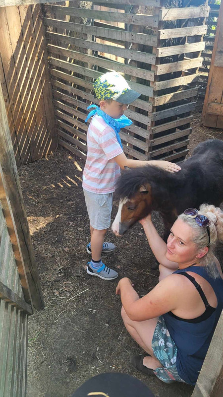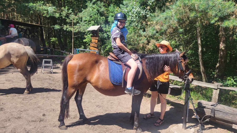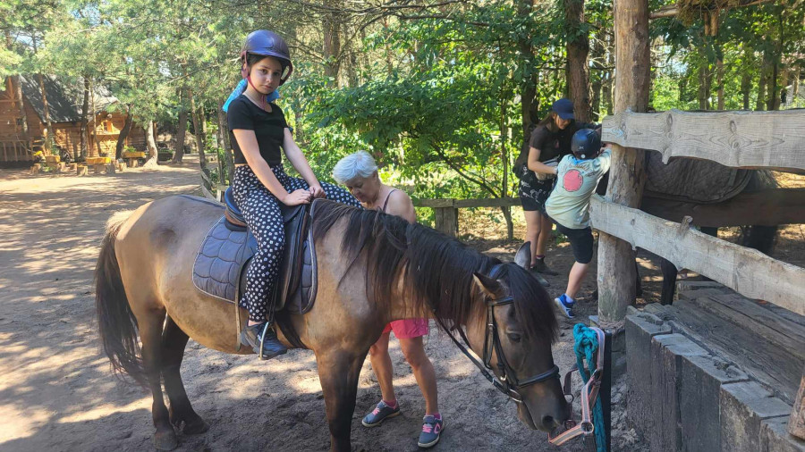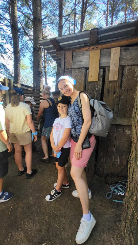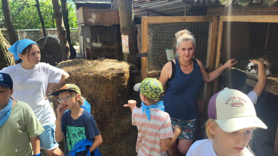 Tu zwiedziliśmy Mini ZOO, gdzie można było pogłaskać niektórych mieszkańców, kolejnym punktem była jazda na koniach, spokojne zwierzęta wiozły nas na spacer po okolicznym pięknym terenie.  Potem była szybsza jazda terenowymi pojazdami a nasz pobyt w Konnym Zakątku zakończyliśmy meczem siatkówki na placu zabaw
