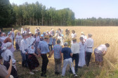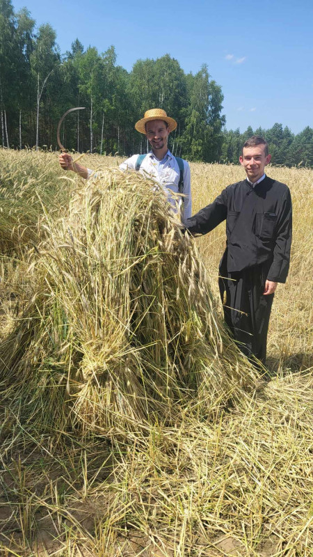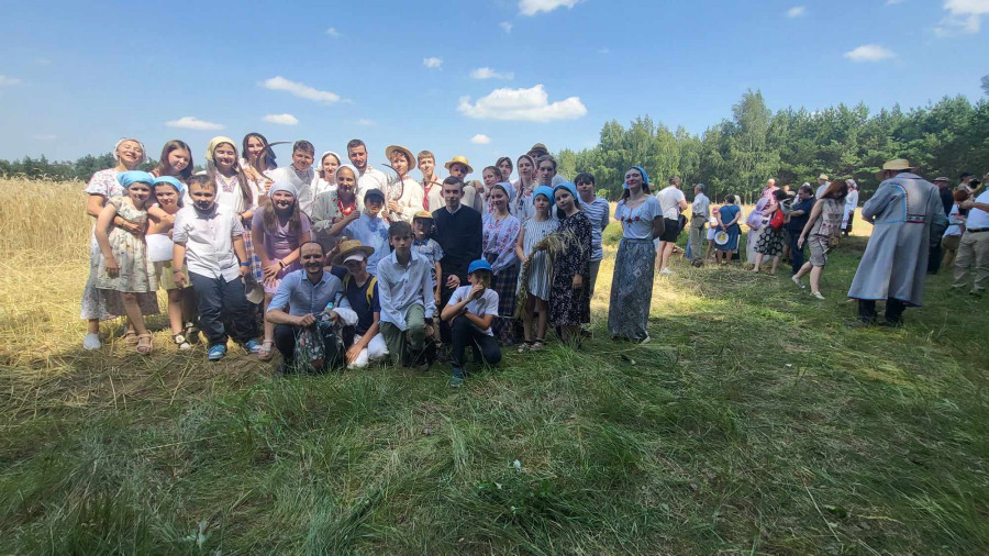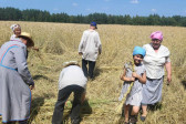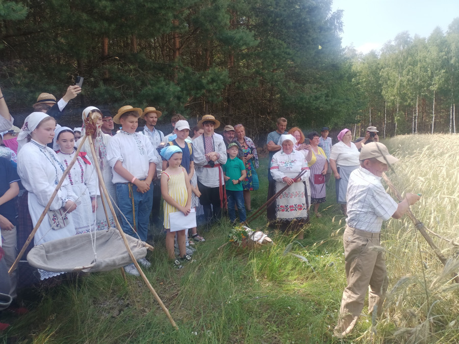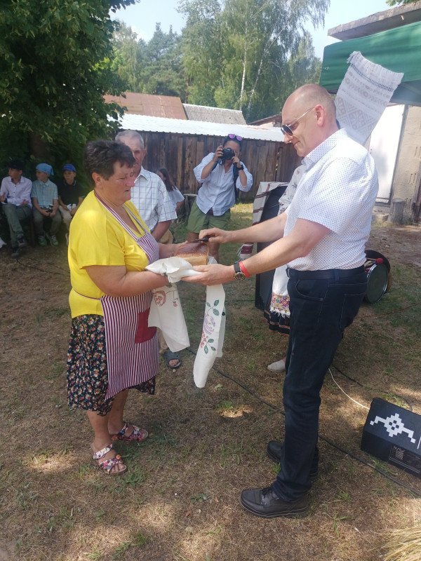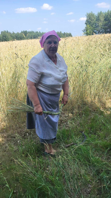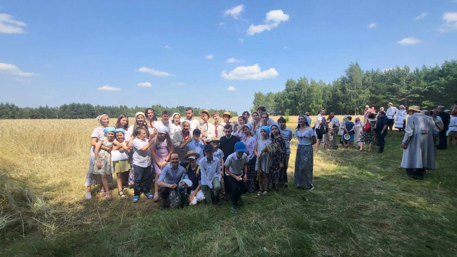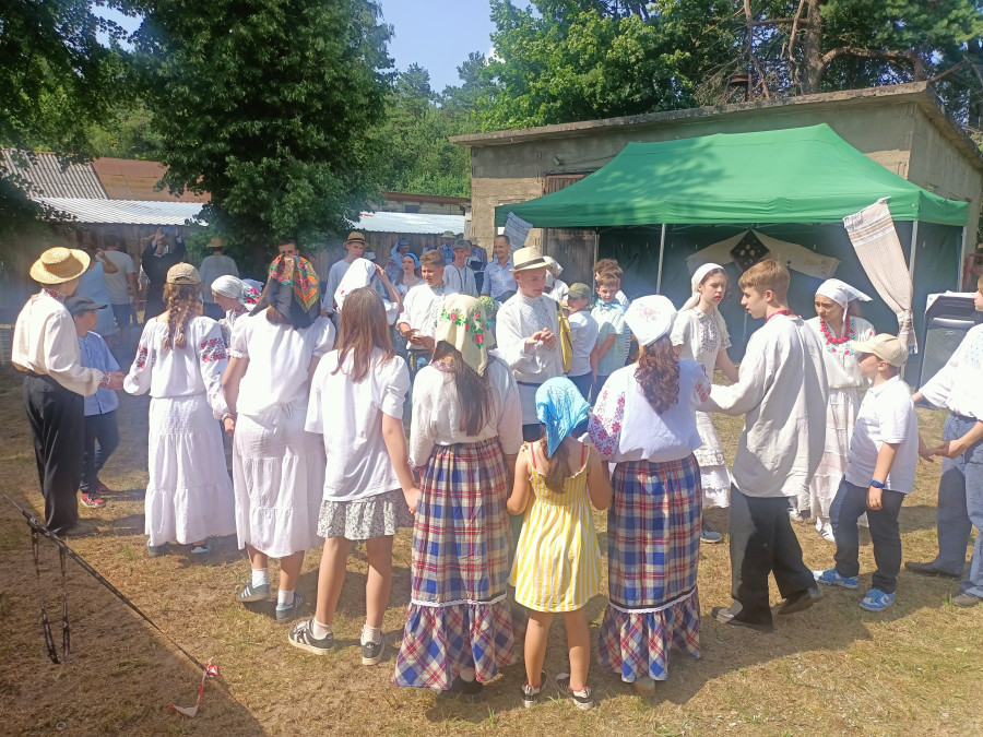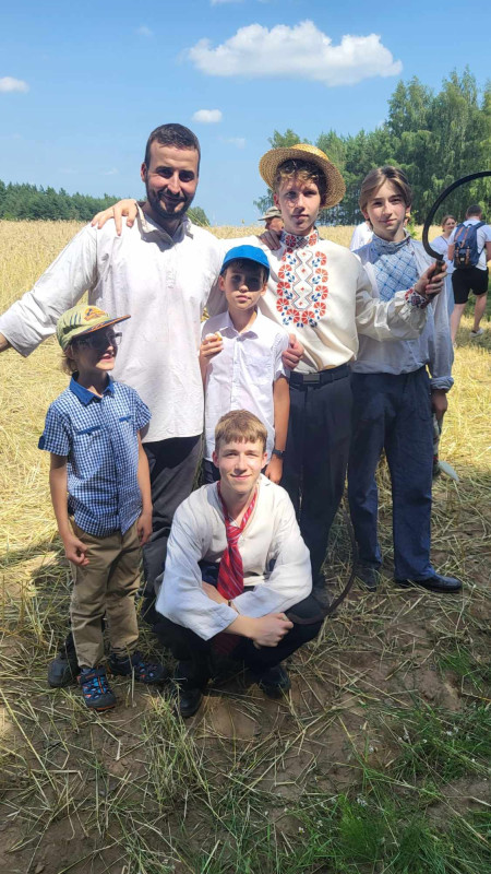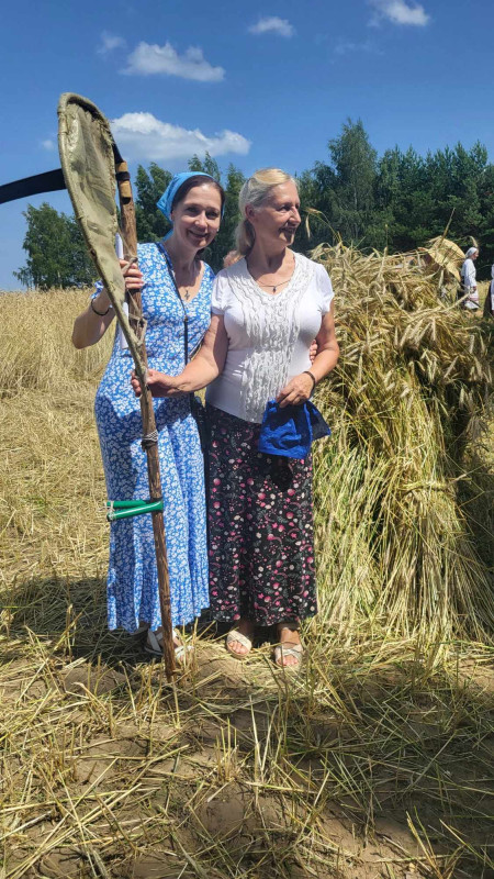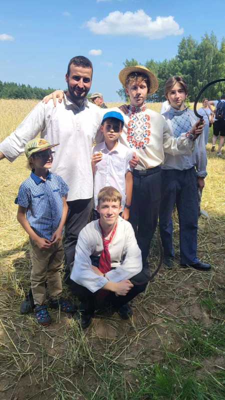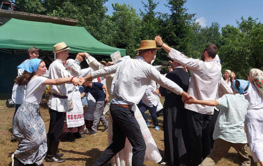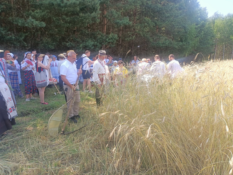 Następnie udaliśmy się do pobliskich Toporek na długo wyczekiwaną Perepelicę. Do tego wydarzenia nasze dzieci i młodzież przygotowywali się przez cały ubiegły tydzień. Na polu, przy pięknych żniwnych pieśniach, żniwiarze kosami kosili żyto a młodzież sierpami. Sceny i śpiewy przeniosły nas wiele lat wstecz kiedy to na polach przy żniwach zawsze rozbrzmiewały piękne pieśni....
