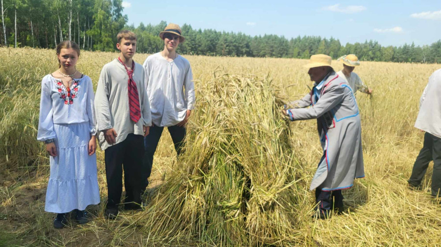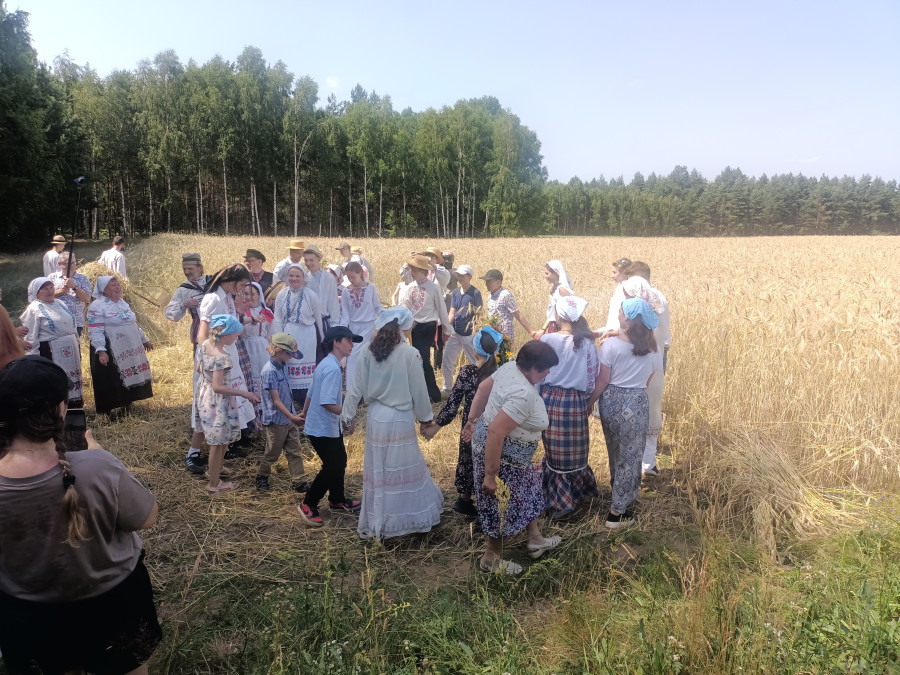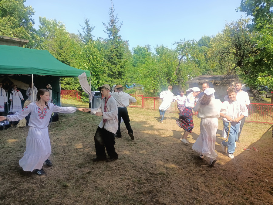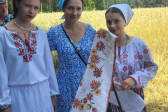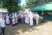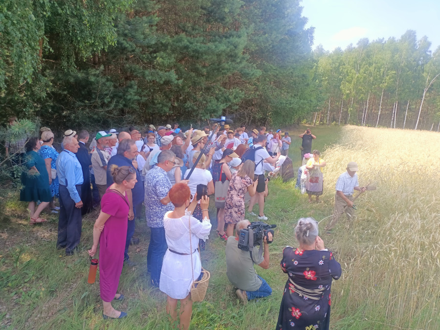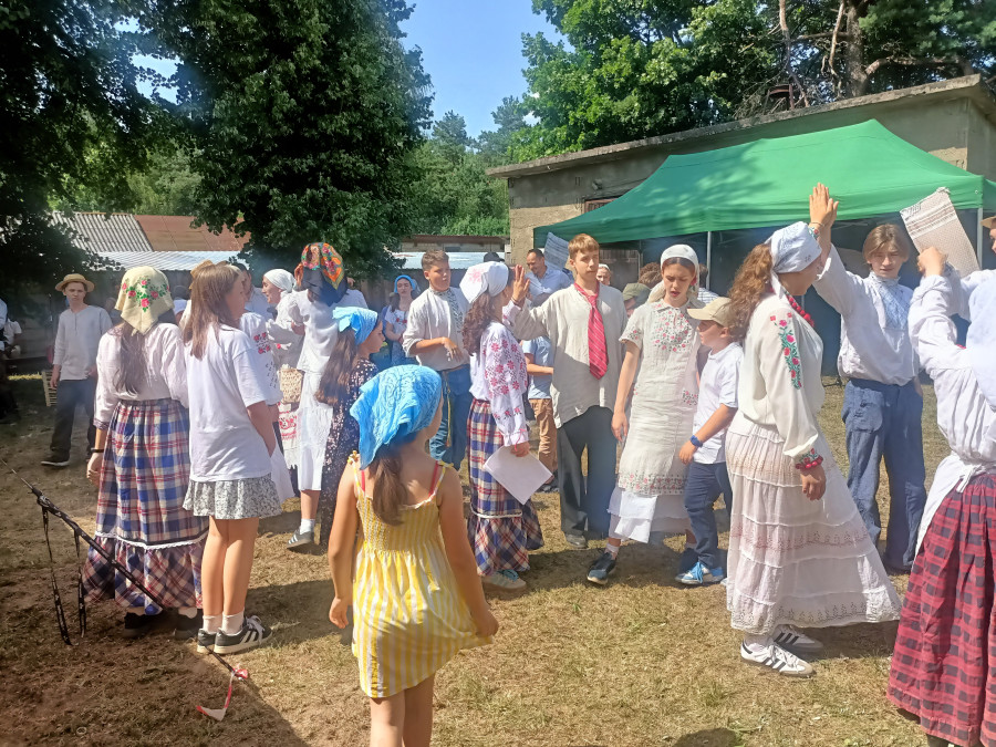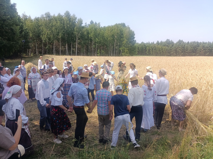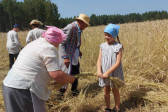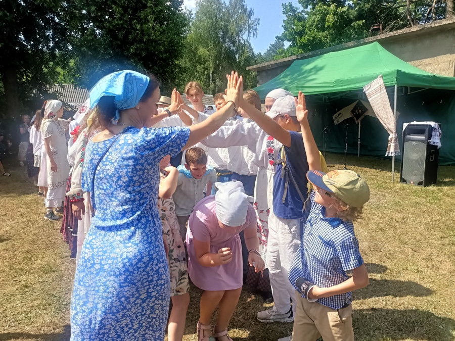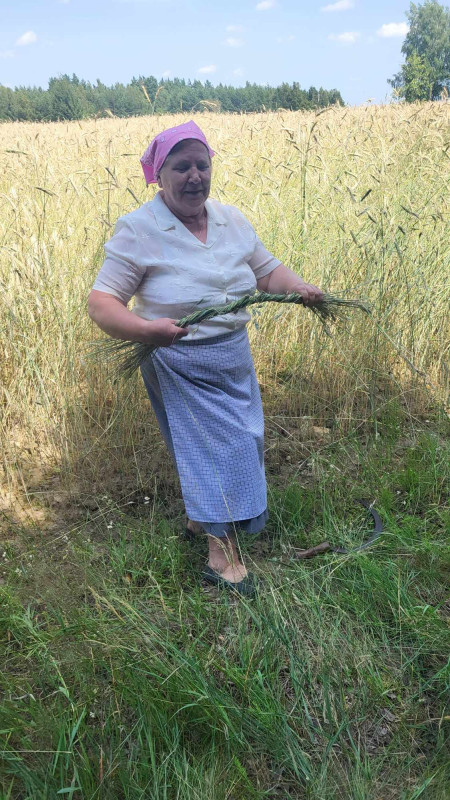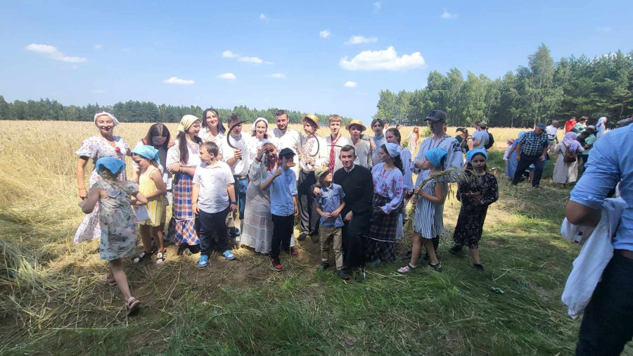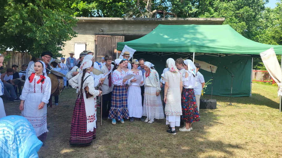 Następnie udaliśmy się do pobliskich Toporek na długo wyczekiwaną Perepelicę. Do tego wydarzenia nasze dzieci i młodzież przygotowywali się przez cały ubiegły tydzień. Na polu, przy pięknych żniwnych pieśniach, żniwiarze kosami kosili żyto a młodzież sierpami. Sceny i śpiewy przeniosły nas wiele lat wstecz kiedy to na polach przy żniwach zawsze rozbrzmiewały piękne pieśni....