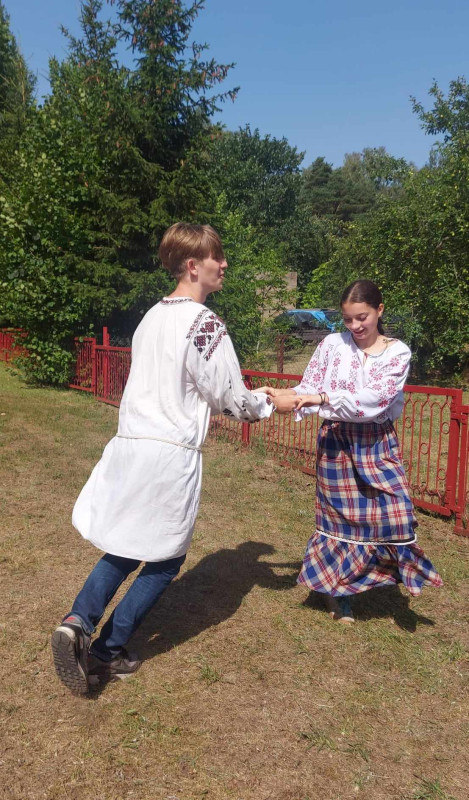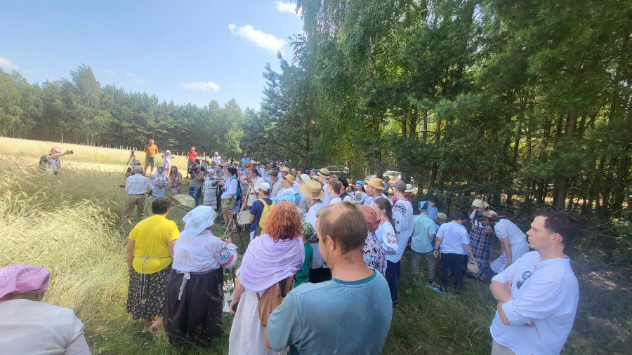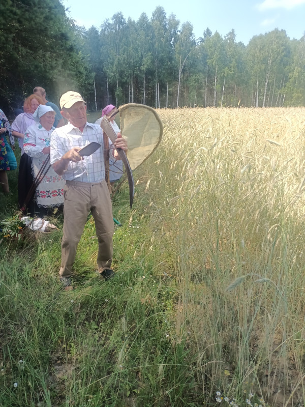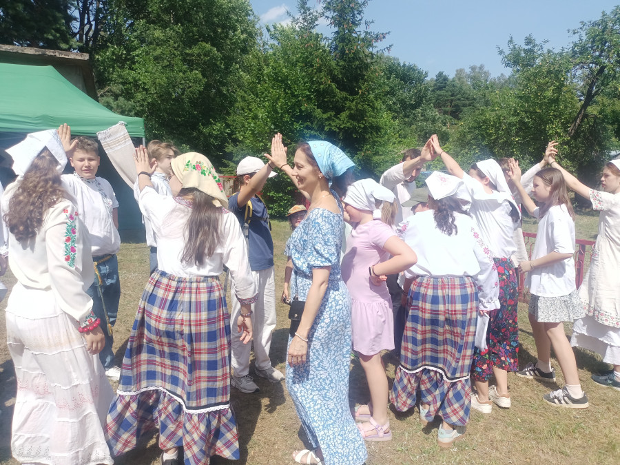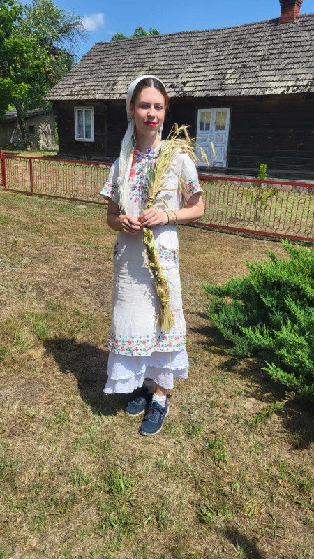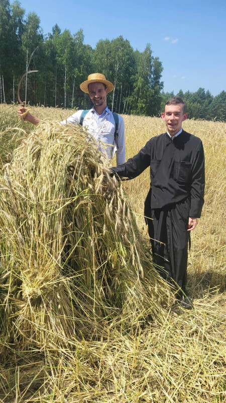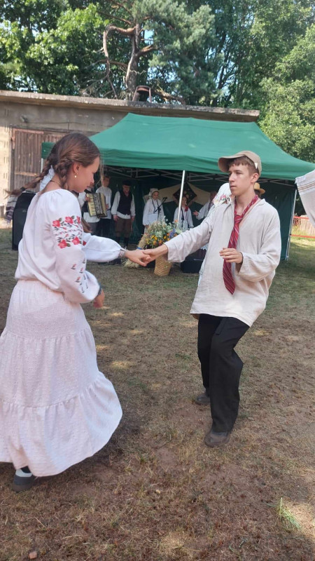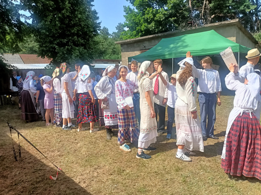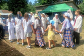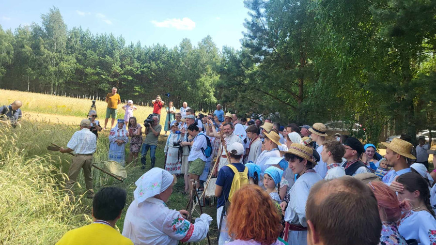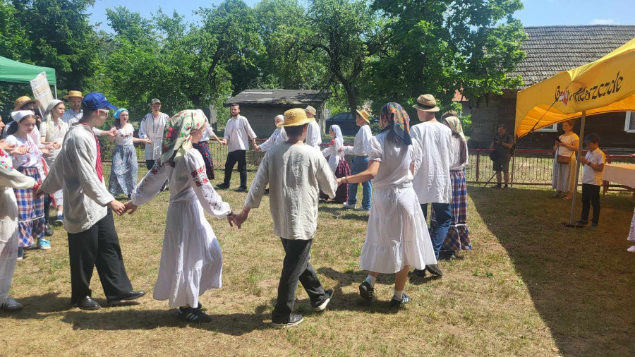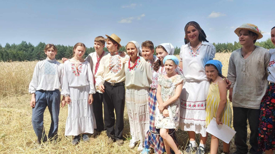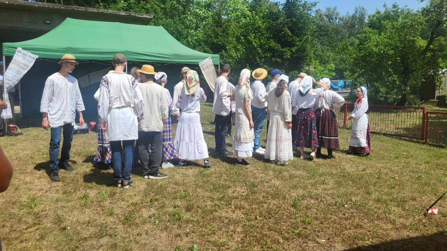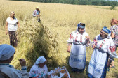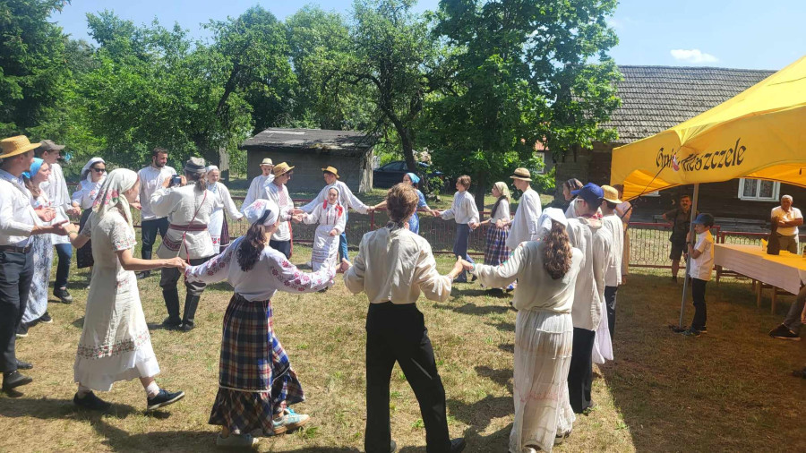 Następnie udaliśmy się do pobliskich Toporek na długo wyczekiwaną Perepelicę. Do tego wydarzenia nasze dzieci i młodzież przygotowywali się przez cały ubiegły tydzień. Na polu, przy pięknych żniwnych pieśniach, żniwiarze kosami kosili żyto a młodzież sierpami. Sceny i śpiewy przeniosły nas wiele lat wstecz kiedy to na polach przy żniwach zawsze rozbrzmiewały piękne pieśni....