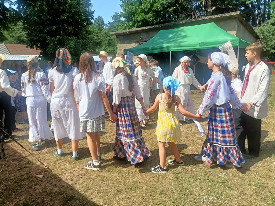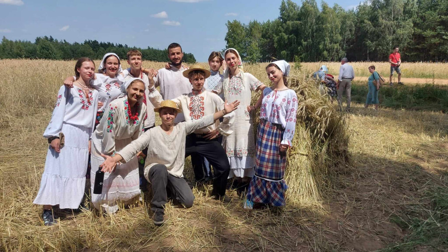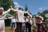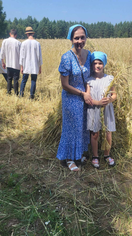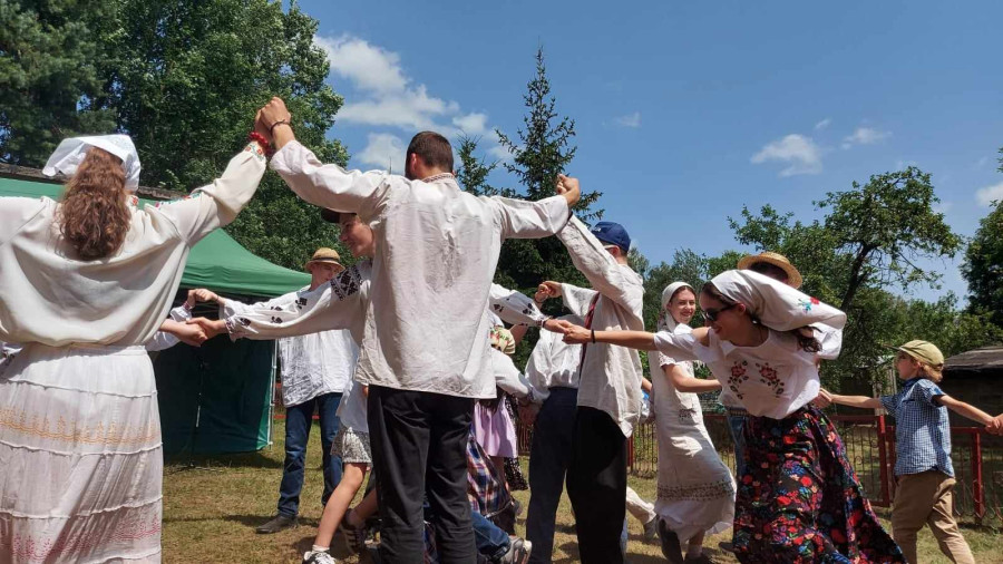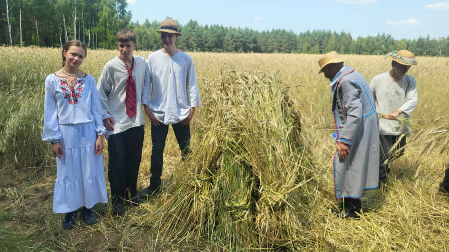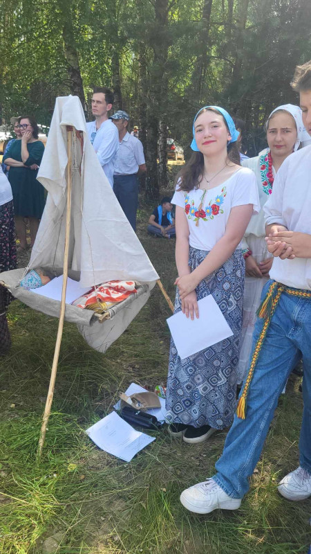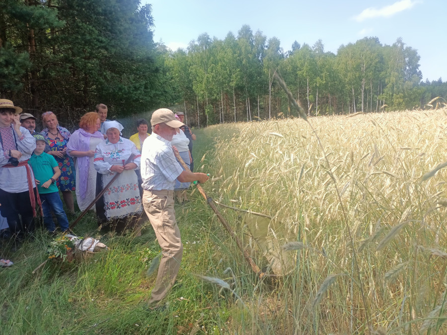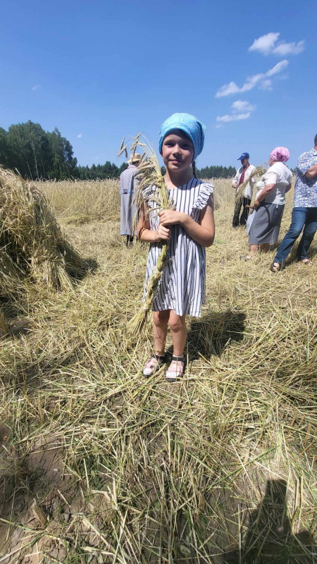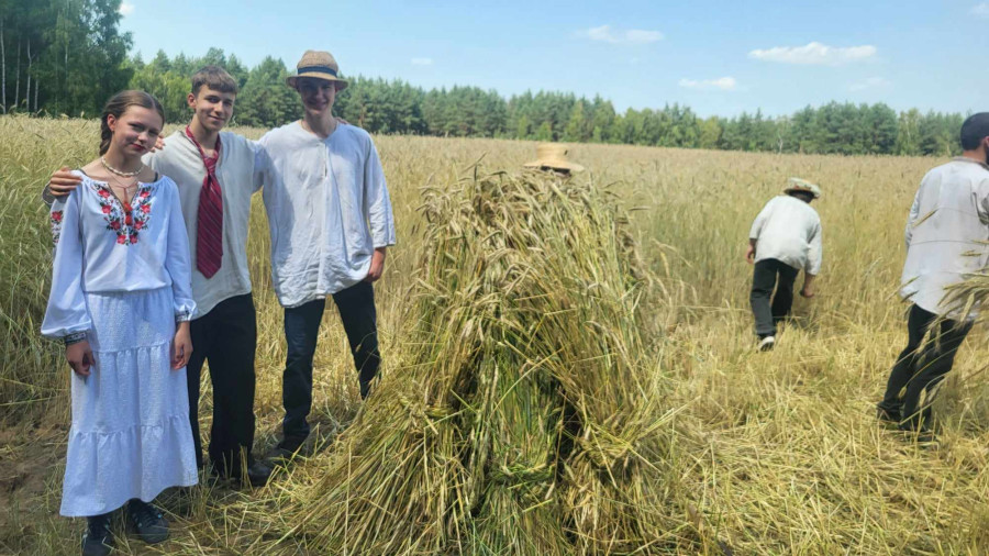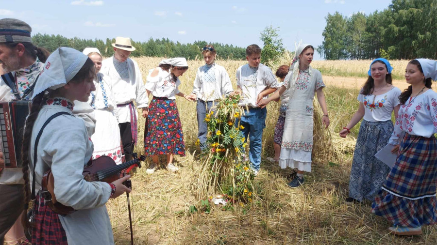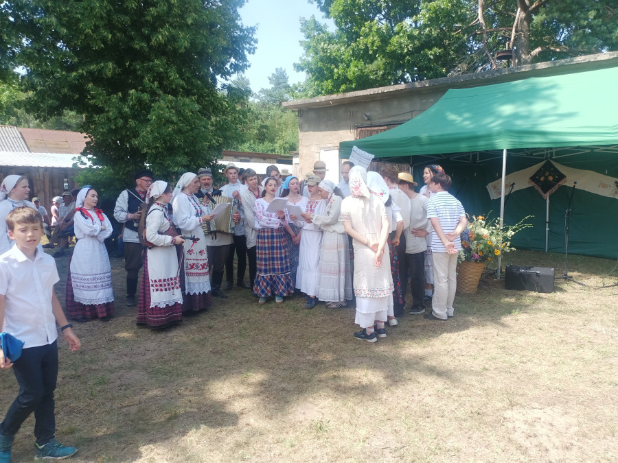 Następnie udaliśmy się do pobliskich Toporek na długo wyczekiwaną Perepelicę. Do tego wydarzenia nasze dzieci i młodzież przygotowywali się przez cały ubiegły tydzień. Na polu, przy pięknych żniwnych pieśniach, żniwiarze kosami kosili żyto a młodzież sierpami. Sceny i śpiewy przeniosły nas wiele lat wstecz kiedy to na polach przy żniwach zawsze rozbrzmiewały piękne pieśni....