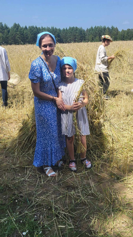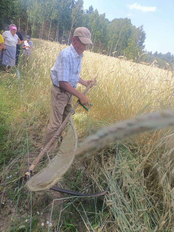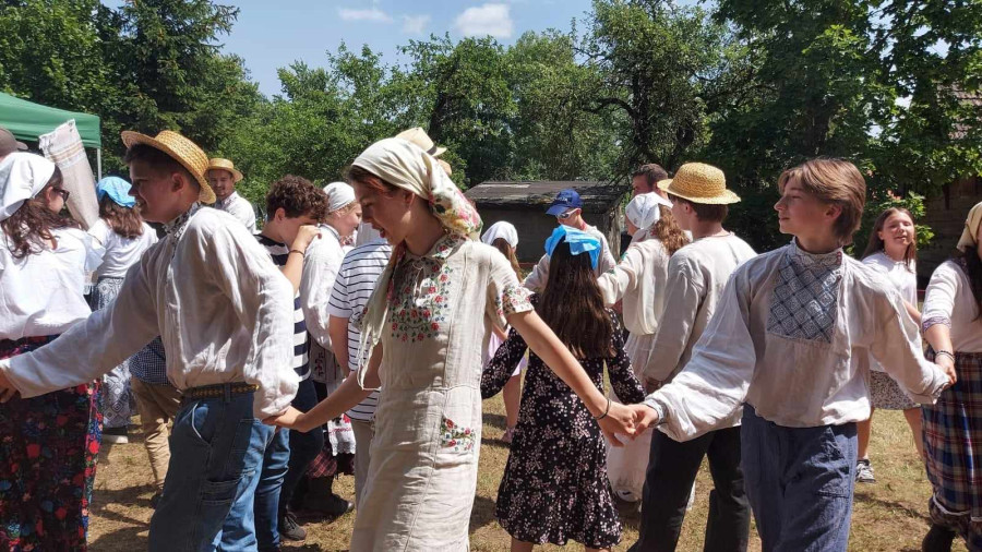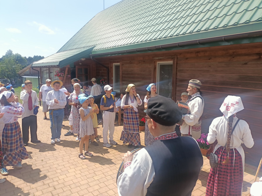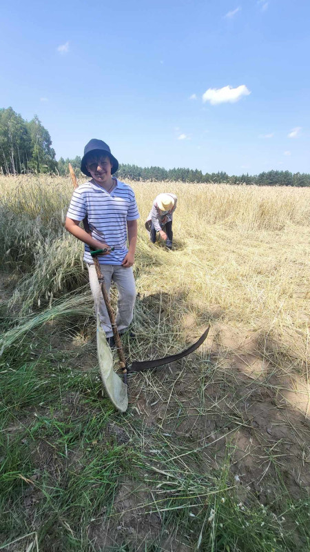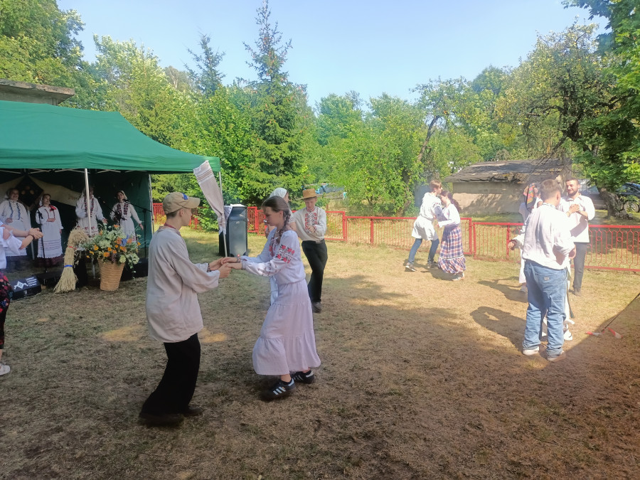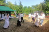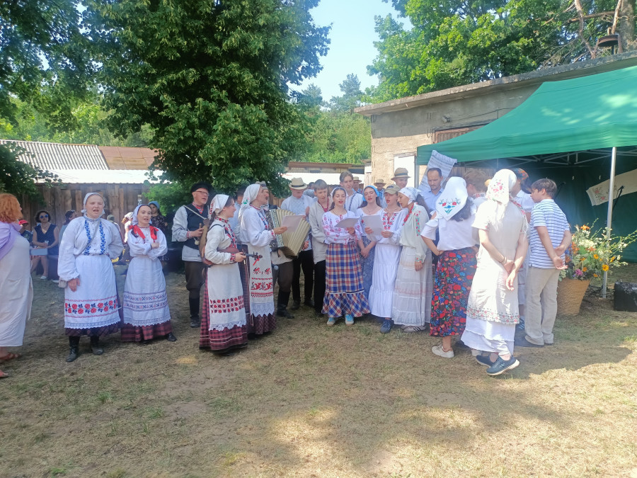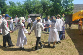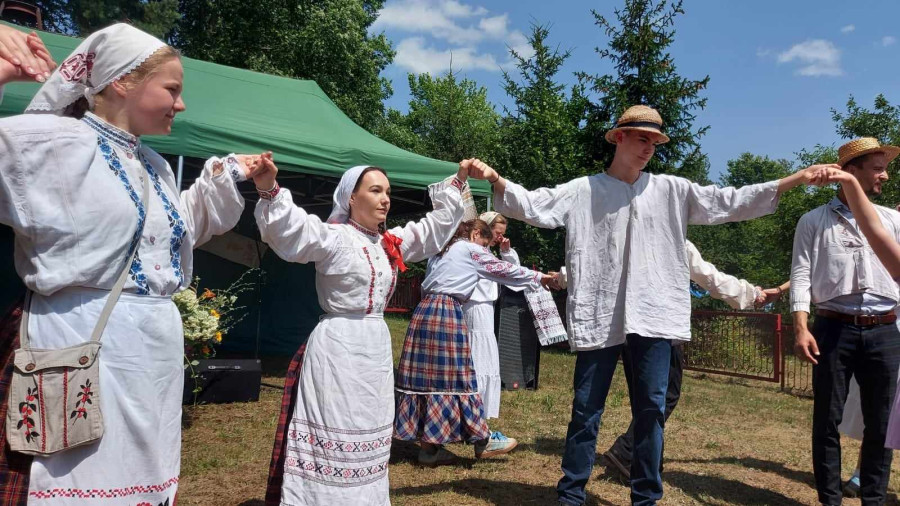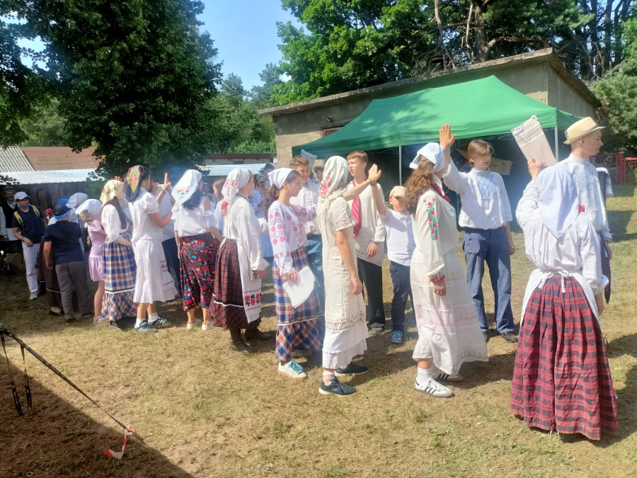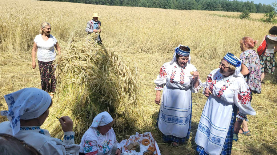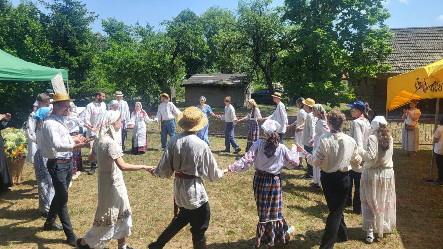 Następnie udaliśmy się do pobliskich Toporek na długo wyczekiwaną Perepelicę. Do tego wydarzenia nasze dzieci i młodzież przygotowywali się przez cały ubiegły tydzień. Na polu, przy pięknych żniwnych pieśniach, żniwiarze kosami kosili żyto a młodzież sierpami. Sceny i śpiewy przeniosły nas wiele lat wstecz kiedy to na polach przy żniwach zawsze rozbrzmiewały piękne pieśni....