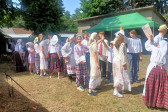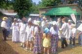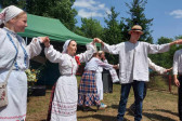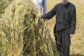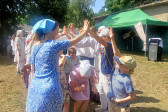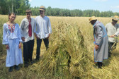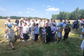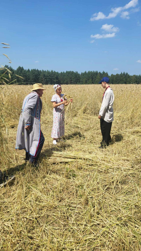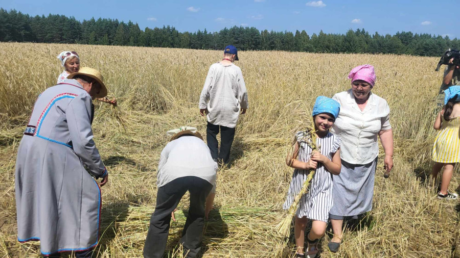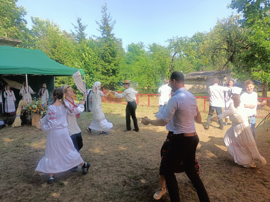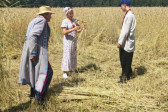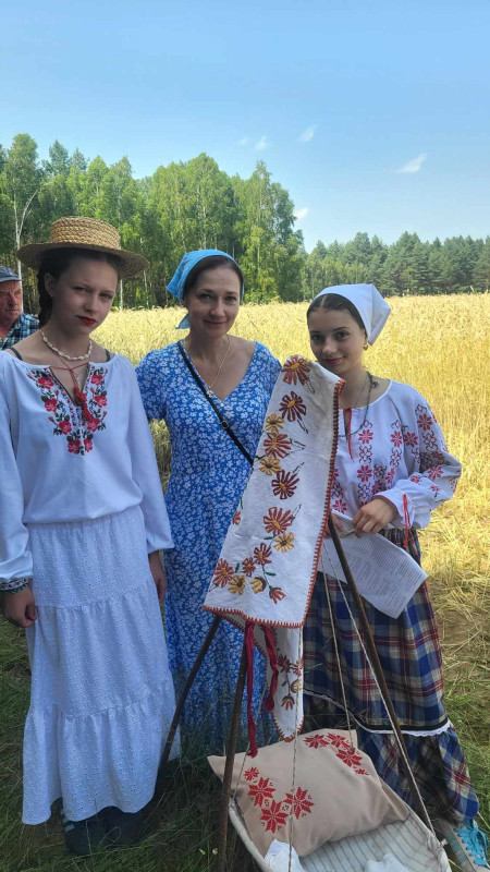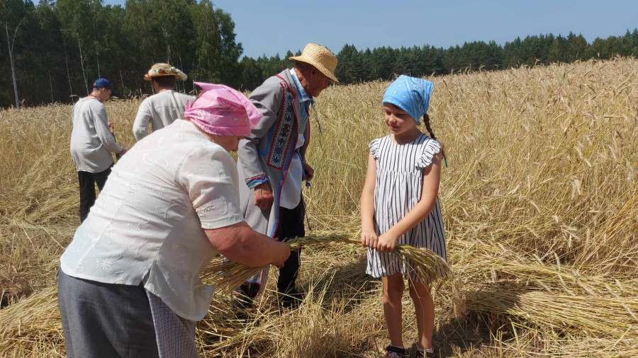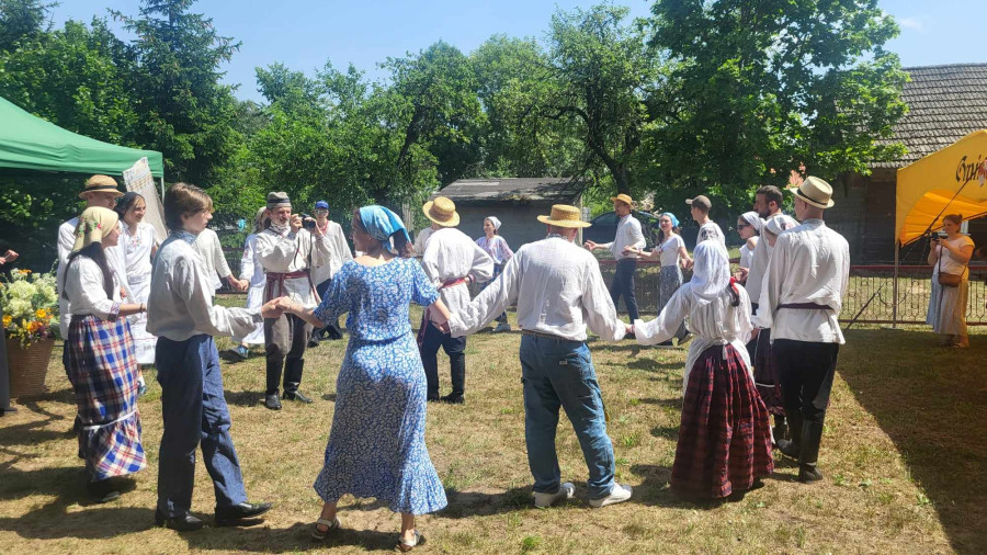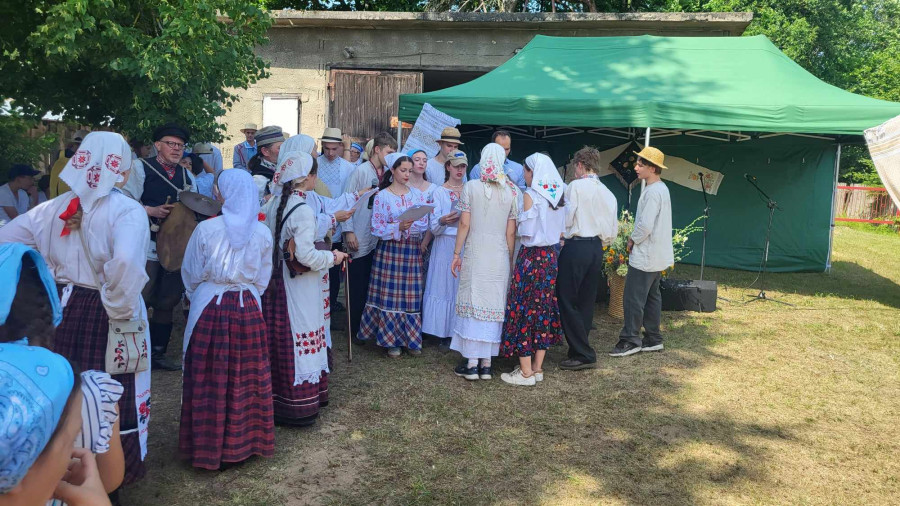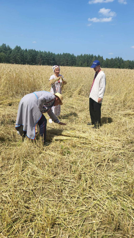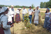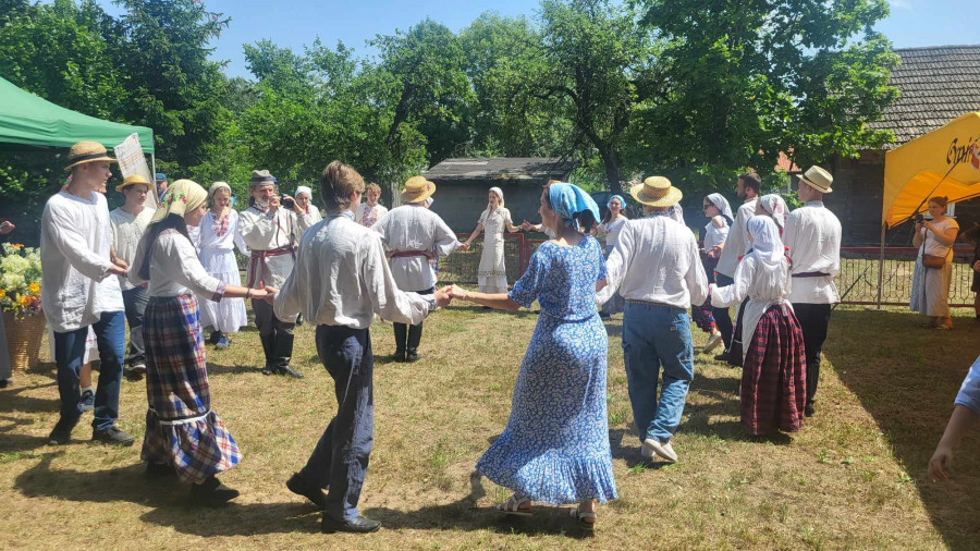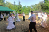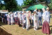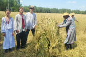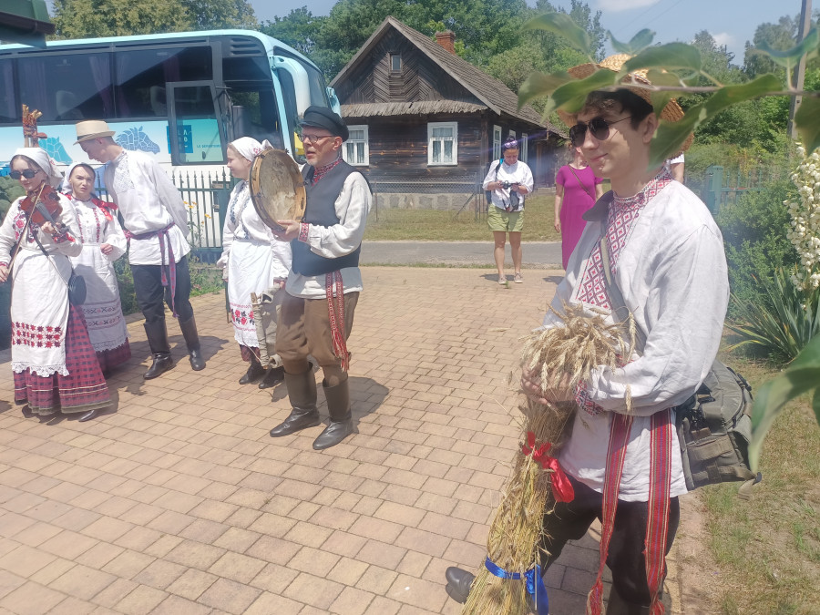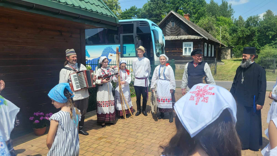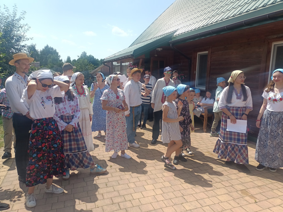 Następnie udaliśmy się do pobliskich Toporek na długo wyczekiwaną Perepelicę. Do tego wydarzenia nasze dzieci i młodzież przygotowywali się przez cały ubiegły tydzień. Na polu, przy pięknych żniwnych pieśniach, żniwiarze kosami kosili żyto a młodzież sierpami. Sceny i śpiewy przeniosły nas wiele lat wstecz kiedy to na polach przy żniwach zawsze rozbrzmiewały piękne pieśni....