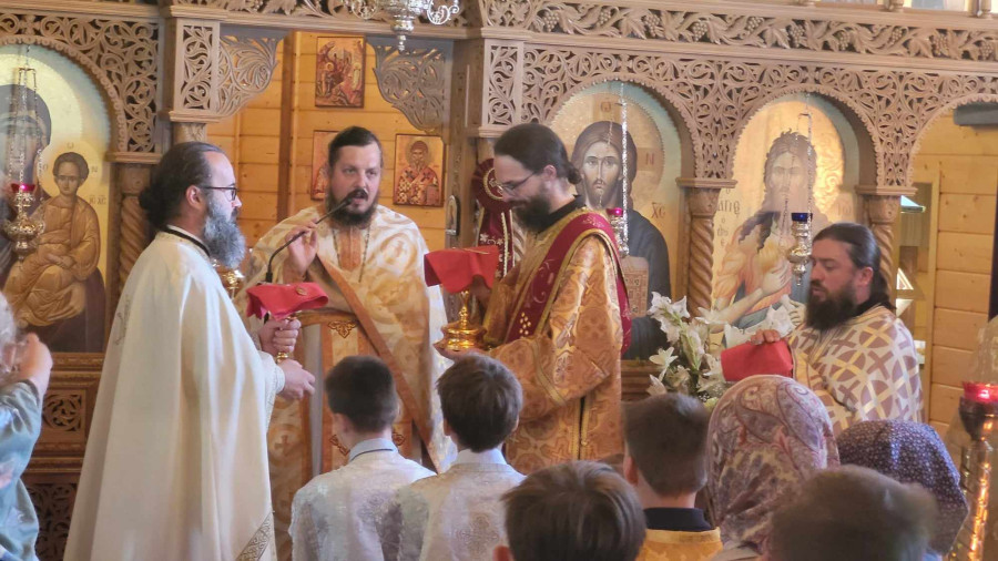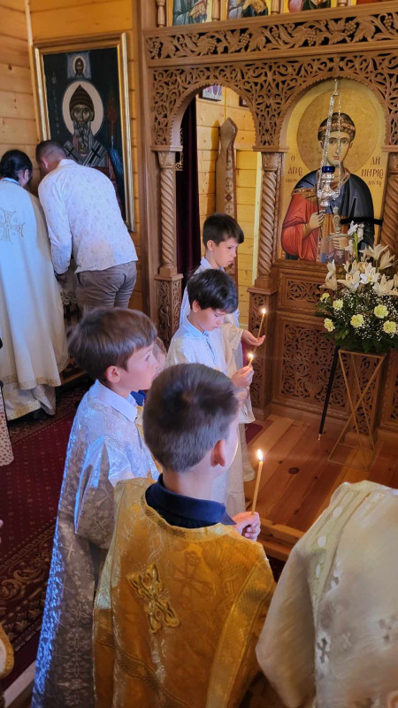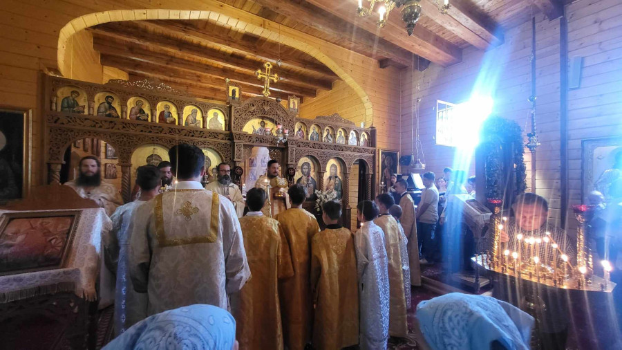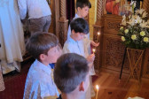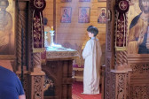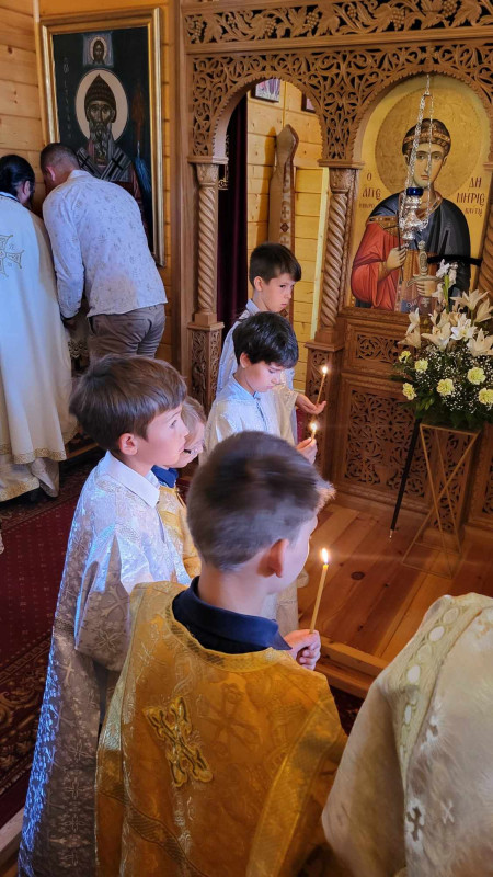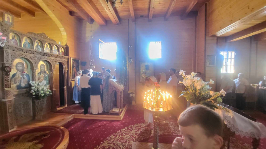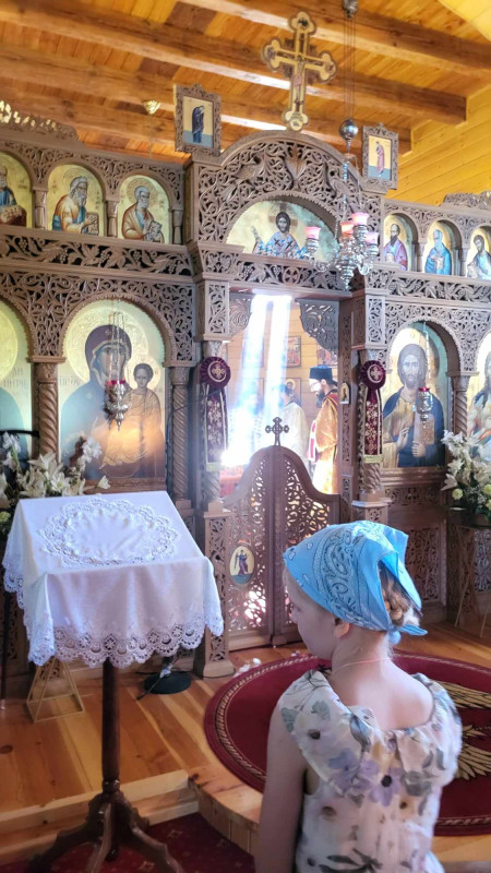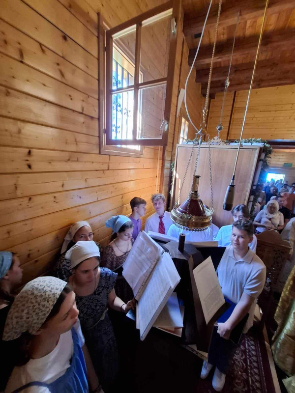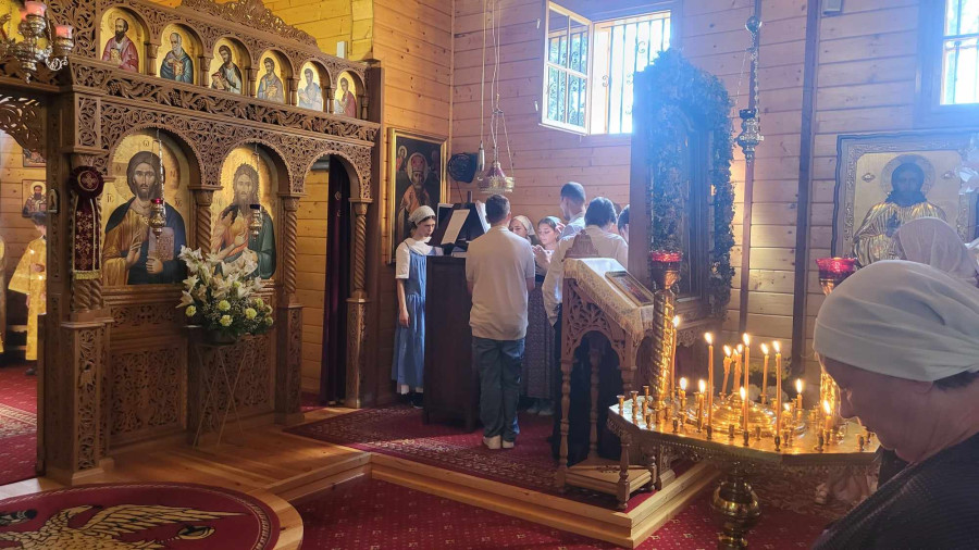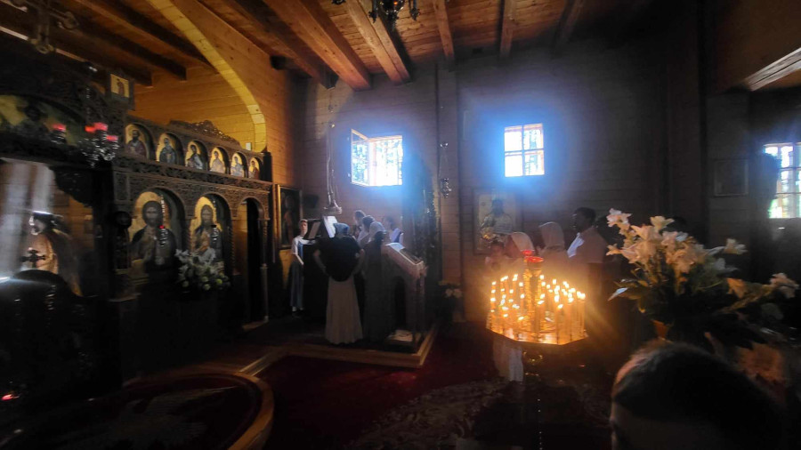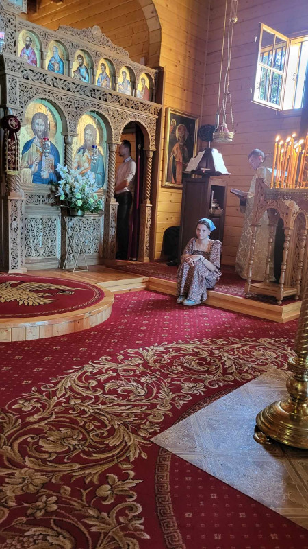 Dzisiejszy dzień był dla nas wyjątkowy. Pojechaliśmy do męskiego monasteru św. Dymitra w Sakach i uczestniczyliśmy w Świętej Liturgii. Wszyscy uczestnicy kolonii przystąpili do Sakramentu Eucharystii. Podczas Św. Liturgii śpiewał pięknie chór młodzieżowy pod kierownictwem p. Adama Tomaszewskiego, nasi wolscy prysłużnicy pomagali w ołtarzu. W budynku monasterskim zjedliśmy śniadanie.