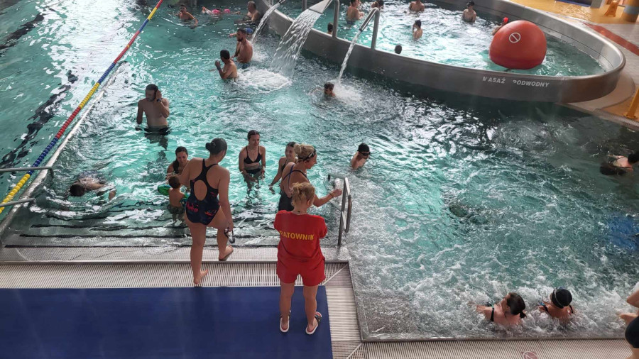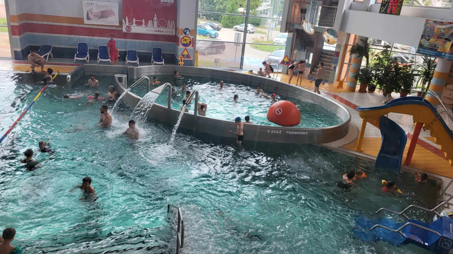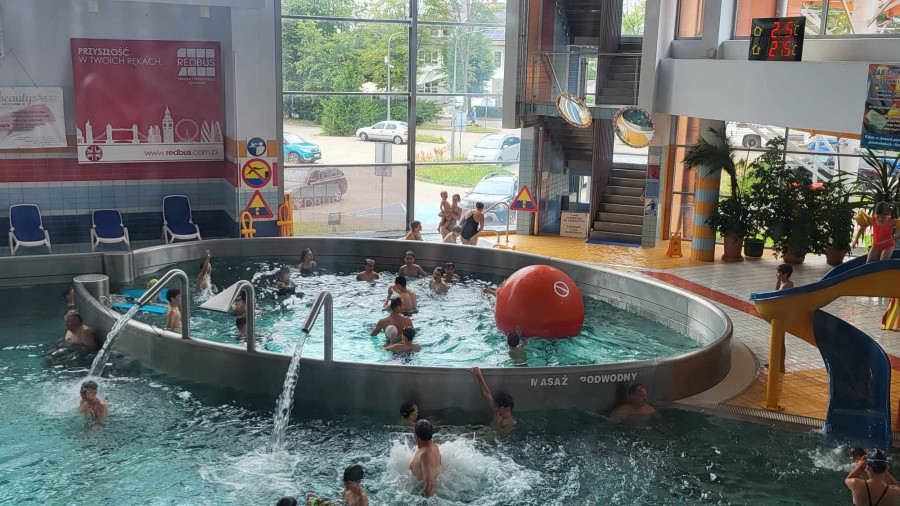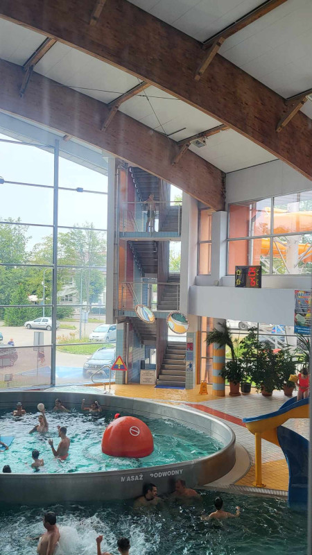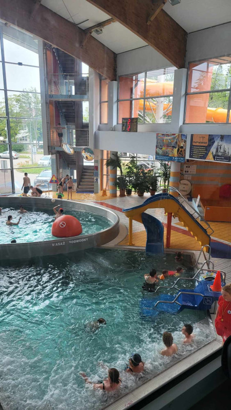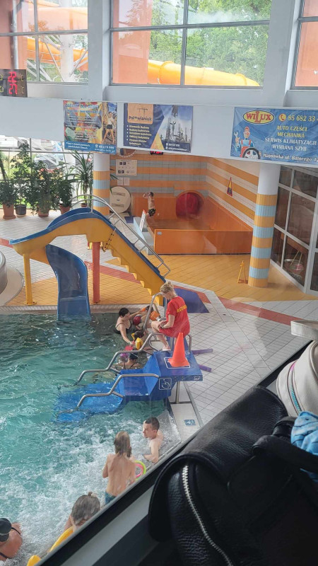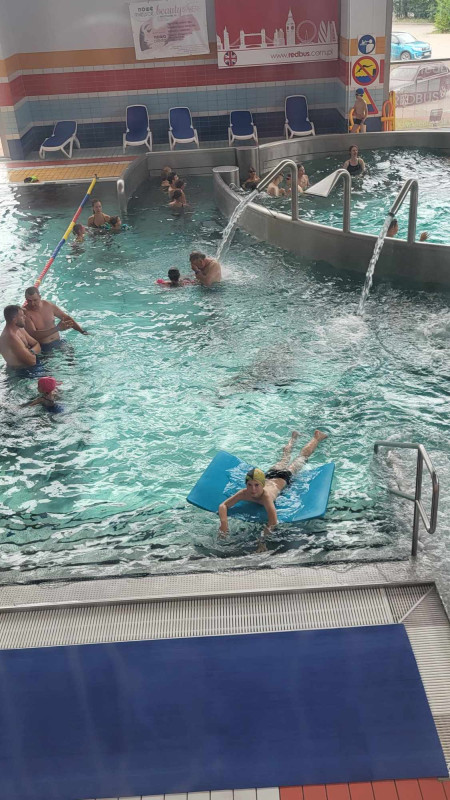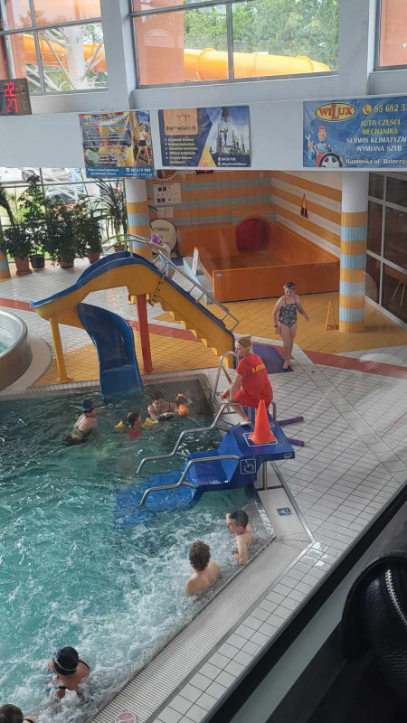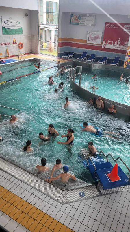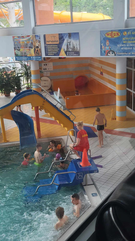 Po śniadaniu pojechaliśmy do Parku Wodnego w Hajnówce. Tu po przeszkoleniu ratownika nt. bezpiecznej kąpieli mogliśmy poszaleć na basenie, korzystając z jej atrakcji - basenu sportowego, zjeżdżalni, fal, jacuzzi....  wygłodniali pojechaliśmy posilić się w Barze Anna, by po krótkim odpoczynku w Internacie znów powrócić do Muzeum Studziwod na nowe warsztaty.