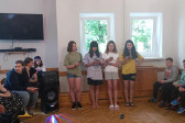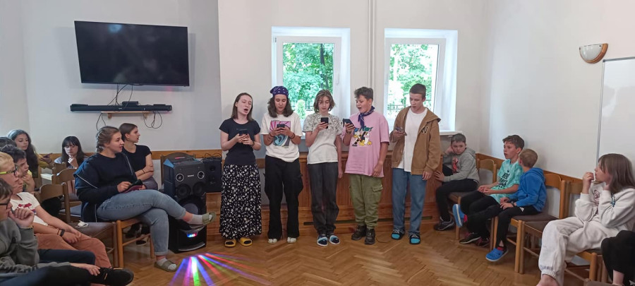 Staramy się odpowiednio dbać o regenerację swoich sił, więc po obiedzie obowiązuje godzina ciszy. Ale już dalej było całkiem głośno, bo dzieci przygotowały występy w ramach konkursu piosenki. Konkurs odznaczył się niezwykłą różnorodnością repertuaru. Była tutaj muzyka filmowa, rap, liryka, folk (swojska nuta!), piosenki polskie i zagraniczne. Śmiało można nazwać to wydarzenie Festiwalem Piosenki w Cieplicach. Obrady jury przeciągnęły sie daleko za północ, więc werdykt zostanie ogłoszony dopiero jutro. Po modlitwach weczornych idziemy odpoczywać pełni nadziei, że jurzejszy dzień również przyniesie wielewrażeń i radości.