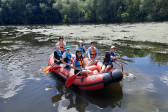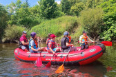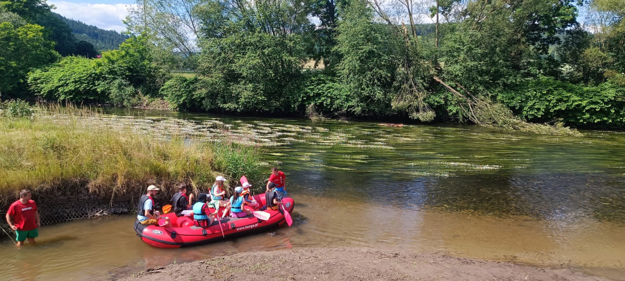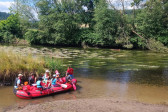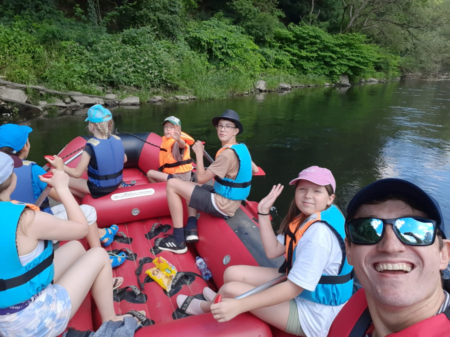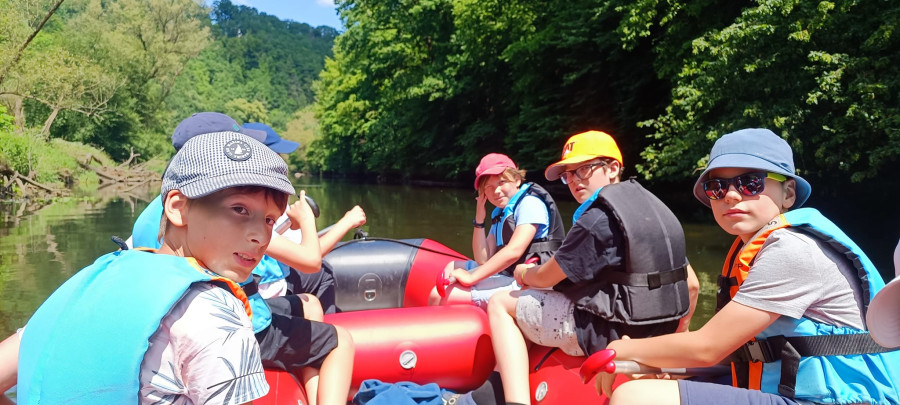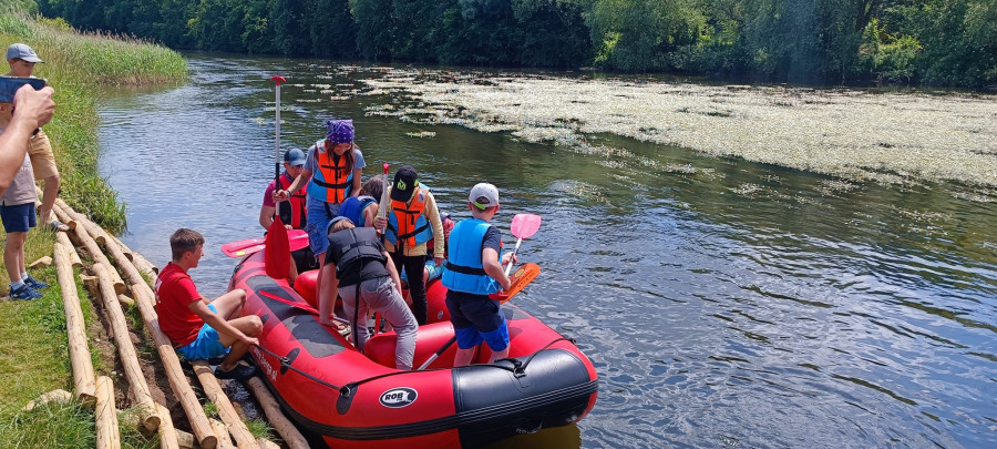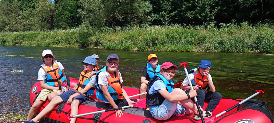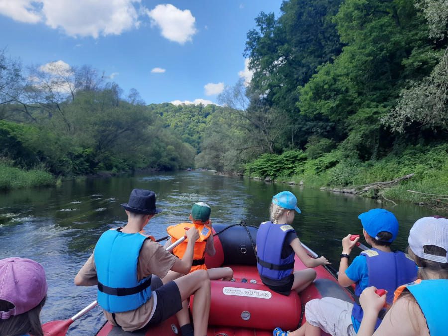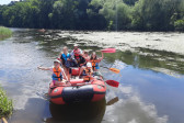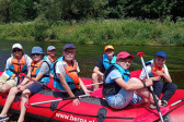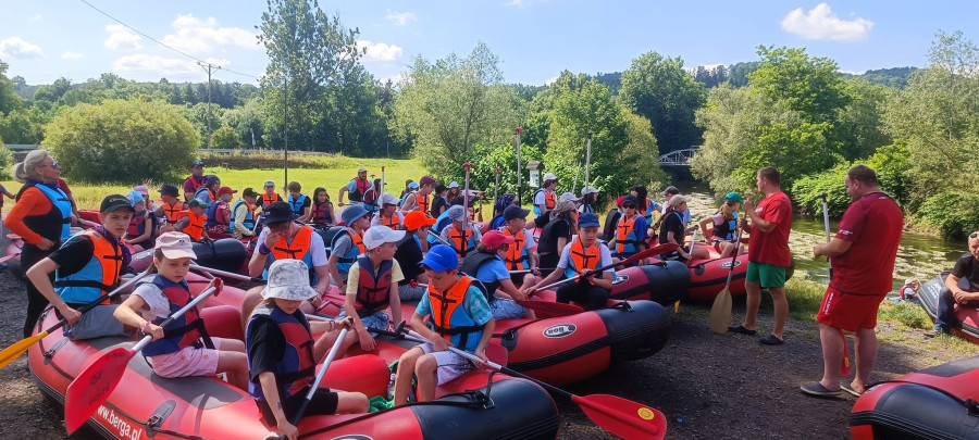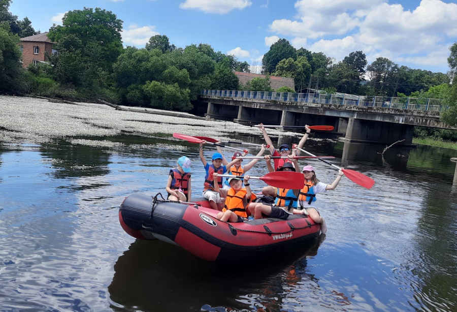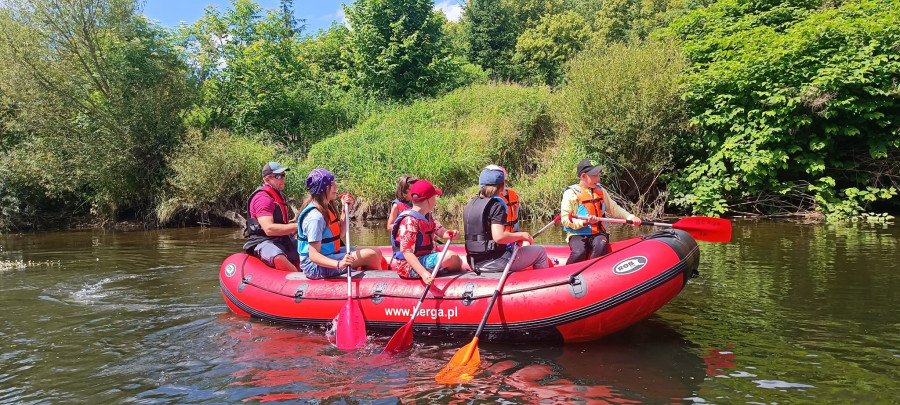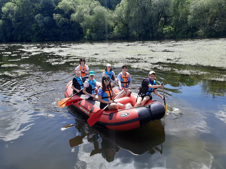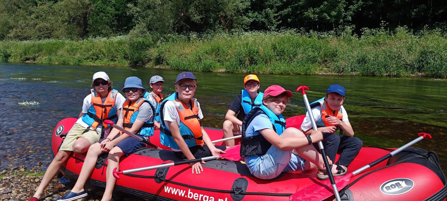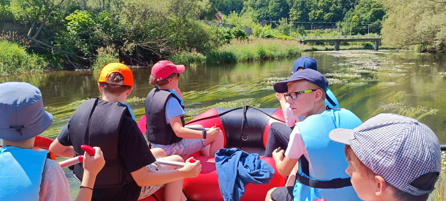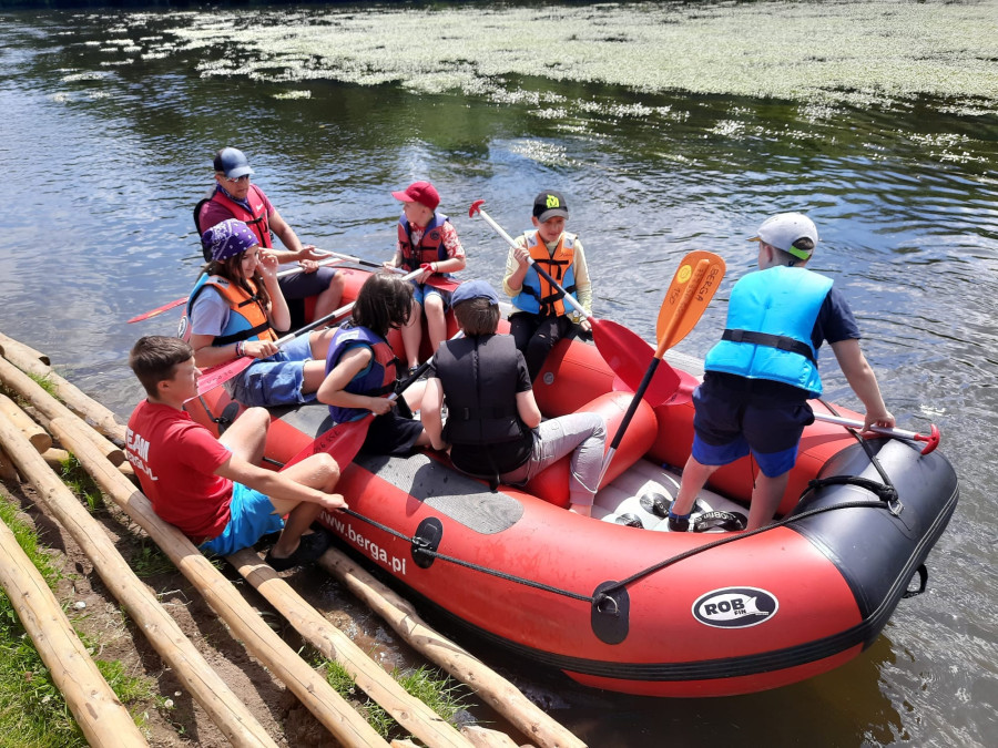 Od samego rana cała okolica skąpana jest w słońcu. Wymarzony dzień na wyprawę. W odległości kilkudziesięciu minut od naszego ośrodku żwawo płynie wśród gór wartka rzeka Bóbr. Właśnie ona jest naszym dzisiejszym celem. Postanowiliśmy pokonać dziesięcio kilometrowy odczynek płynąc pontonami. Najpierw trzeba było przejść szkolenie dotyczące bezpieczeństwa na wodzie, następnie nasze pękate statki wyruszyły gęsiego wśród obfitej zieleni przybrzeżnych zarośli. Przyszło nam walczyć z nurtem, omijać podwodne kamienia i zatopione konary. Trasa została pokonana, a my, zmęczeni lecz szczęśliwi, powróciliśmy do domu.