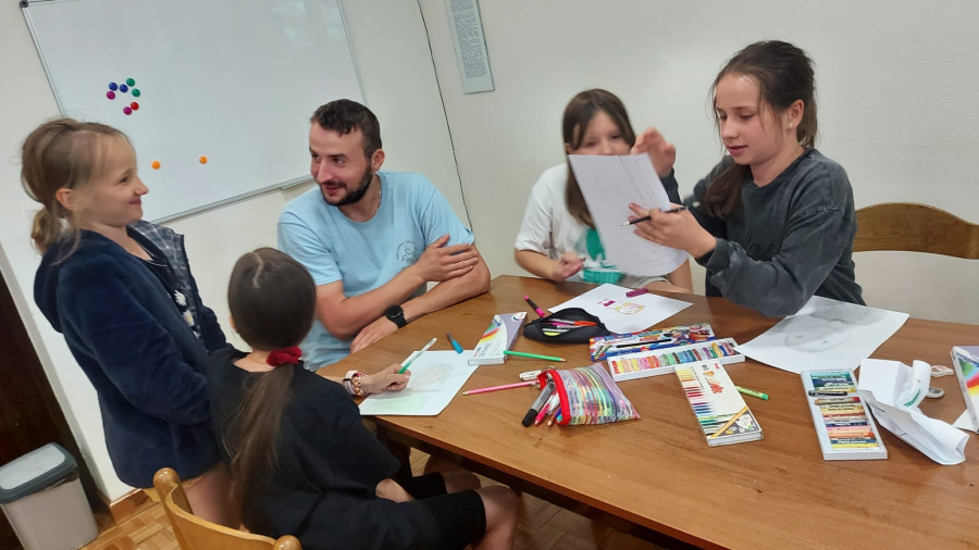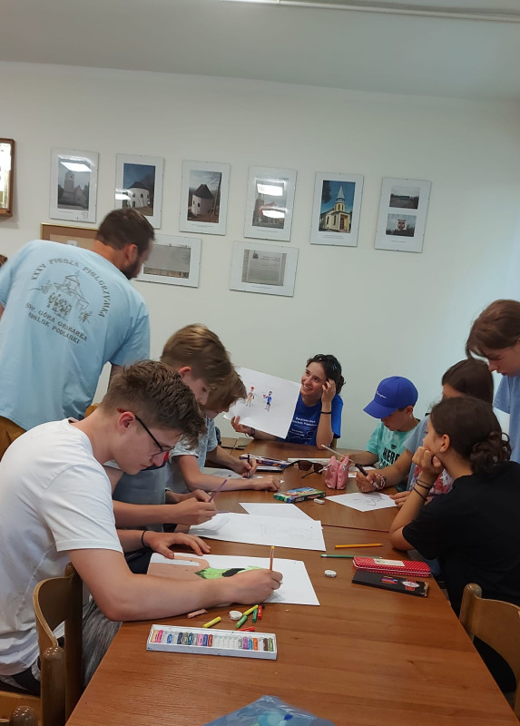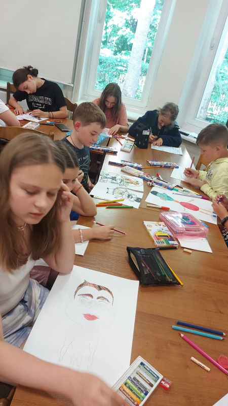 Gdy słońce zaczęło chylić się ku zachodowi, nastał czas na kolejny konkurs. Tym razem - karykatury kadry. Ostre młode oko zawsze potrafi uchwycić jakiś szegół, który będzie trafnie określał charakter tej osoby, która stała się objektem obserwacji. Wspólne ognisko i rozdanie nagród w konkursie piosenki wywołały wiele radości. Każdy bez wyjątku kolonista również dostał nagrodę za karykaturę.