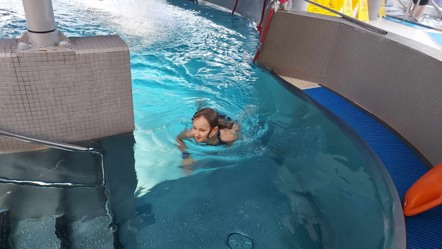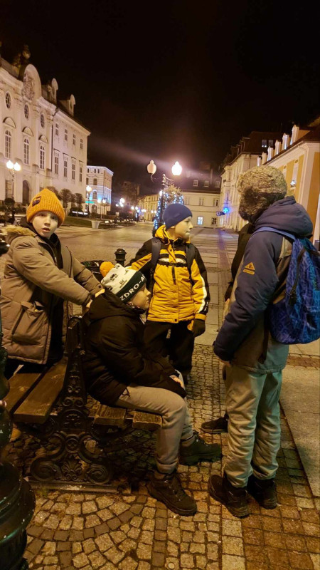 Dzisiejszy poranek przywitał nas silnym ciepłym karkonoskim wiatrem - po śniegu nie zostało ani śladu. Nie przeszkodziło to nam w naszych planowanych atrakcjach. Zaraz po śniadaniu udaliśmy się busem na cieplickie baseny, gdzie szaleliśmy na zjeżdżalniach i w rwących prądach rzecznych. Można było pogrzać się w ciepłych bąbelkach dżakuzi i pobujać w beczce z falami. Po wodnych szaleństwach na obiad prosiliśmy o dokładki. Apetyt dopisywał. Po obiedniej przerwie czekały na nas konkursy i wieczorny spacer po Rynku w Cieplicach. Wieczorne modlitwy zakończyły dzień pełen emocji.