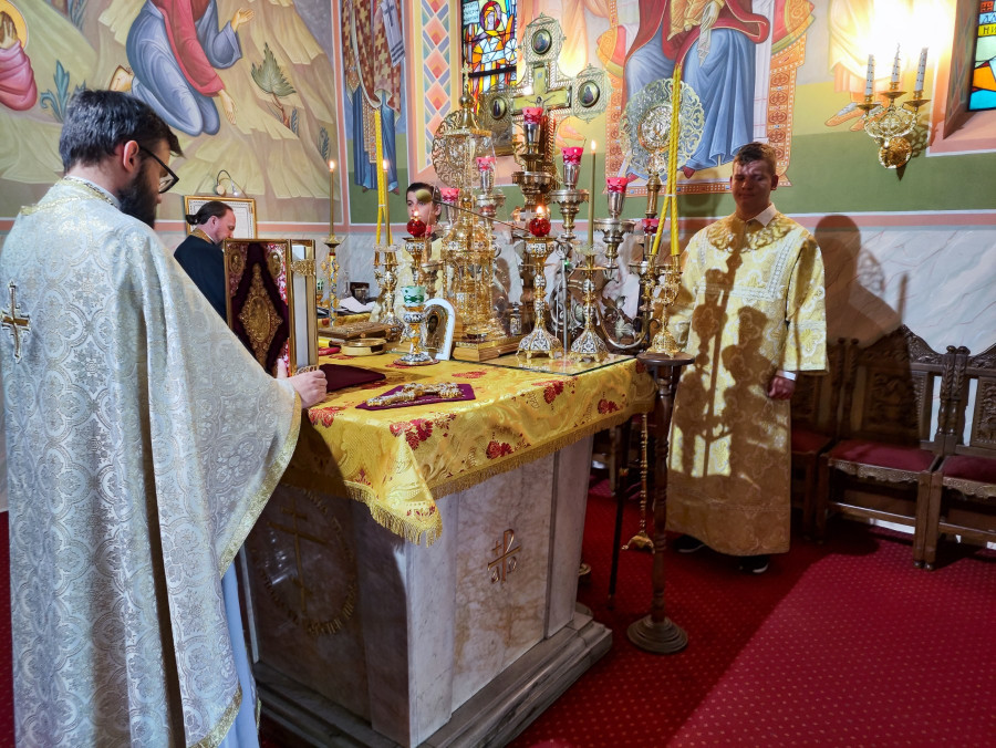 W naszej parafii w niedzielny poranek (09.07.2023 r.) odbyły się dwie Boskie Liturgie: o godz. 7.00, którą służył ks. Remigiusz Sosnowy, oraz o godz. 9.00, której przewodniczył ks. Paweł Korobeinikov w asyście ks. Dawida Romanowicza i d. Dawida Martyniuka. Po głównej Liturgii o. Paweł serdecznie pozdrowił wszystkich wiernych oraz życzył spokojnej i błogosławionej niedzieli.