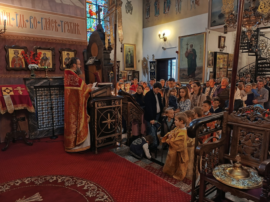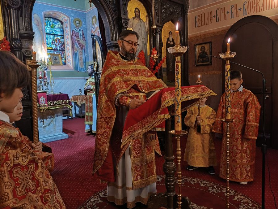 W naszej parafii w niedzielny poranek pierwszy raz po letniej przerwie odsłużone zostały trzy Boskie Liturgie: o godz. 7.00, 8.30 oraz 10.00. Po głównym nabożeństwie, gdy duchowni pokłonili się Krzyżowi wystawionemu na środku świątyni, proboszcz parafii, ks. Adam Misijuk, w imieniu duchowieństwa, Rady Parafialnej i wszystkich zebranych złożył życzenia urodzinowe zasłużonemu parafianinowi i działaczowi cerkiewnemu, p. Konstantemu Sterlingowi.
