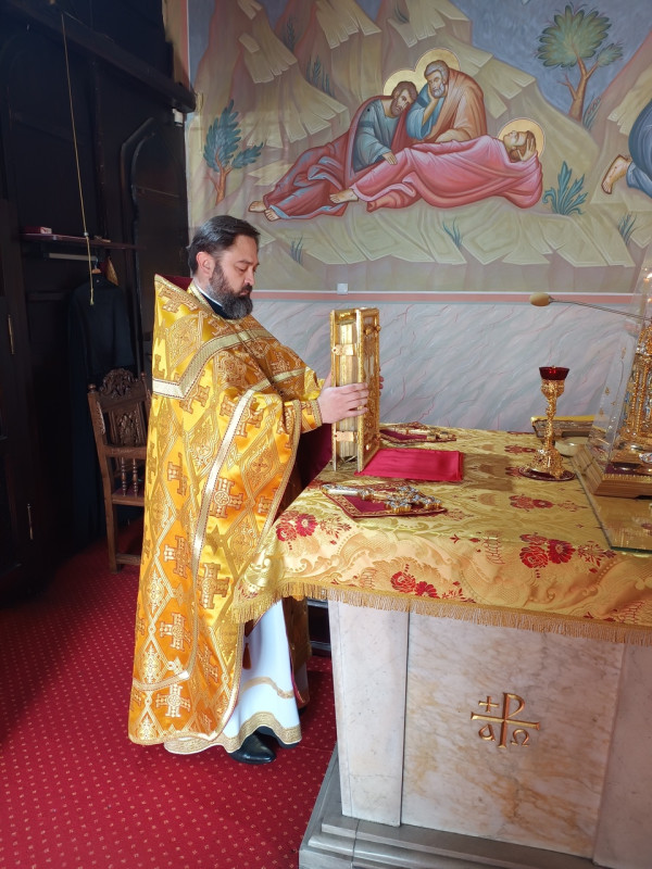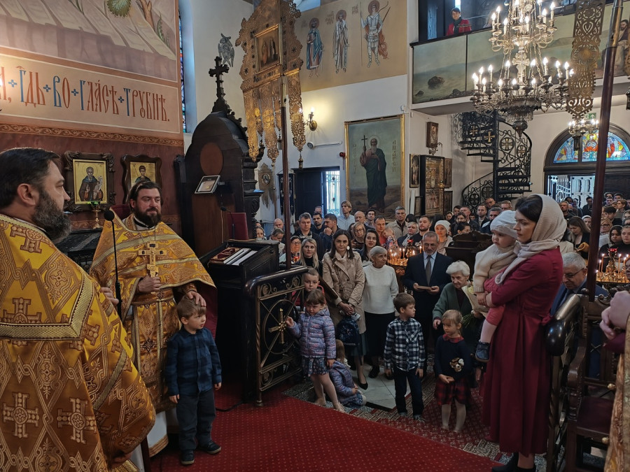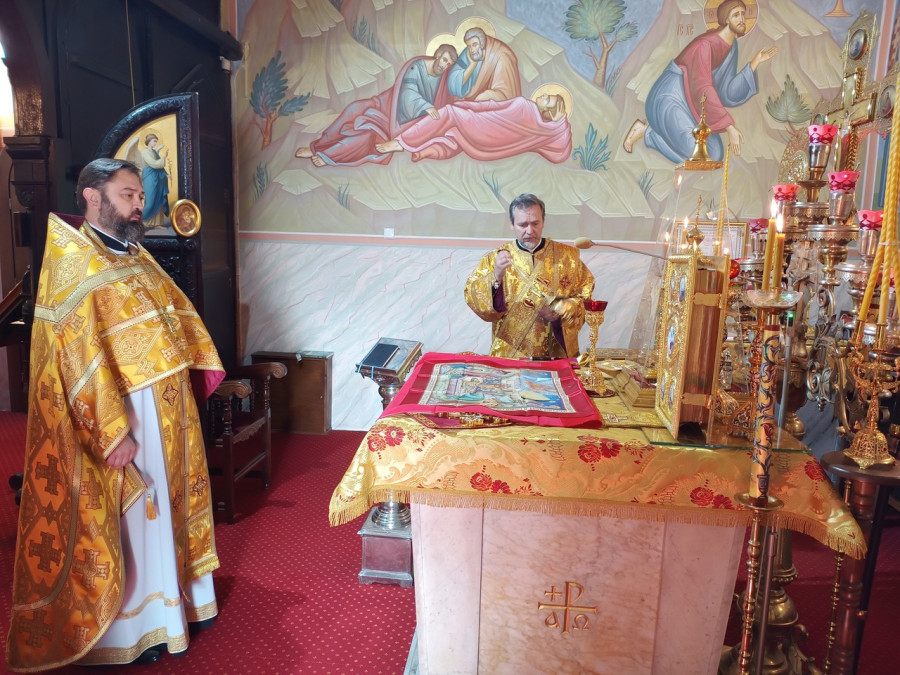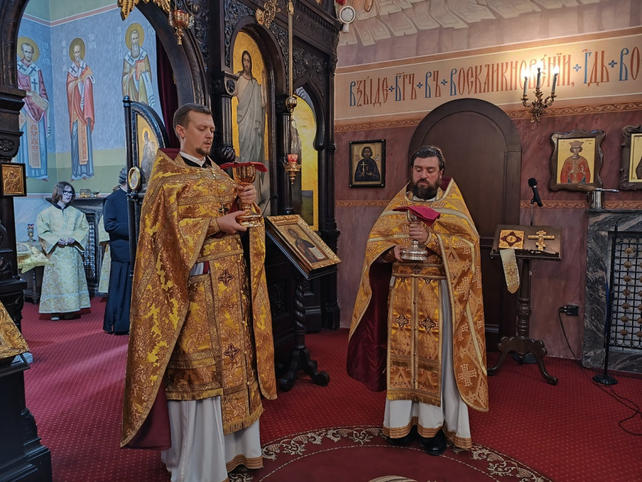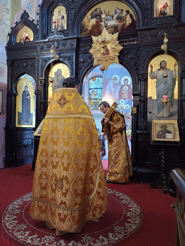 W naszej parafii odsłużone zostały trzy Boskie Liturgie: o godz. 7.00, 8.30 oraz 10.00. Po zakończeniu drugiej Liturgii ks. Piotr Kosiński wraz z pozostałymi duchownymi, Radą Parafialną oraz wszystkimi zebranymi złożył serdeczne życzenia urodzinowe matuszce Wiktorii Martyniuk, małżonce naszego wikariusza, ks. Dawida Martyniuka. Po Liturgii o godz. 10.00 kapłani wyszli na środek świątyni, aby zaśpiewać wieliczanije i pokłonić się ikonie św. Sergiusza.