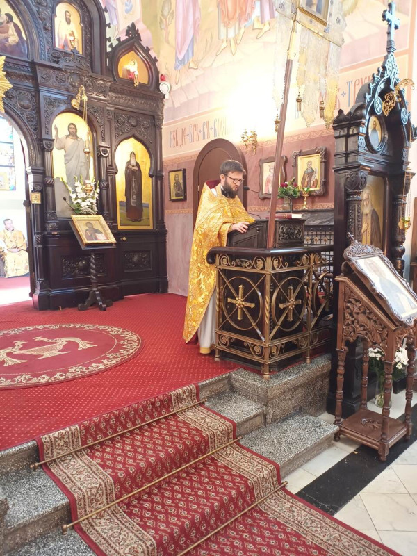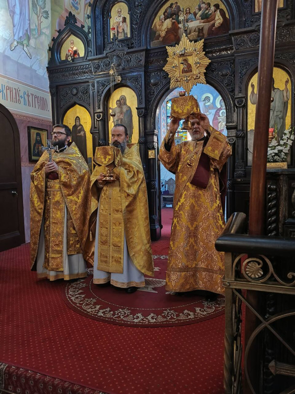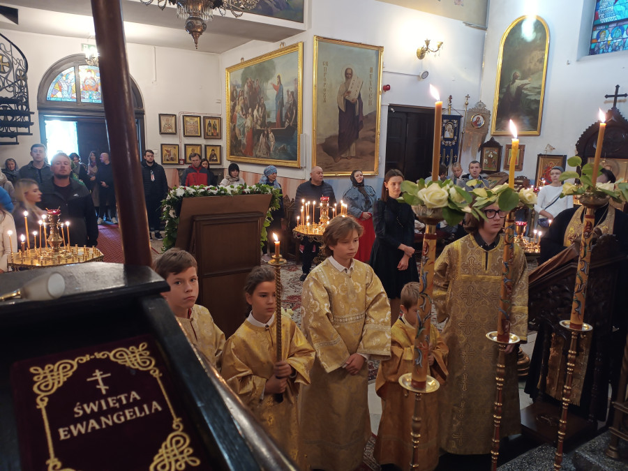 W niedzielny poranek (15.10.2023 r.) w naszej parafii odbyły się 3 Boskie Liturgie: o godz. 7.00, 8.30 oraz 10.00. Po głównej Liturgii duchowni wyszli pokłonić się relikwiom św. Bazylego Martysza, zaś proboszcz parafii, ks. Adam Misijuk, pozdrowił wszystkich zebranych i życzył błogosławionej niedzieli.
