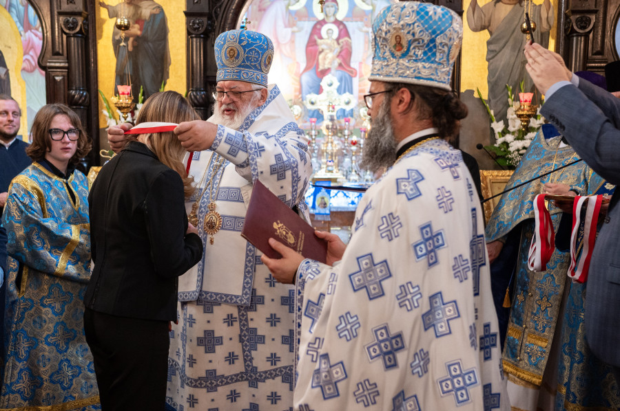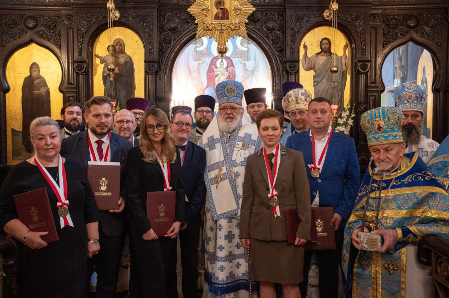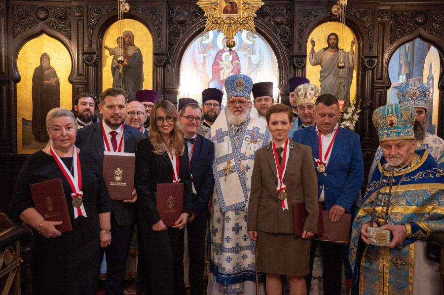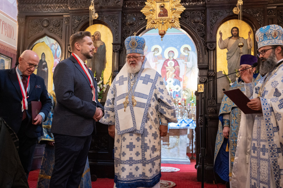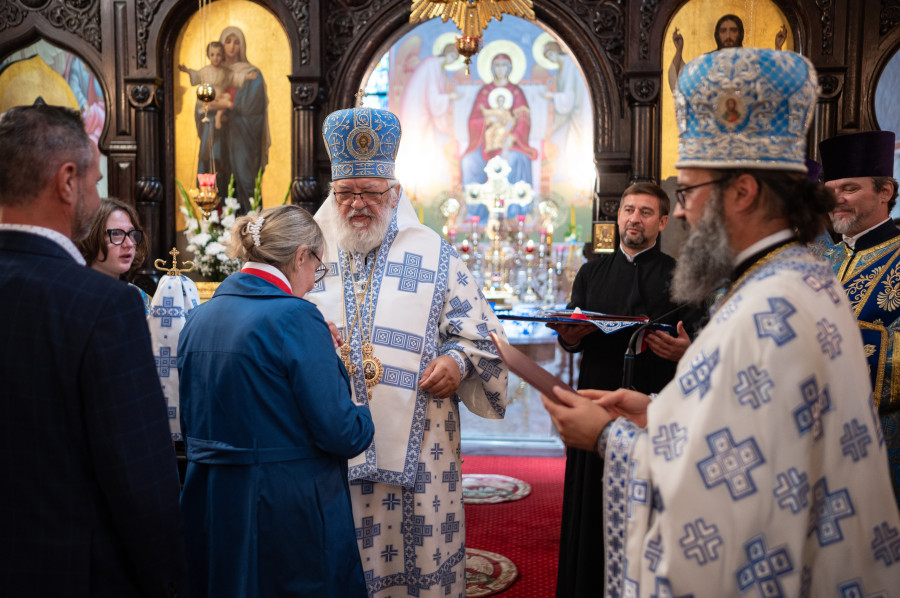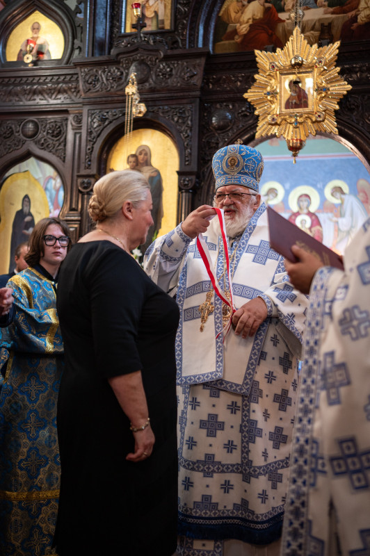 Na koniec nabożeństwa, ks. proboszcz Adam Misijuk, podziękował Władyce za przybycie i przewodnictwo w eucharystycznej synaksie, a także wszystkim gościom i parafianom za obecność. Następnie bp. Warsonofiusz w imieniu Soboru PAKP wręczył nagrody w postaci medali dla osób szczególnie zasłużonych w remoncie wolskiej cerkwi: p. Pawłowi Cukrowskiemu, Dyrektorowi Departamentu Kultury, Promocji i Turystyki, p. Ryszardowi Miklińskiemu ("Archaios" doradztwo konserwatorskie), p. Janowi Miniukowi ("MAKSBUD"), p. Mikołajowi Chakurowi, p. Irenie Sacharczuk, Prezesowi Zarządu Stowarzyszenia Wierni Tradycji Pokoleń, p. Janowi Sorokoszowi, p. dr inż Arturowi Dawidziukowi (Nadleśnictwo Celestynów), p. prof. Jakubowi Lewickiemu, Mazowieckiemu Wojewódzkiemu Konserwatorowi Zabytków, p. dr Michałowi Krasuckiemu, Stołecznemu Konserwatorowi Zabytków, p. Dorocie Malinowskiej-Grupińskiej, Przewodniczącej Rady m. st. Warszawy, p. Renacie Kaznowskiej, Zastępcy Prezydenta m.st. Warszawy, p. Wiesławowi Raboszukowi, Wicemarszałkowi Województwa Mazowieckiego, p. Andrzejowi Widlickiemu, Prezesowi SPAX Polska oraz p. Krzysztofowi Strzałkowskiemu, Burmistrzowi Dzielnicy Wola. W ramach wdzięczności gościom zostały wręczone pamiątkowe posągi drabin, parafianom tak ofiarnie wspierającym remont cerkwi książki z dedykacją, zaś dzieciom książeczki o świątych oraz słodkie upominki.
