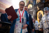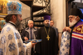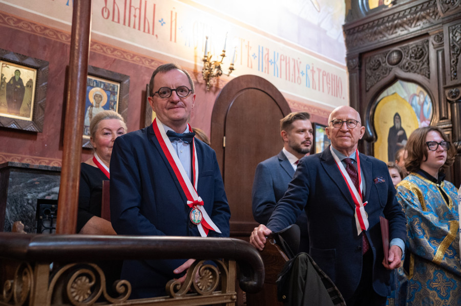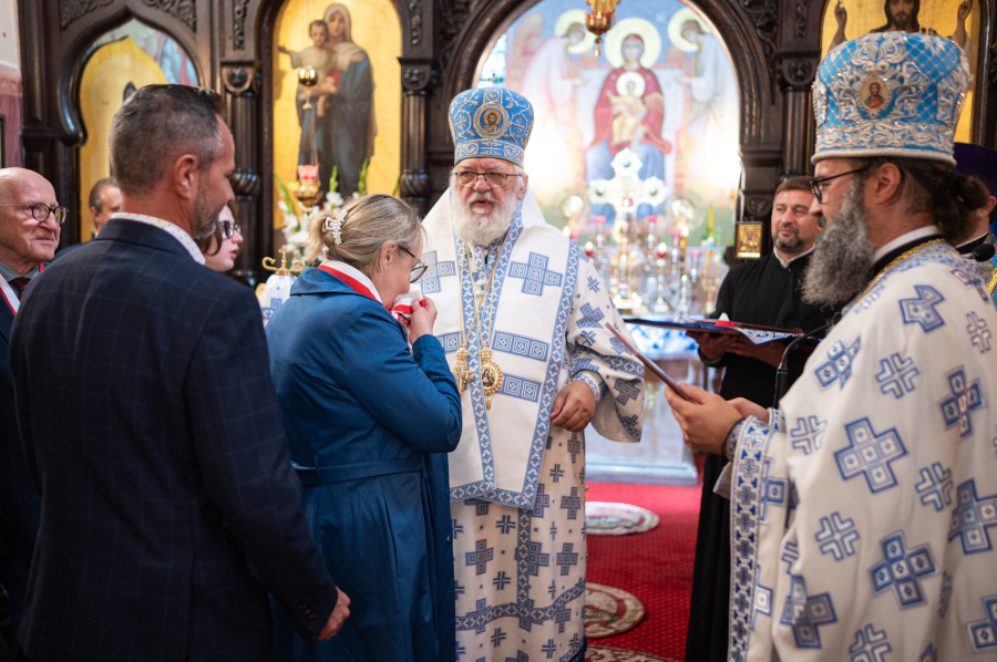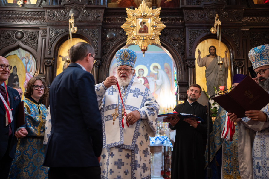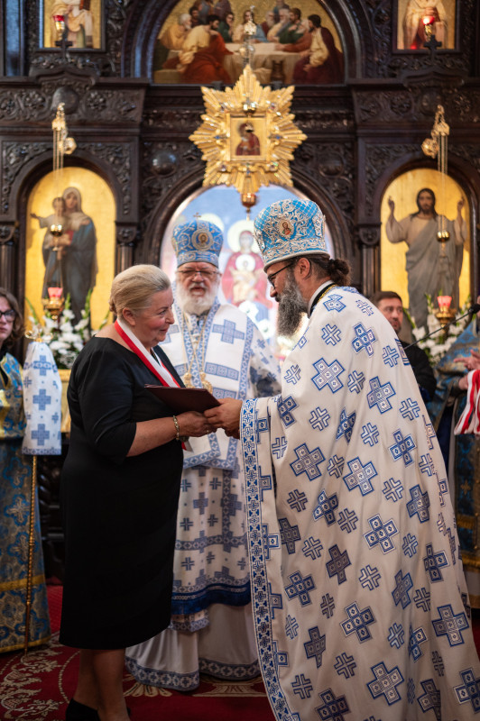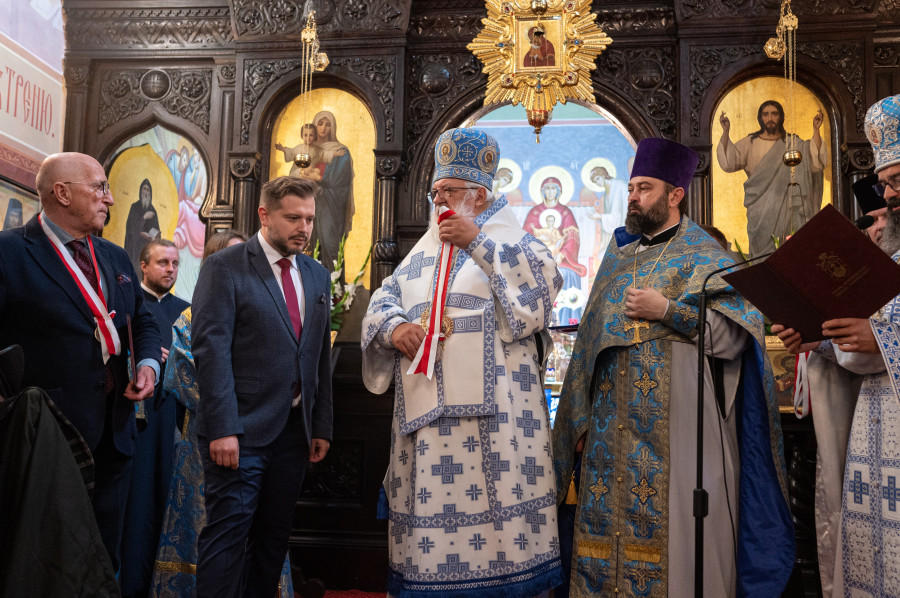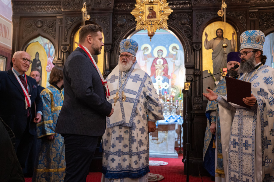 Na koniec nabożeństwa, ks. proboszcz Adam Misijuk, podziękował Władyce za przybycie i przewodnictwo w eucharystycznej synaksie, a także wszystkim gościom i parafianom za obecność. Następnie bp. Warsonofiusz w imieniu Soboru PAKP wręczył nagrody w postaci medali dla osób szczególnie zasłużonych w remoncie wolskiej cerkwi: p. Pawłowi Cukrowskiemu, Dyrektorowi Departamentu Kultury, Promocji i Turystyki, p. Ryszardowi Miklińskiemu ("Archaios" doradztwo konserwatorskie), p. Janowi Miniukowi ("MAKSBUD"), p. Mikołajowi Chakurowi, p. Irenie Sacharczuk, Prezesowi Zarządu Stowarzyszenia Wierni Tradycji Pokoleń, p. Janowi Sorokoszowi, p. dr inż Arturowi Dawidziukowi (Nadleśnictwo Celestynów), p. prof. Jakubowi Lewickiemu, Mazowieckiemu Wojewódzkiemu Konserwatorowi Zabytków, p. dr Michałowi Krasuckiemu, Stołecznemu Konserwatorowi Zabytków, p. Dorocie Malinowskiej-Grupińskiej, Przewodniczącej Rady m. st. Warszawy, p. Renacie Kaznowskiej, Zastępcy Prezydenta m.st. Warszawy, p. Wiesławowi Raboszukowi, Wicemarszałkowi Województwa Mazowieckiego, p. Andrzejowi Widlickiemu, Prezesowi SPAX Polska oraz p. Krzysztofowi Strzałkowskiemu, Burmistrzowi Dzielnicy Wola. W ramach wdzięczności gościom zostały wręczone pamiątkowe posągi drabin, parafianom tak ofiarnie wspierającym remont cerkwi książki z dedykacją, zaś dzieciom książeczki o świątych oraz słodkie upominki.