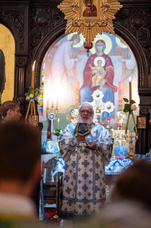 Uroczystości rozpoczęły się Boską Liturgią o godz. 9.00, której przewodniczył J.E. Najprzewielebniejszy Warsonofiusz, Biskup Siemiatycki, w asyście miejsowego kleru oraz zaproszonych duchownych. Homilię wygłosił ks. Remigiusz Sosnowy, który zwrócił uwagę słuchaczy na tajemnicę macierzyństwa, która uczy nas człowieczeństwa i naturalnie kieruje nasz wzrok na Matkę Bożą.