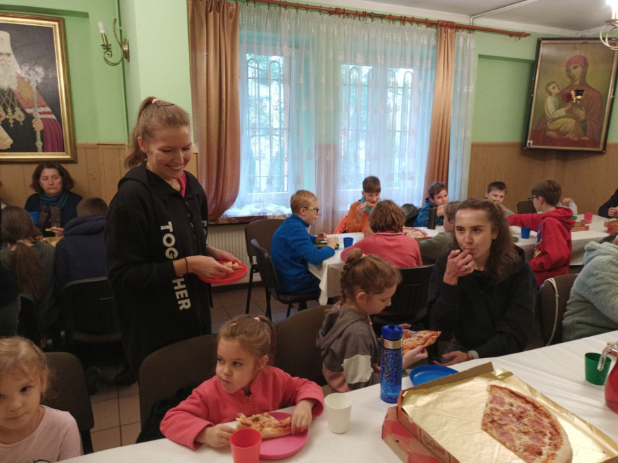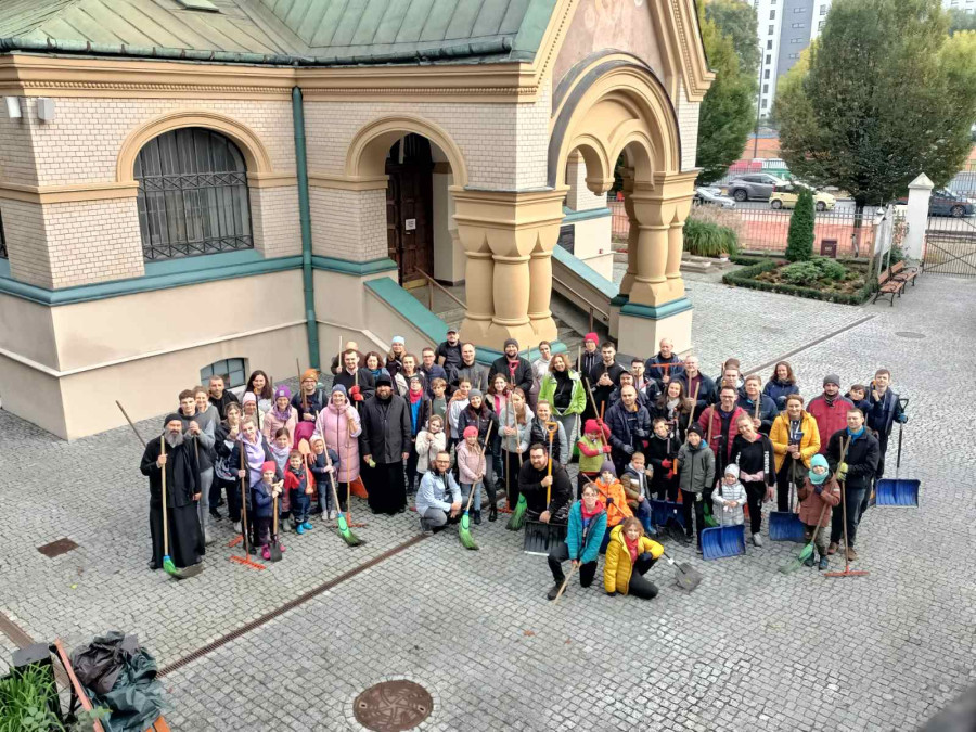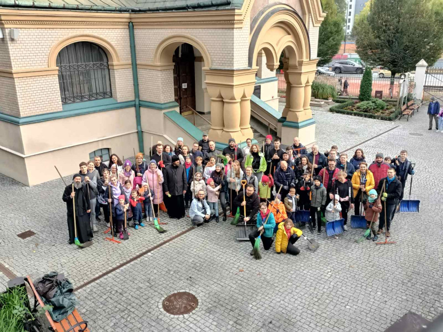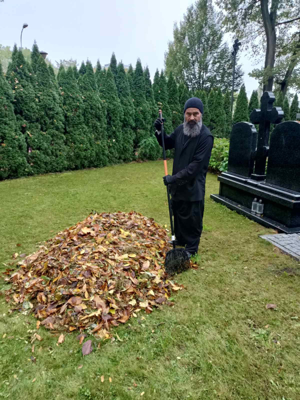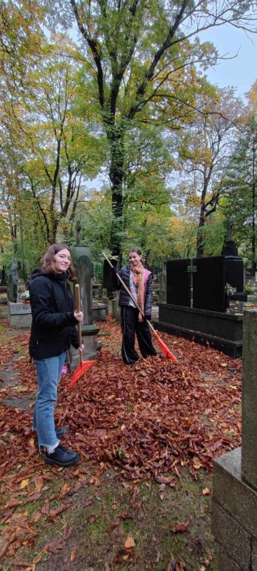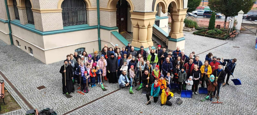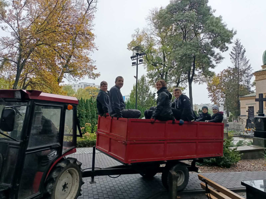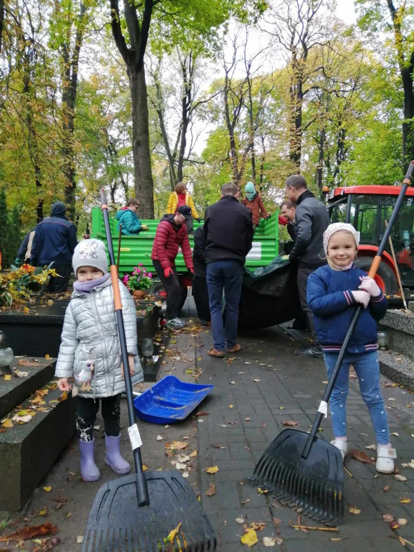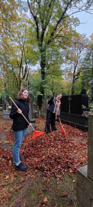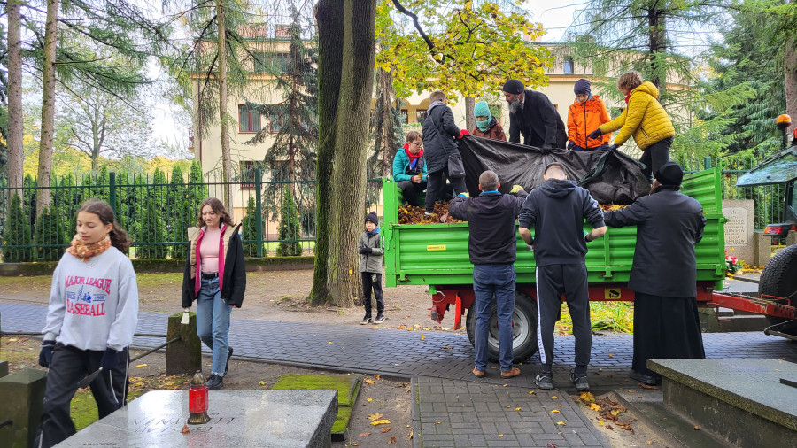 Tak też w sobotę (21.10.2023r.) zaraz po Św. Liturgii i panichidzie na wolskim cmentarzu zebrało się mnóstwo dzieci z naszego punktu, rodziców, katechetów oraz ludzi dobrej woli, którzy z ogromnym zapałem pomagali uprzątnąć cmentarz ze spadających liści.