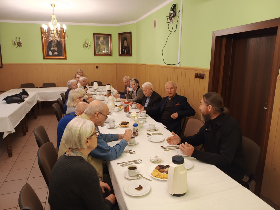 25. października 2023 r. odbyło się kolejne spotkanie seniorów organizowane przy Parafii św. Jana Klimaka na Woli w Warszawie. Dzień rozpoczęliśmy od Boskiej Liturgii o godz. 9.00. Seniorzy aktywnie uczestniczyli w nabożeństwie, śpiewając w Chórze Seniorów pod batutą prof. Włodzimierza Wołosiuka. Następnie ks. Remigiusz Sosnowy poprowadził zebranych po meandrach architektury cerkiewnej na przykładzie wolskiej świątyni. Po wykładzie seniorzy udali się do domu parafialnego, gdzie odbyło się spotkanie z o. Anatolijem, który na codzień pełni posługę duszpasterską w Poczajewie (Ukraina).
